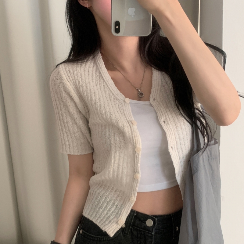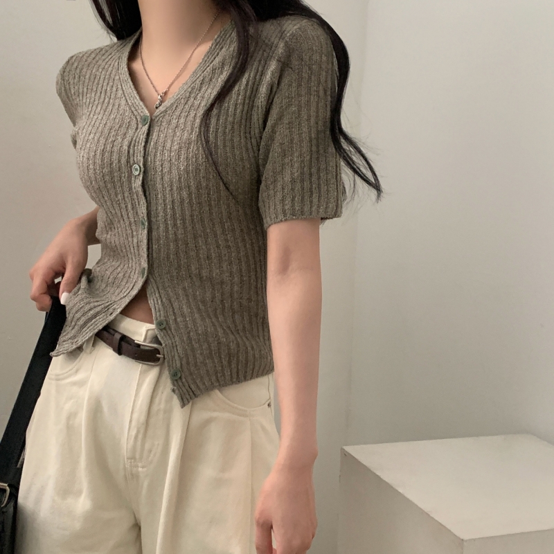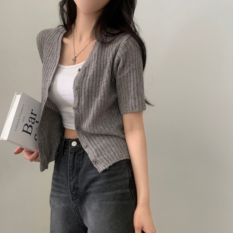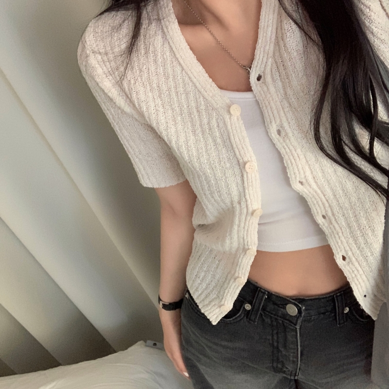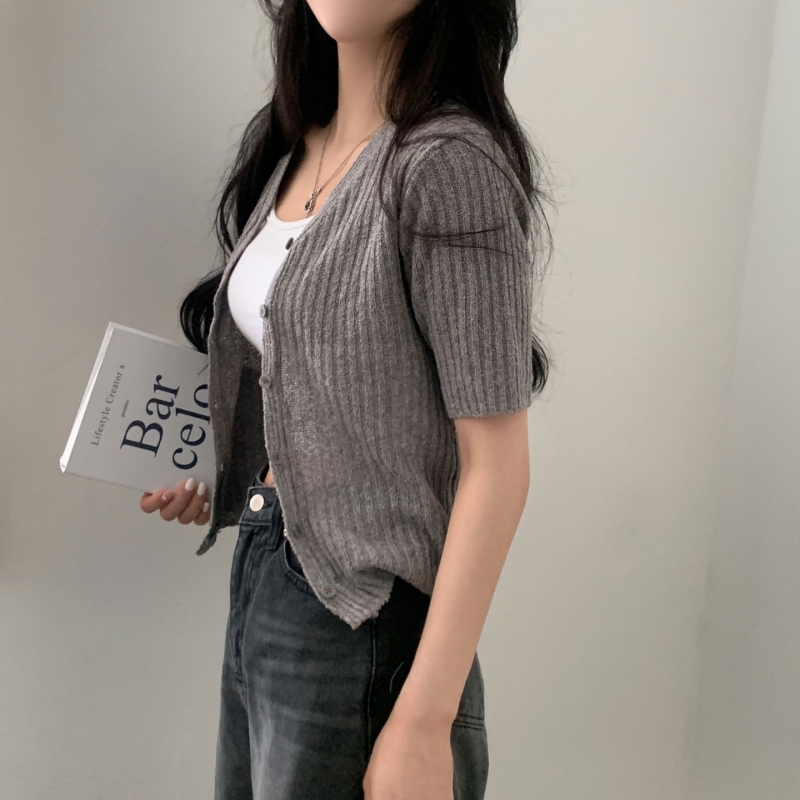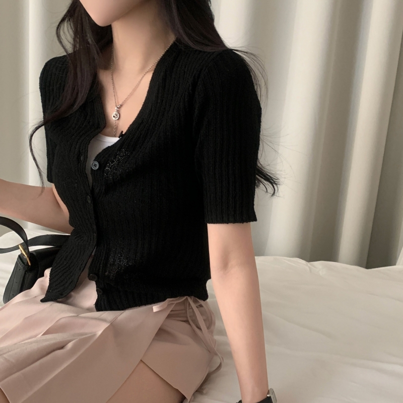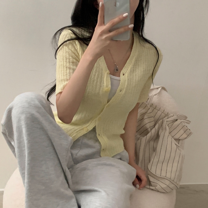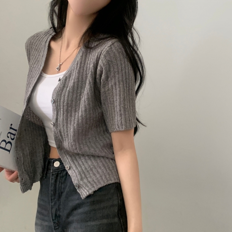 SGD21145 나잇 부클 린넨 세미크롭 반팔 니트가디건 9color