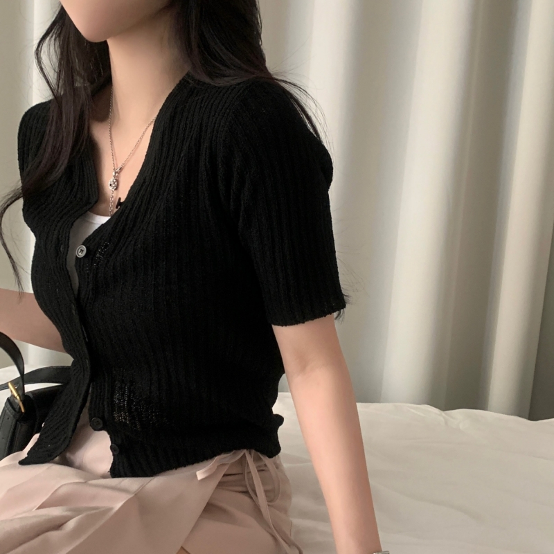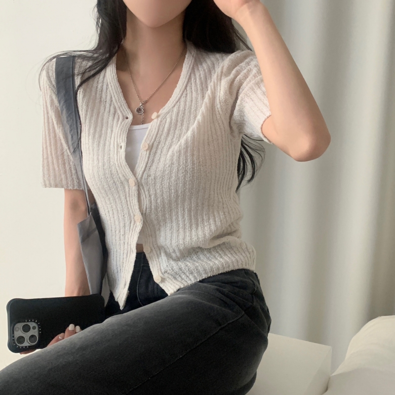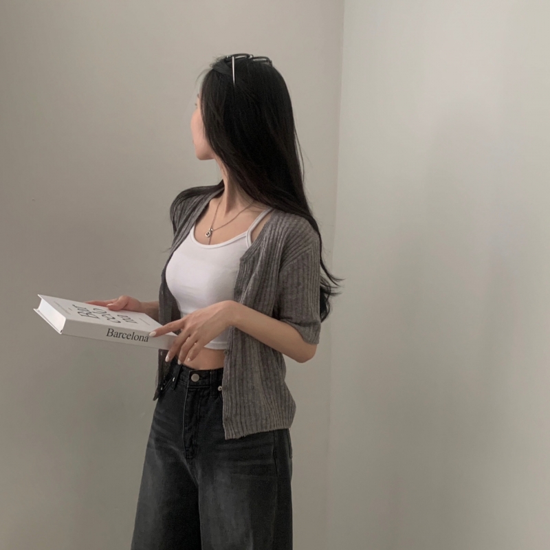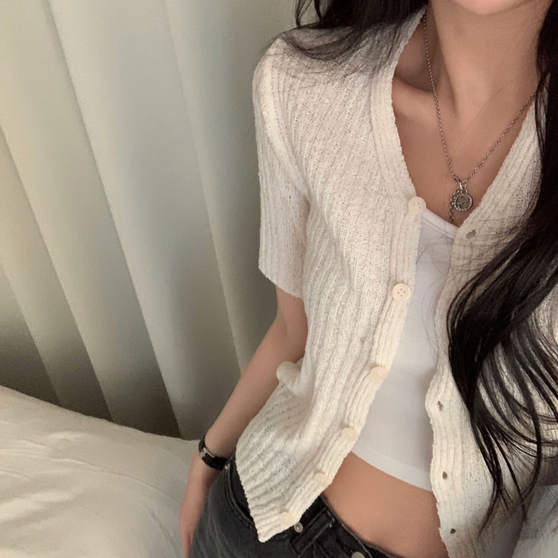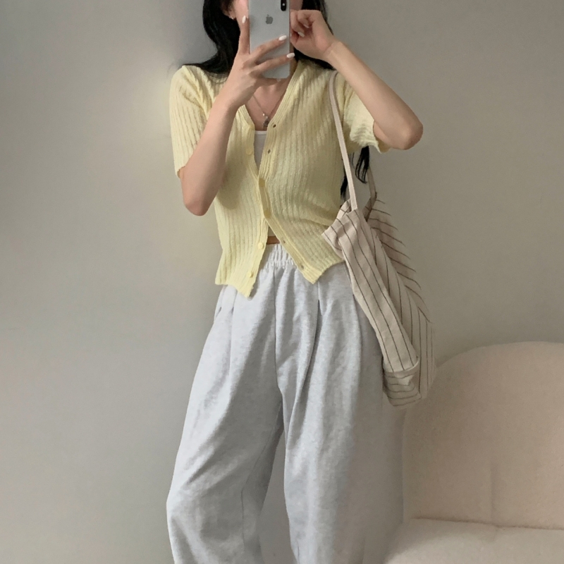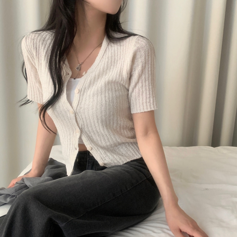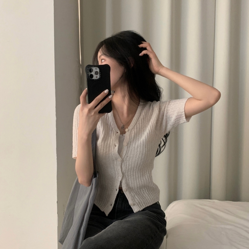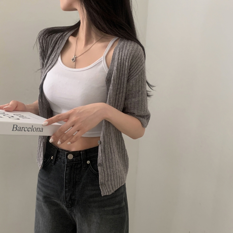 SGD21145 나잇 부클 린넨 세미크롭 반팔 니트가디건 9color