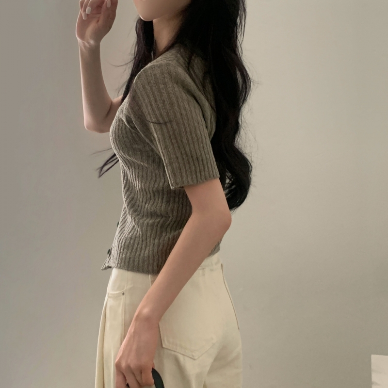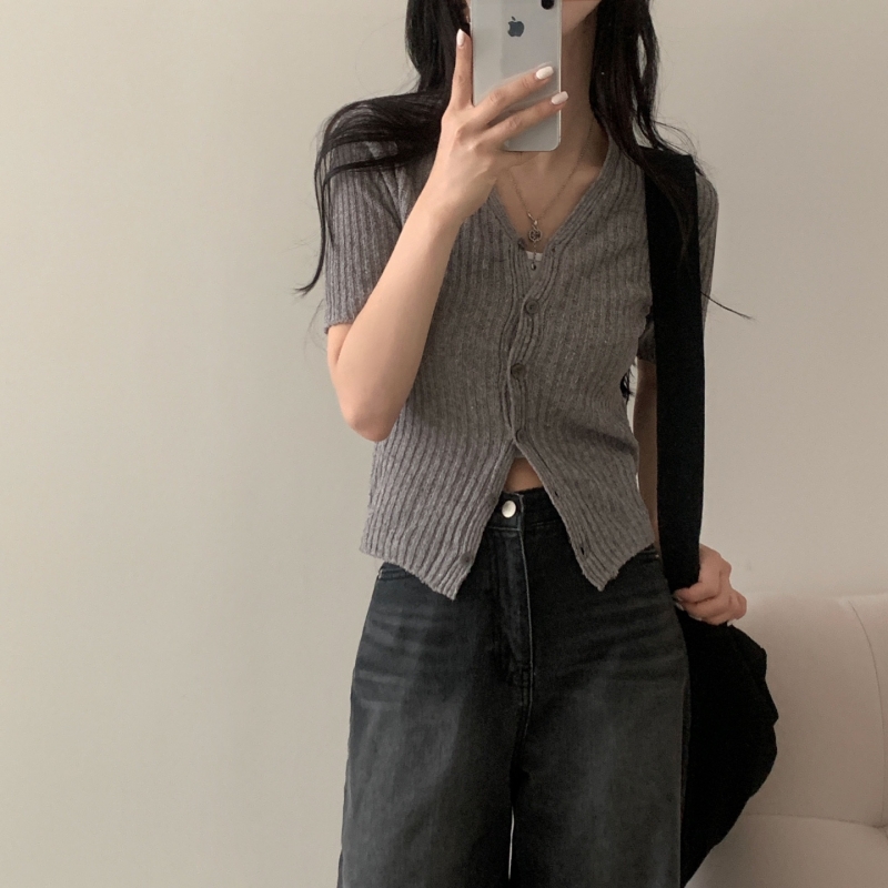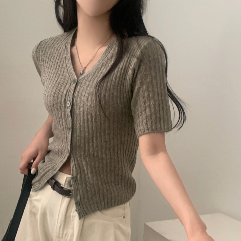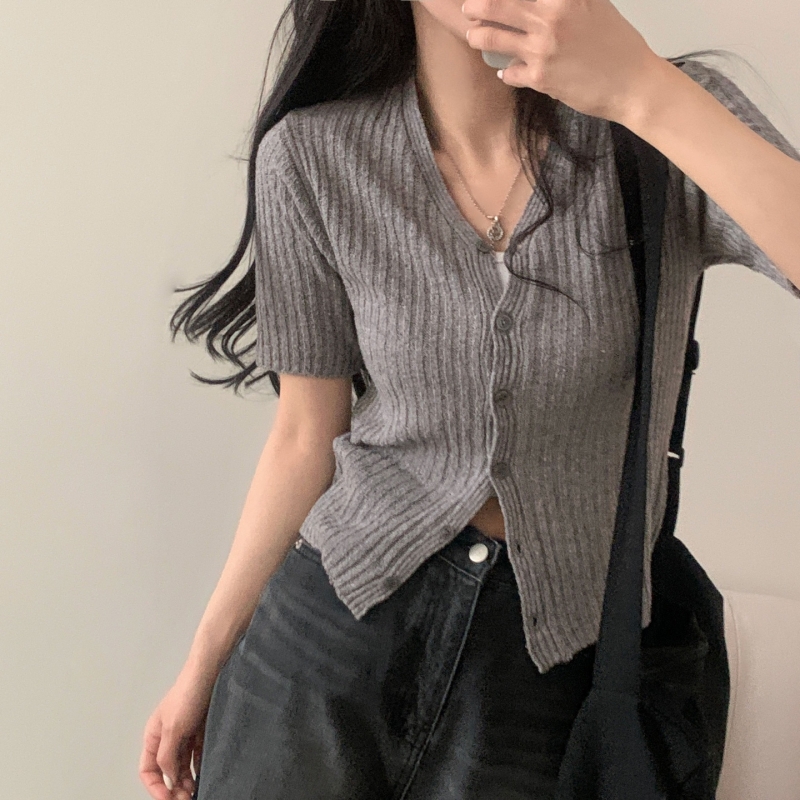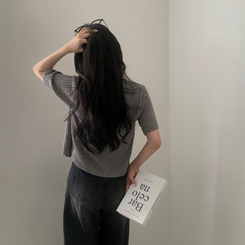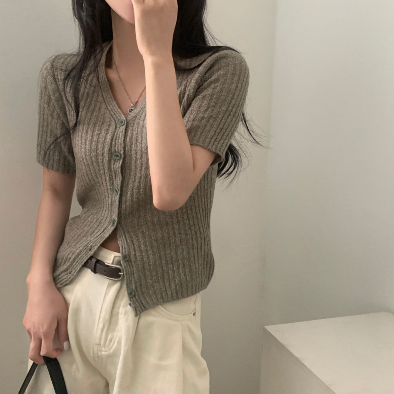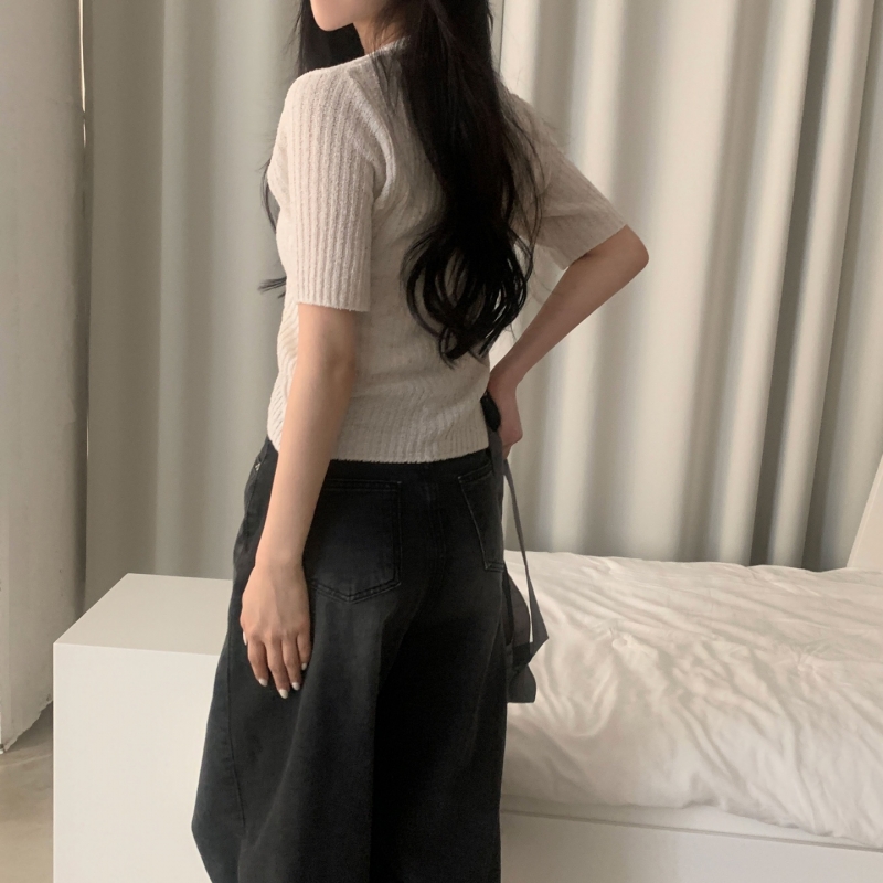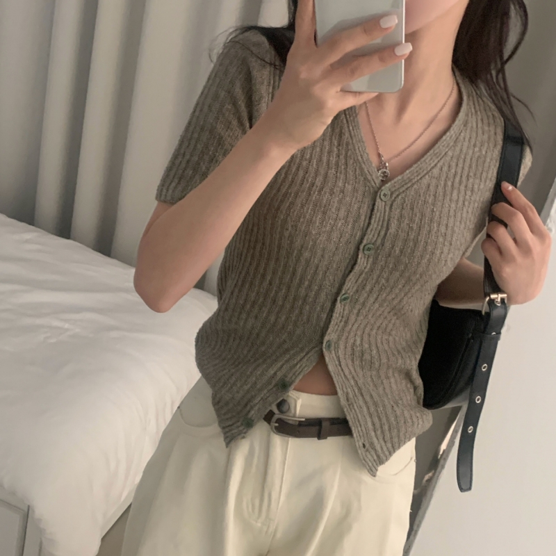 SGD21145 나잇 부클 린넨 세미크롭 반팔 니트가디건 9color