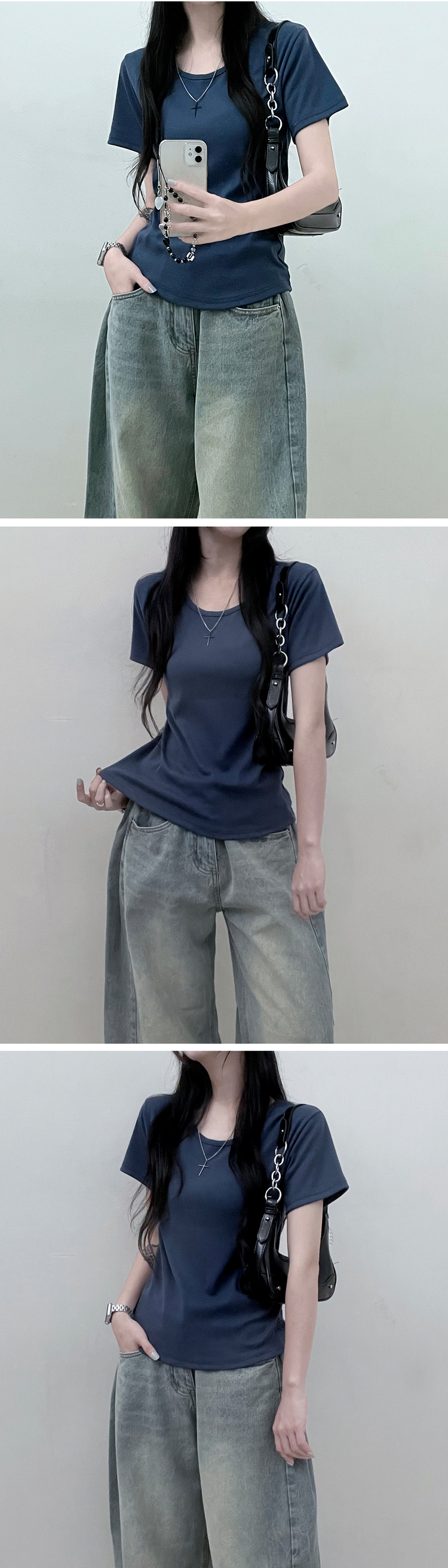 STS51253 11할인체형커버랍빠유넥라운드여유핏반팔티