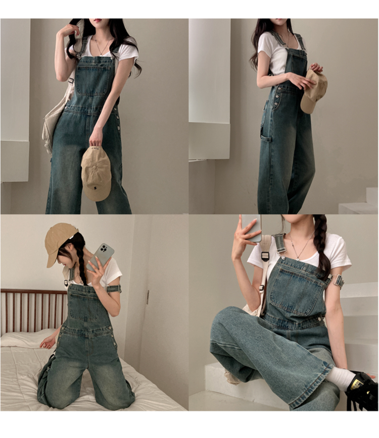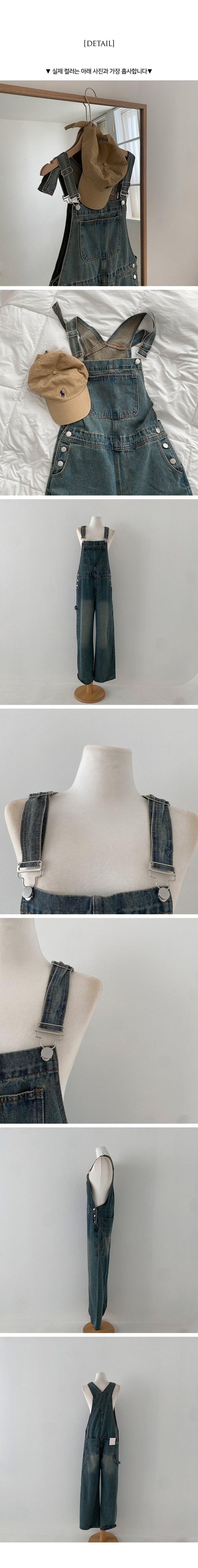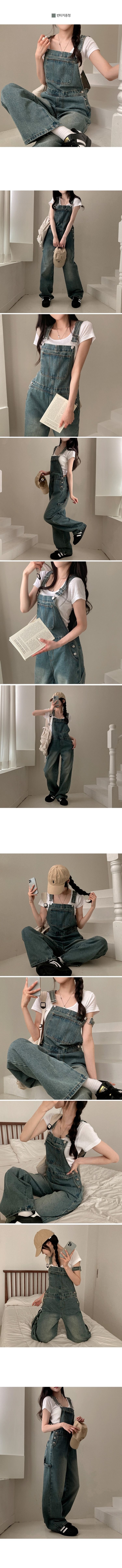 SOP24205 델로 워싱 와이드 오버롤 데님 멜빵 팬츠
