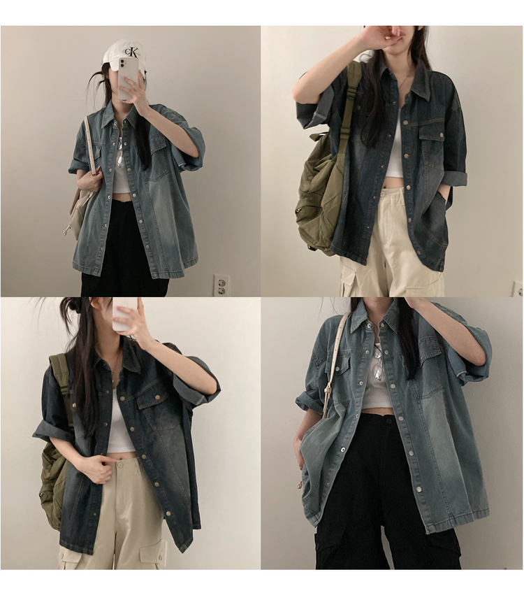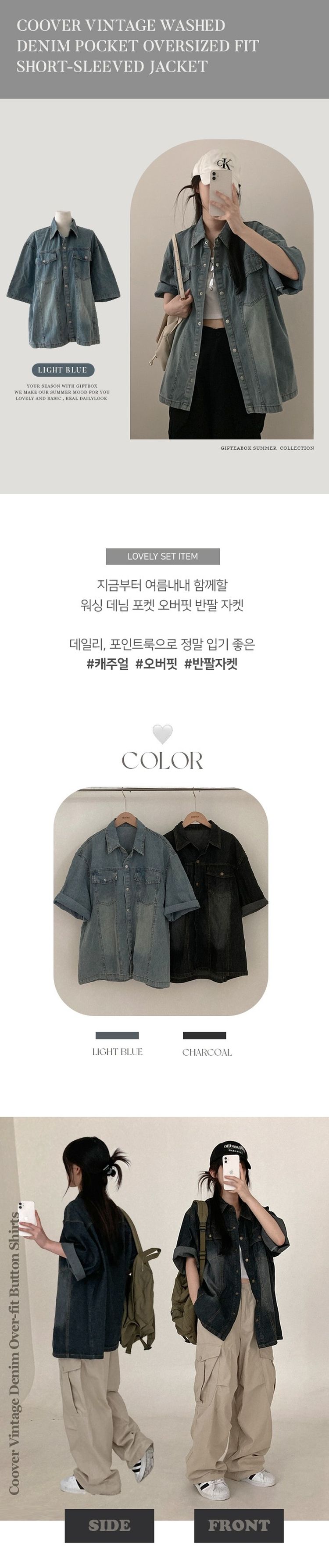 SJK11420 쿠버 빈티지 워싱 데님 포켓 오버핏 반팔 자켓