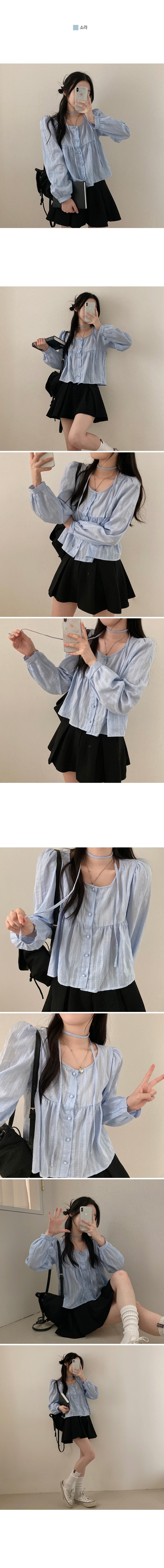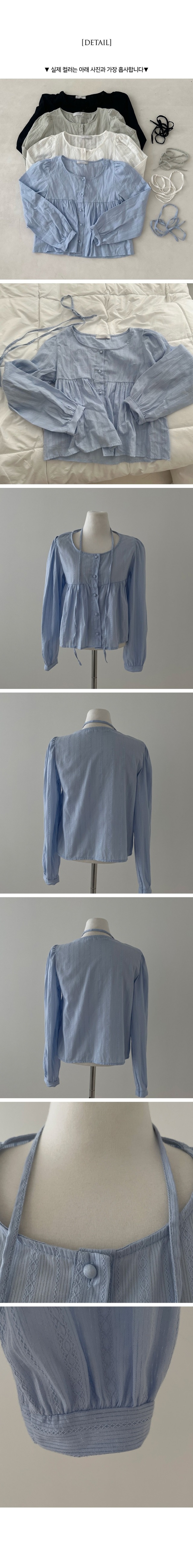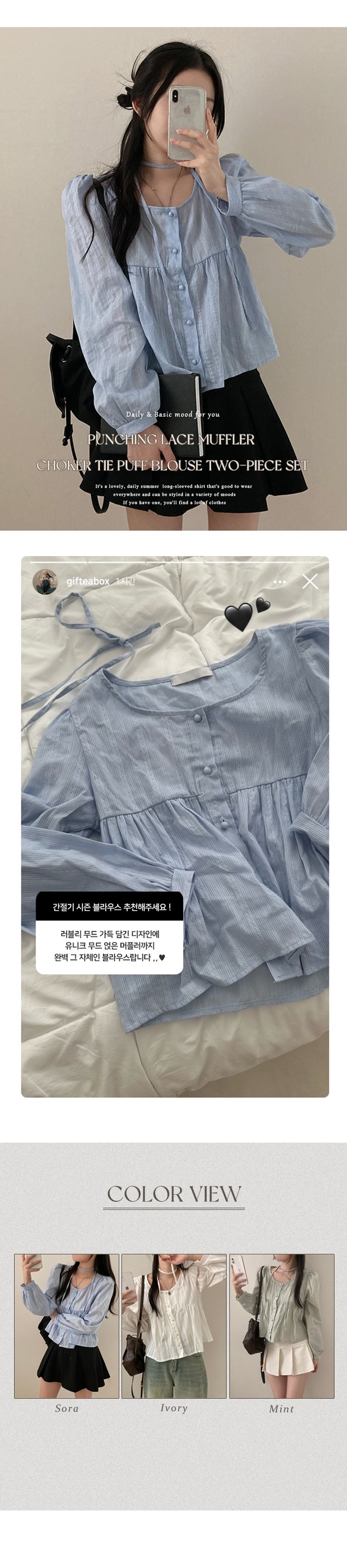 SBS22492 솜솜 펀칭 레이스 머플러 초커 타이 퍼프 블라우스 투피스 세트