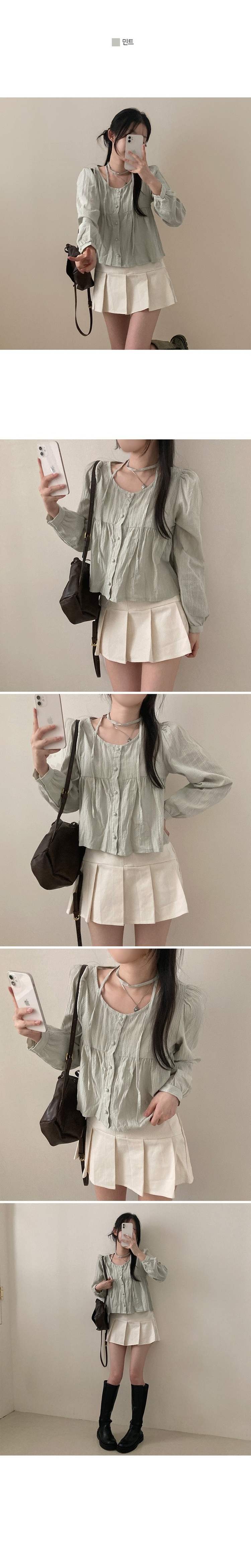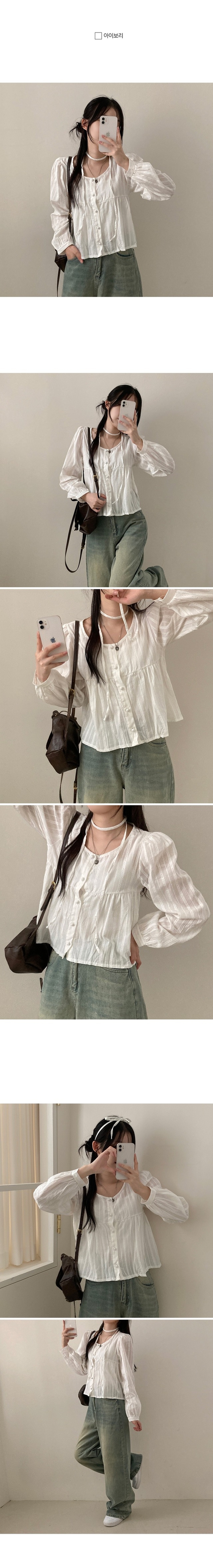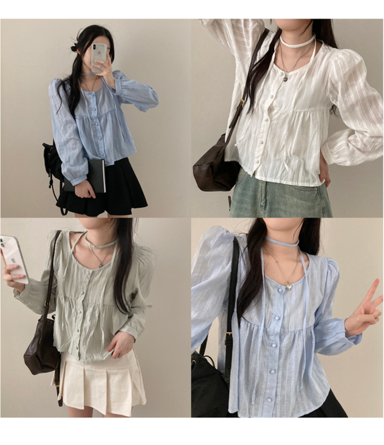 SBS22492 솜솜 펀칭 레이스 머플러 초커 타이 퍼프 블라우스 투피스 세트