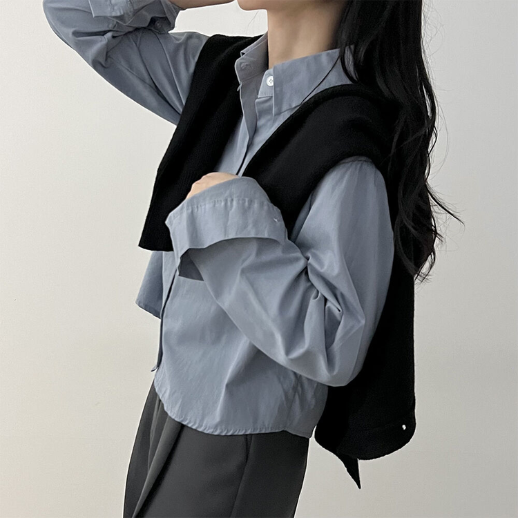 SBS22610 루즈 코튼 크롭셔츠