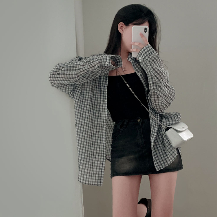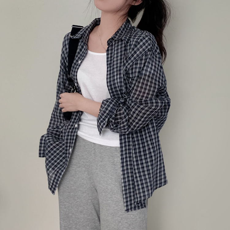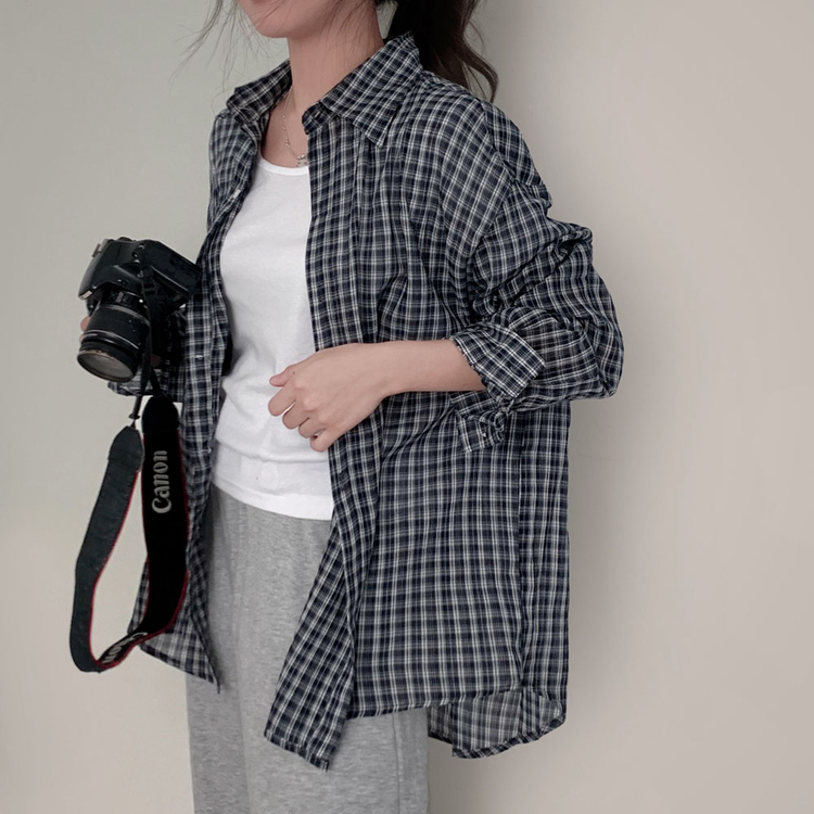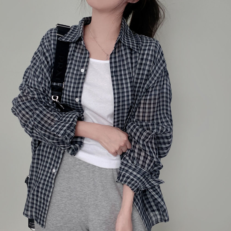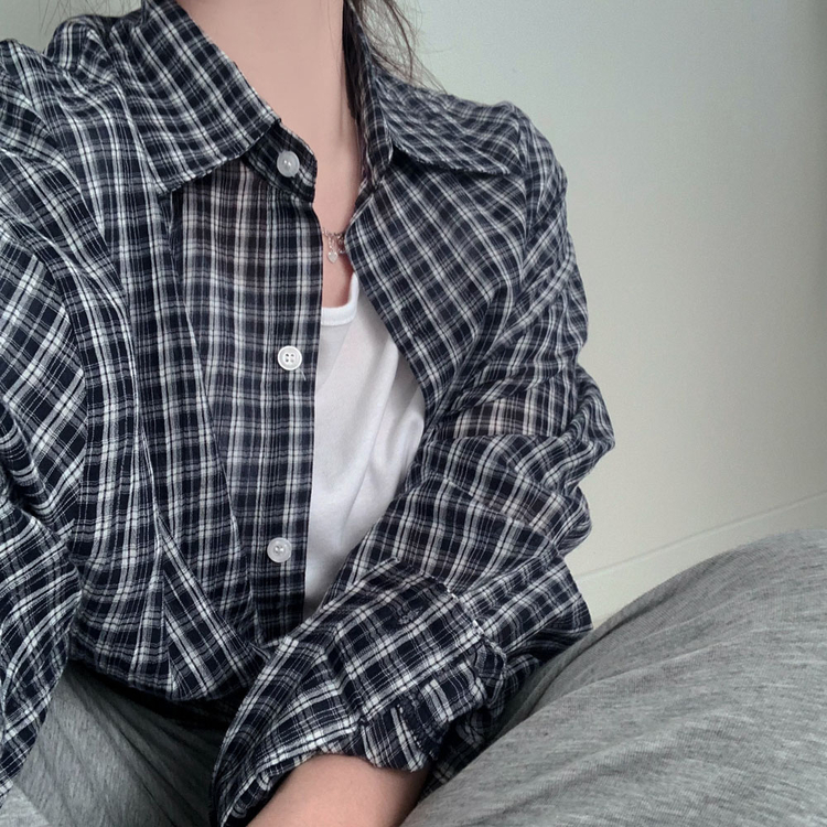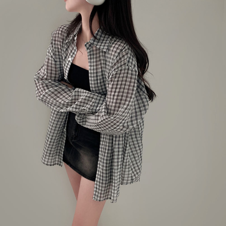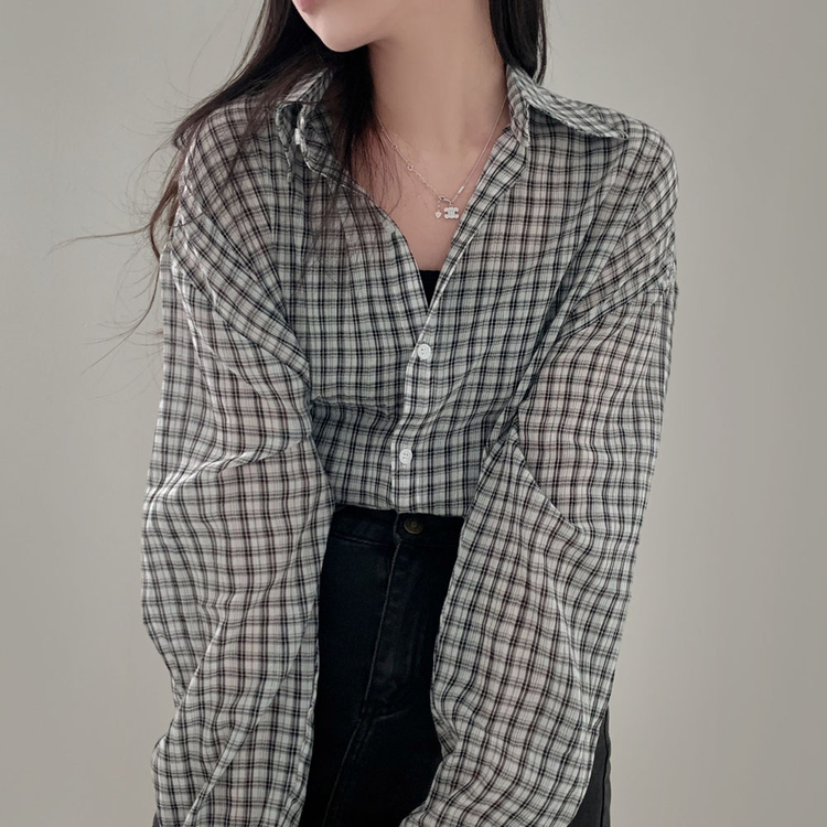 SBS22700 러브레터 시어서커 오버핏 체크셔츠남방