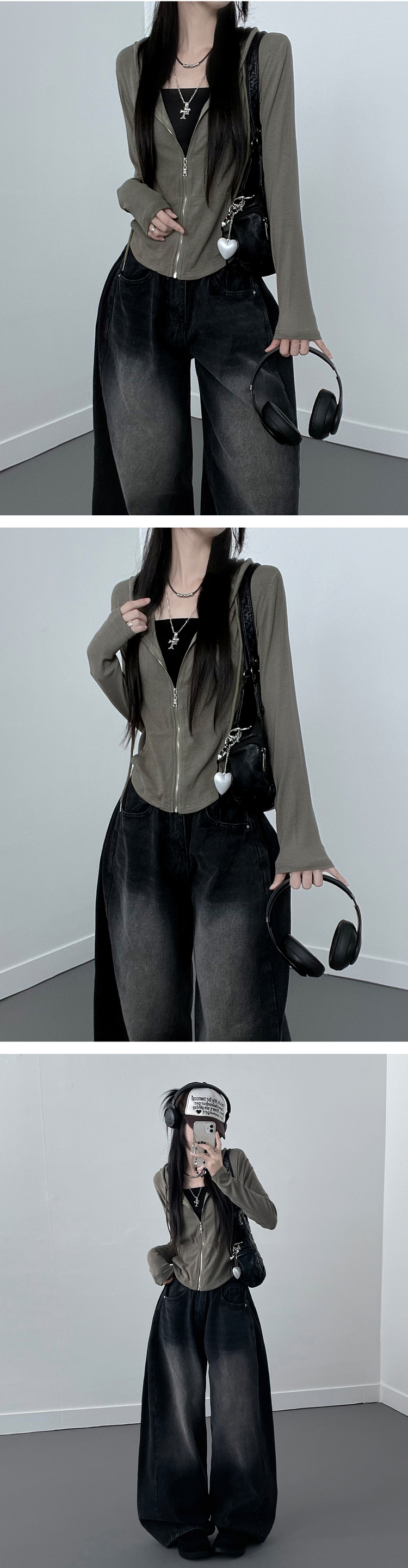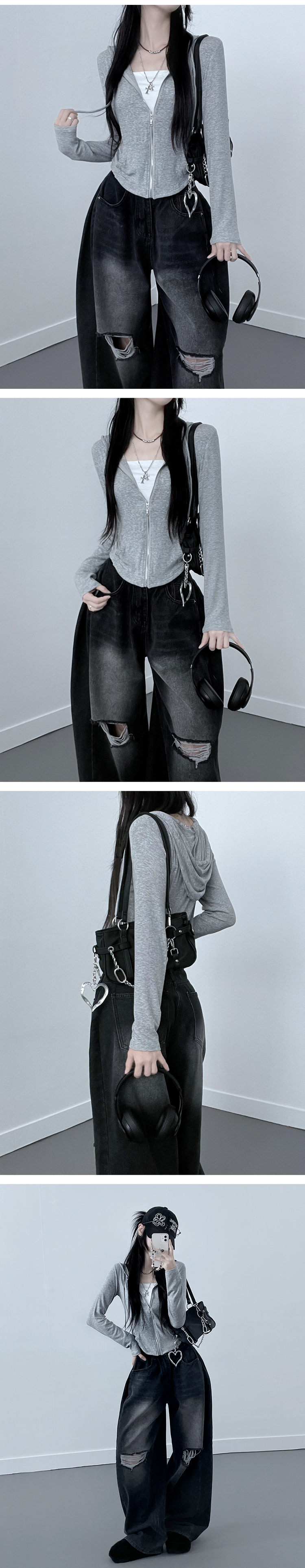 SJP12675 빈스골지슬림핏긴팔후드집업