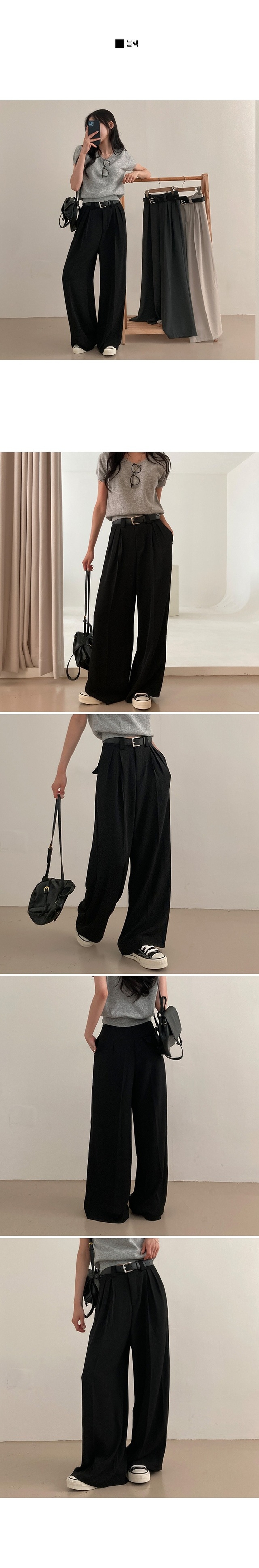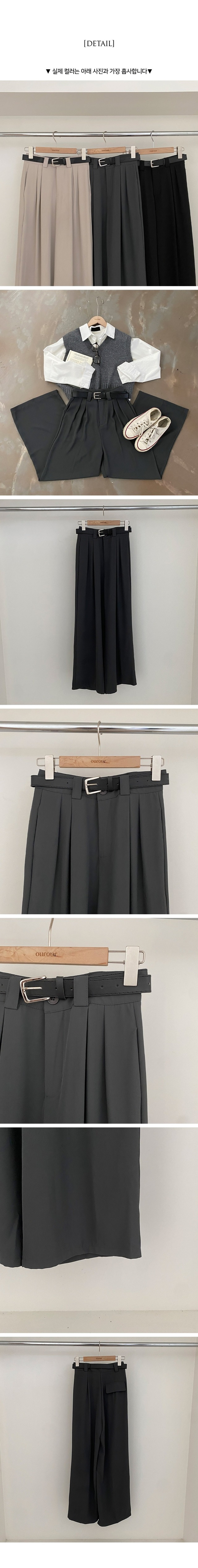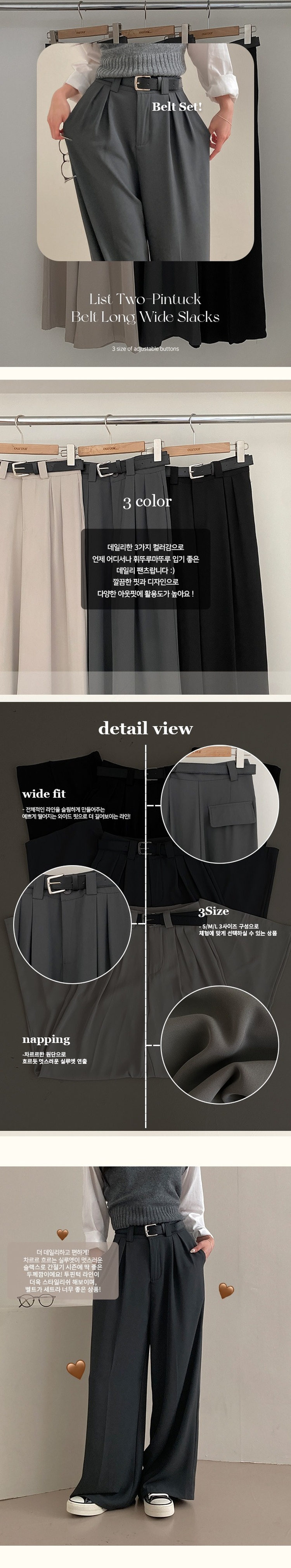 SSL1606 리스트 투핀턱 벨트 롱 와이드 슬랙스 팬츠