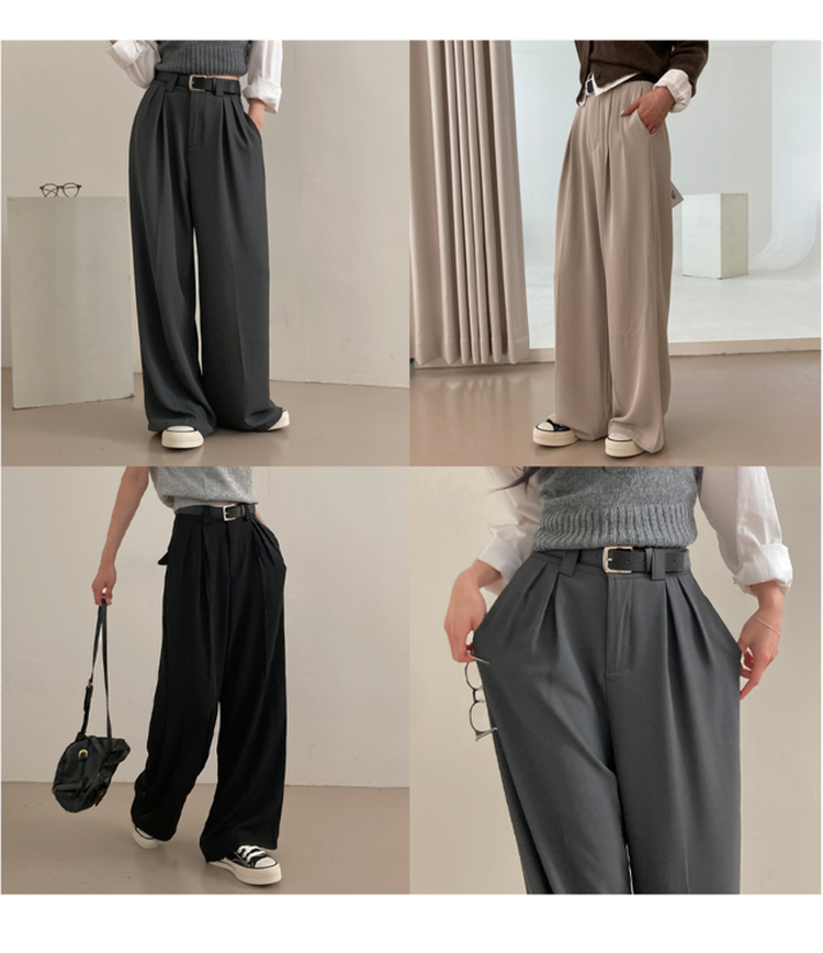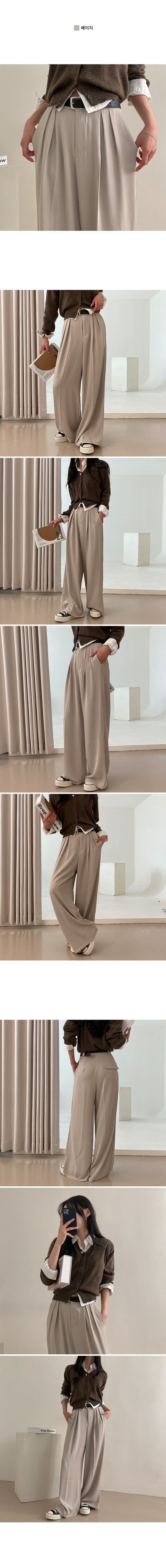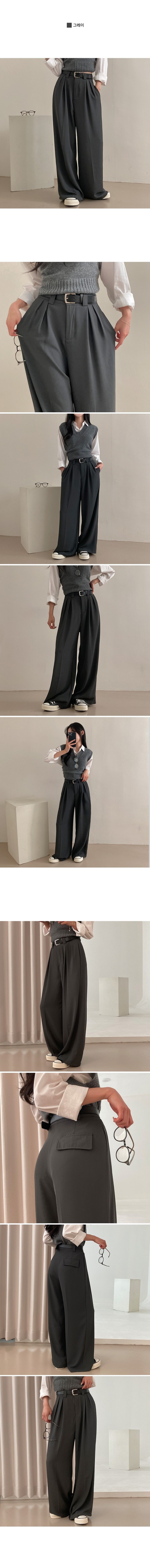 SSL1606 리스트 투핀턱 벨트 롱 와이드 슬랙스 팬츠
