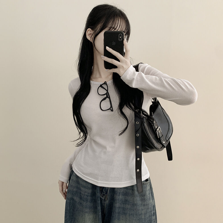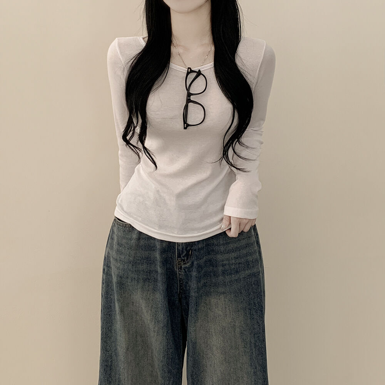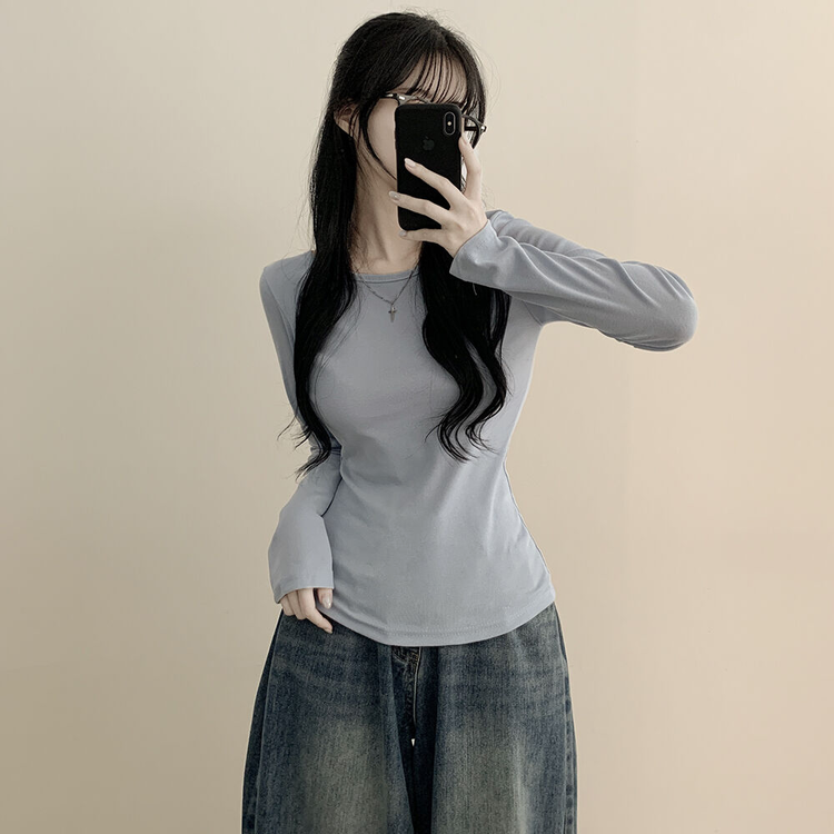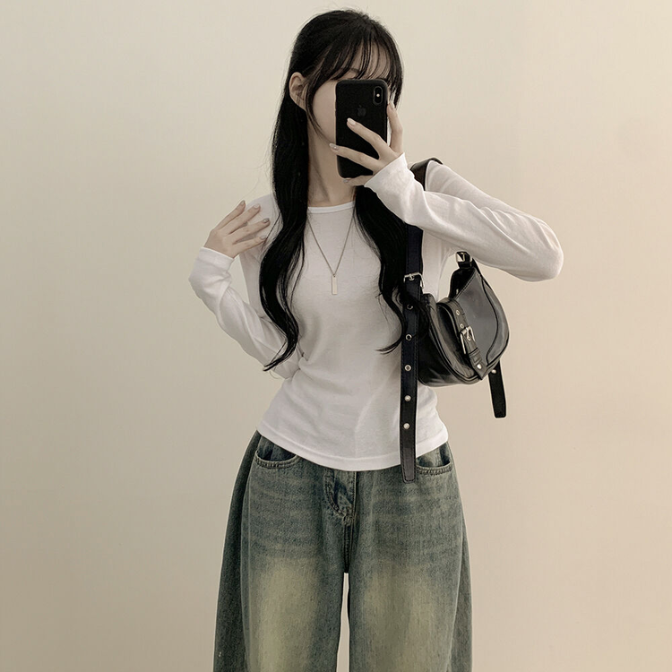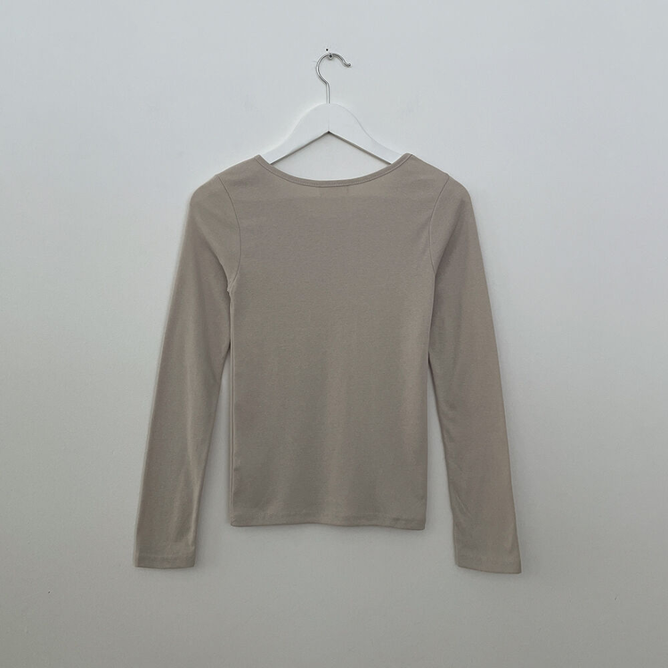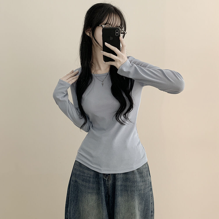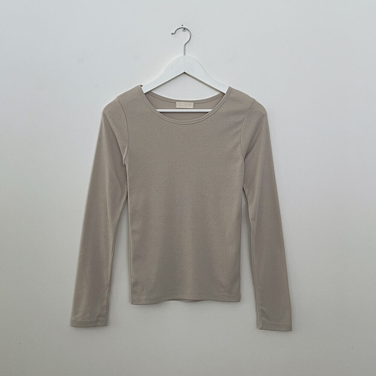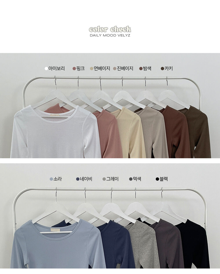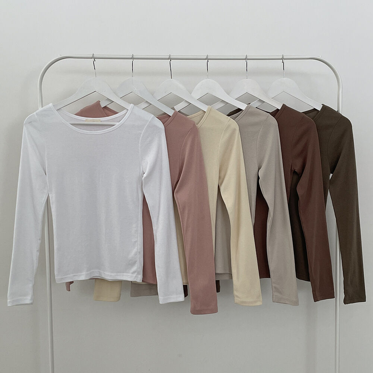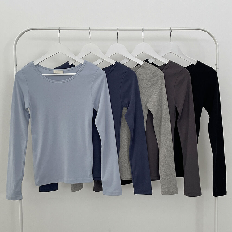 STS57471 허얇골넓 슬림 무지 라운드 유넥 허리잘록 긴팔티셔츠