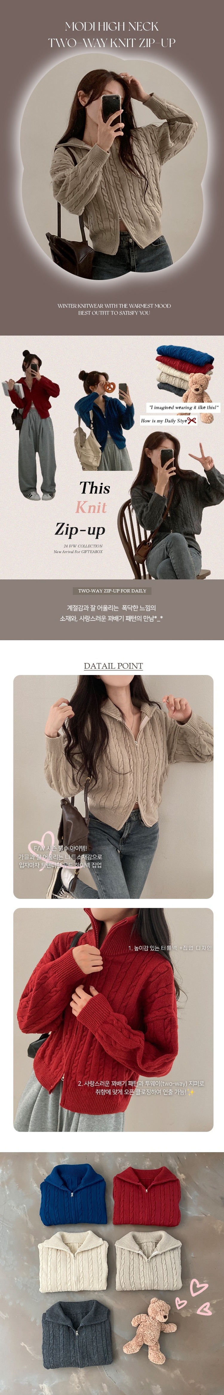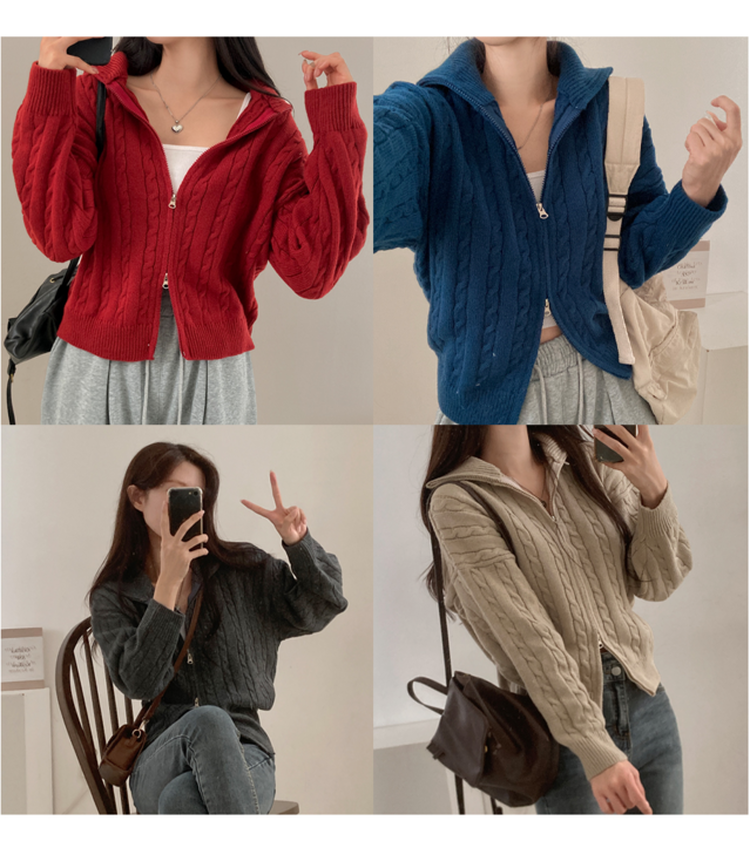 SJP12646 모디 하이넥 카라 꽈배기 투웨이 니트 집업