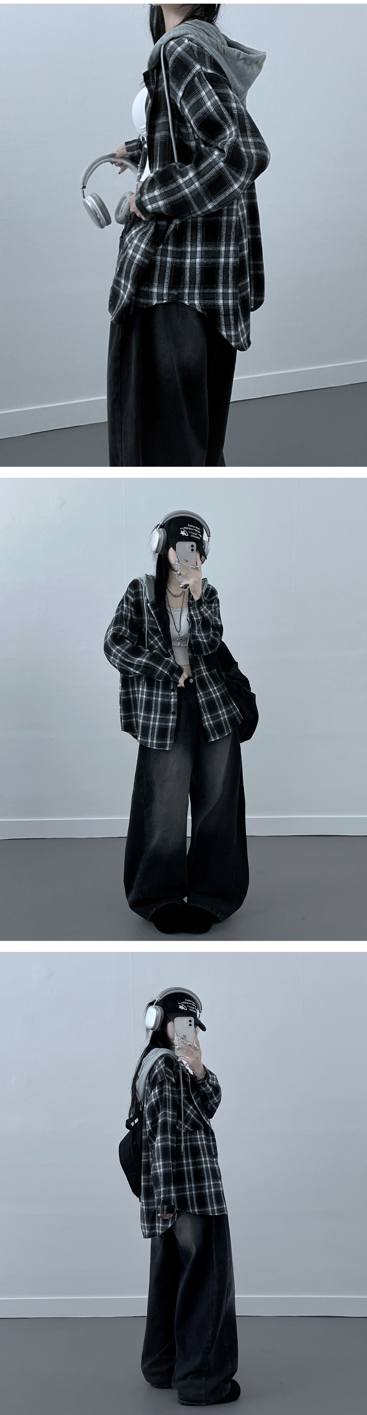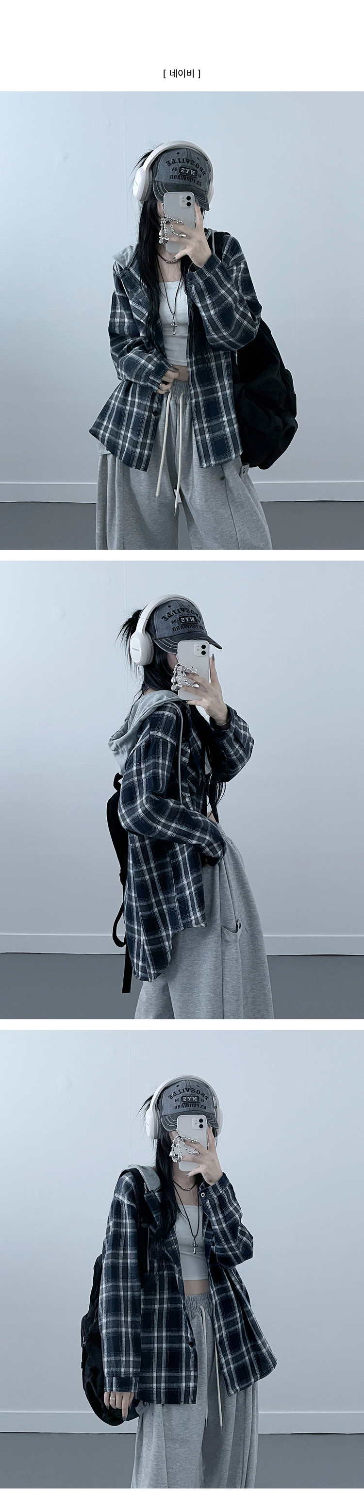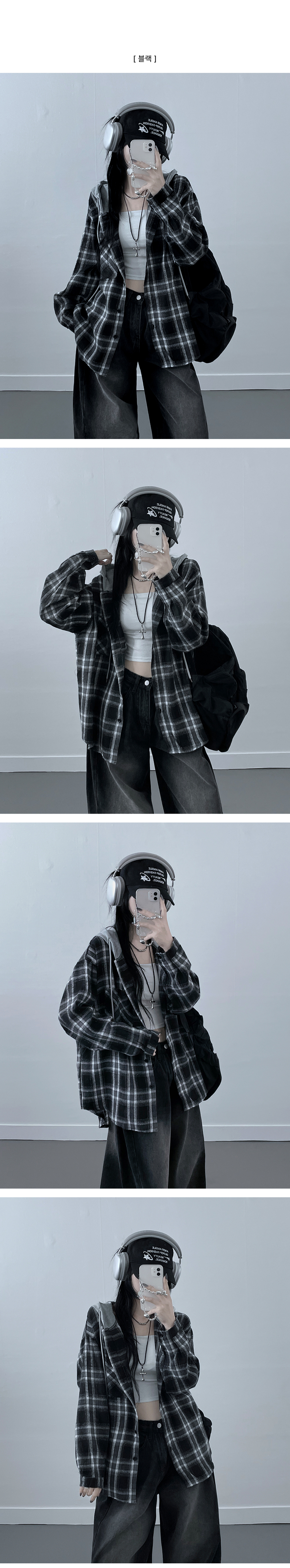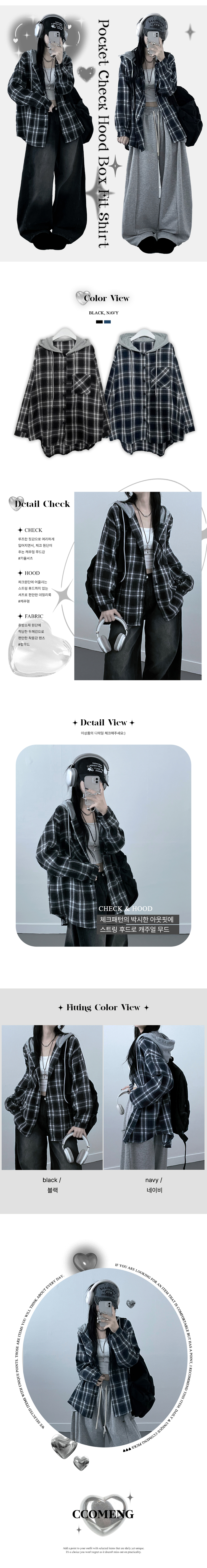 SBS23111 치코포켓체크후드박스핏셔츠남방