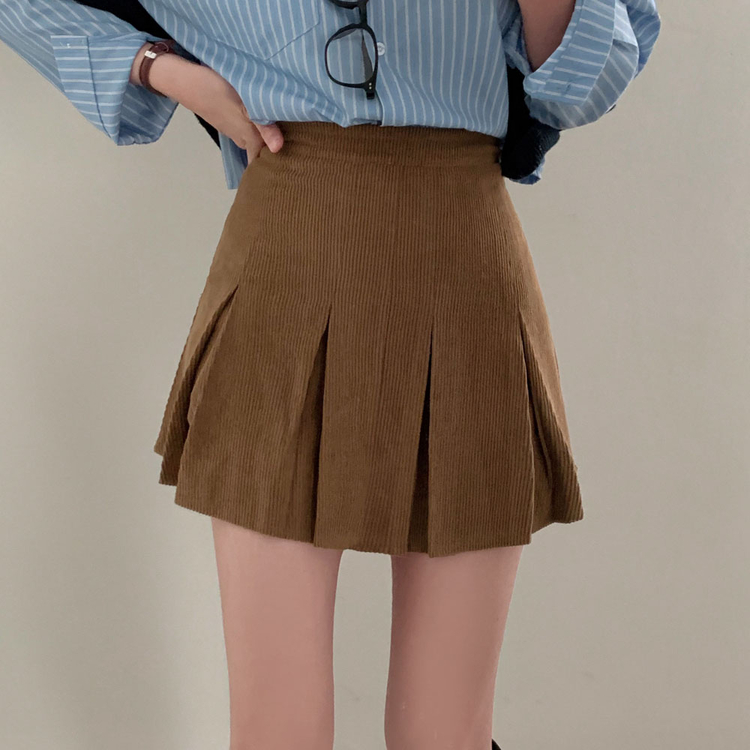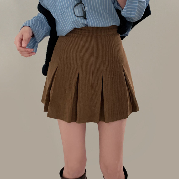 SSK19220 시나몬 코듀로이 플리츠 미니스커트 3color