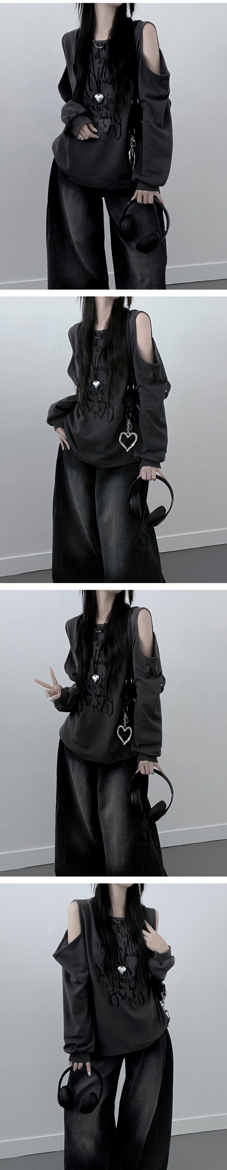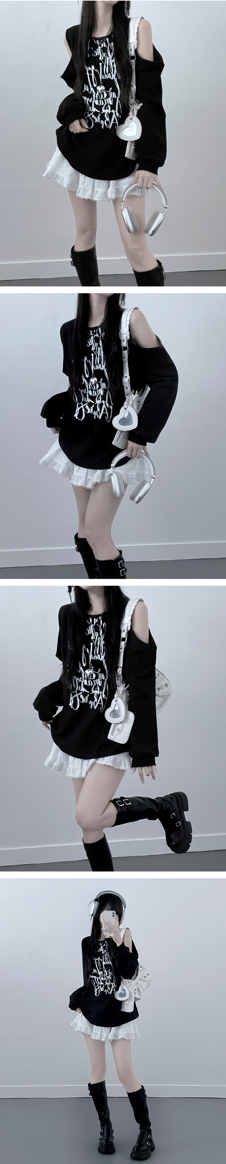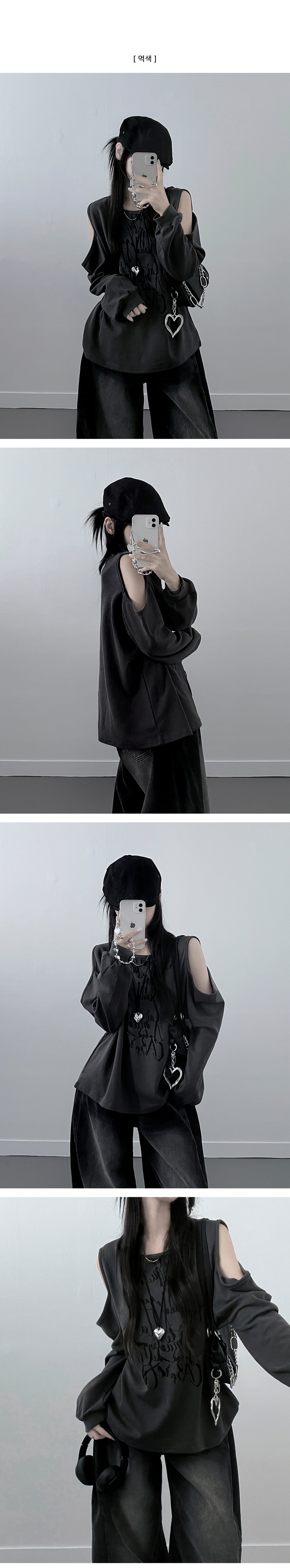 STS58010 아트레터링숄더컷팅오프숄더맨투맨