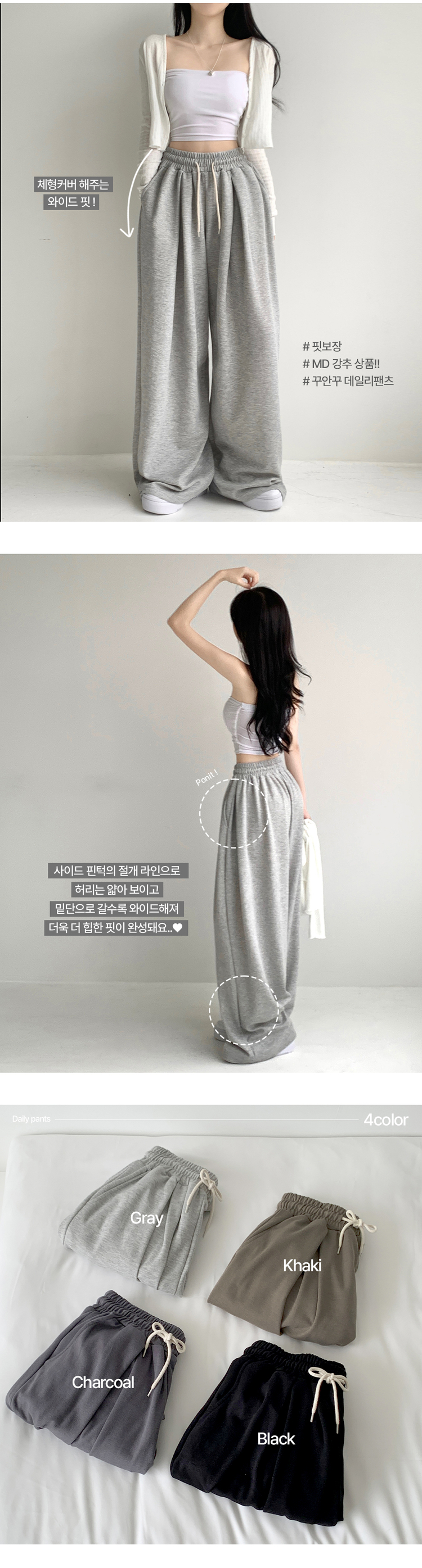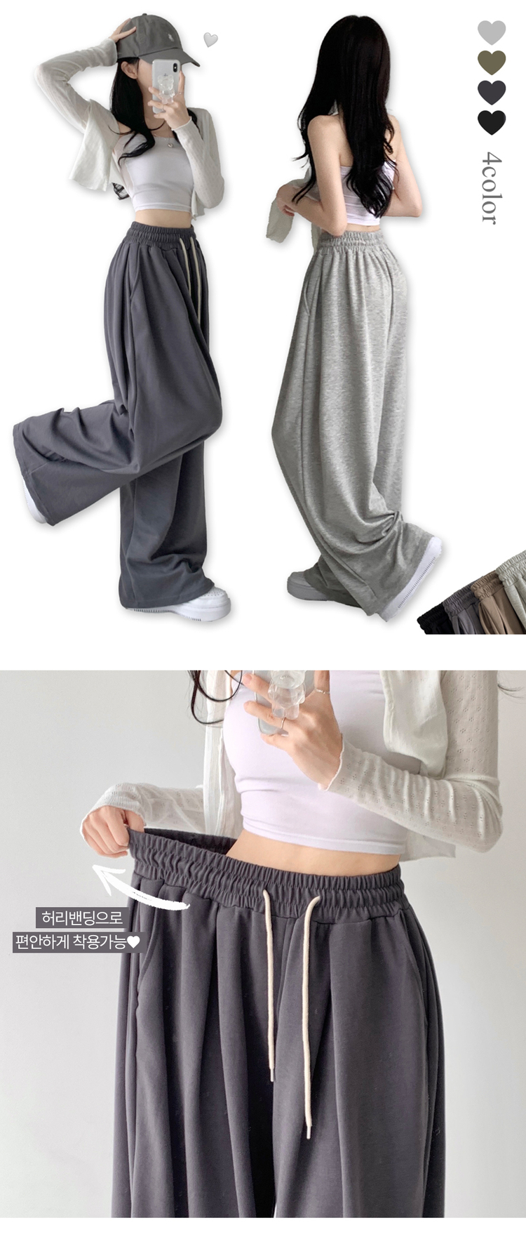 STR4013 윈드 허리 밴딩 앞핀턱 사이드핀턱 폴딩 밴딩 와이드 하이웨스트 로우라이즈 트레이닝 팬츠 바지 키작녀 키큰녀 빅사이즈 남녀공용 하비추천 사계절