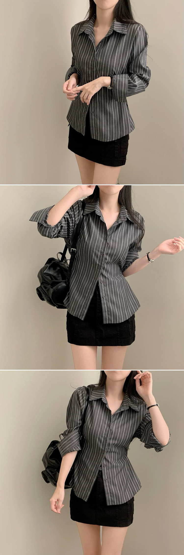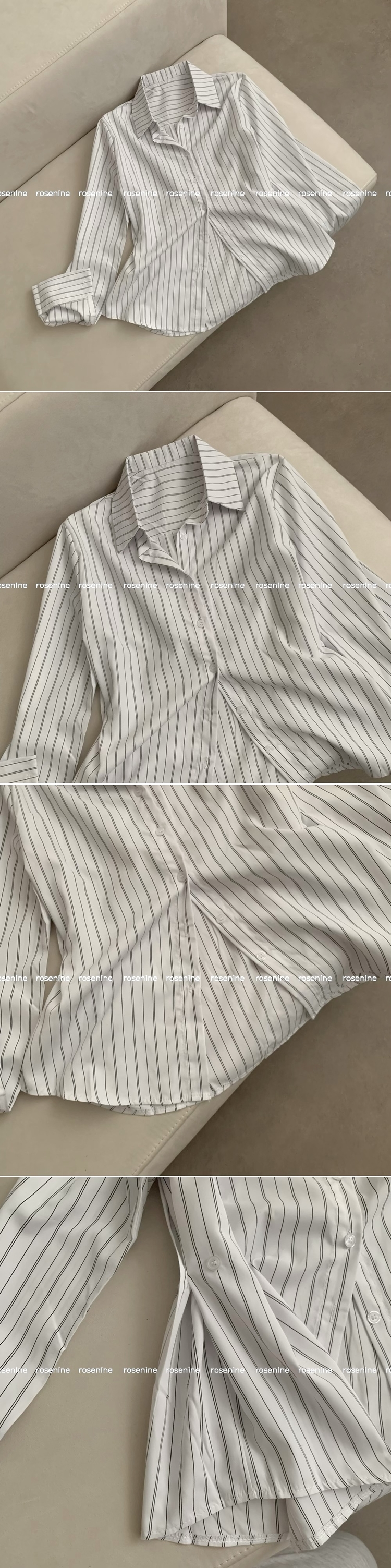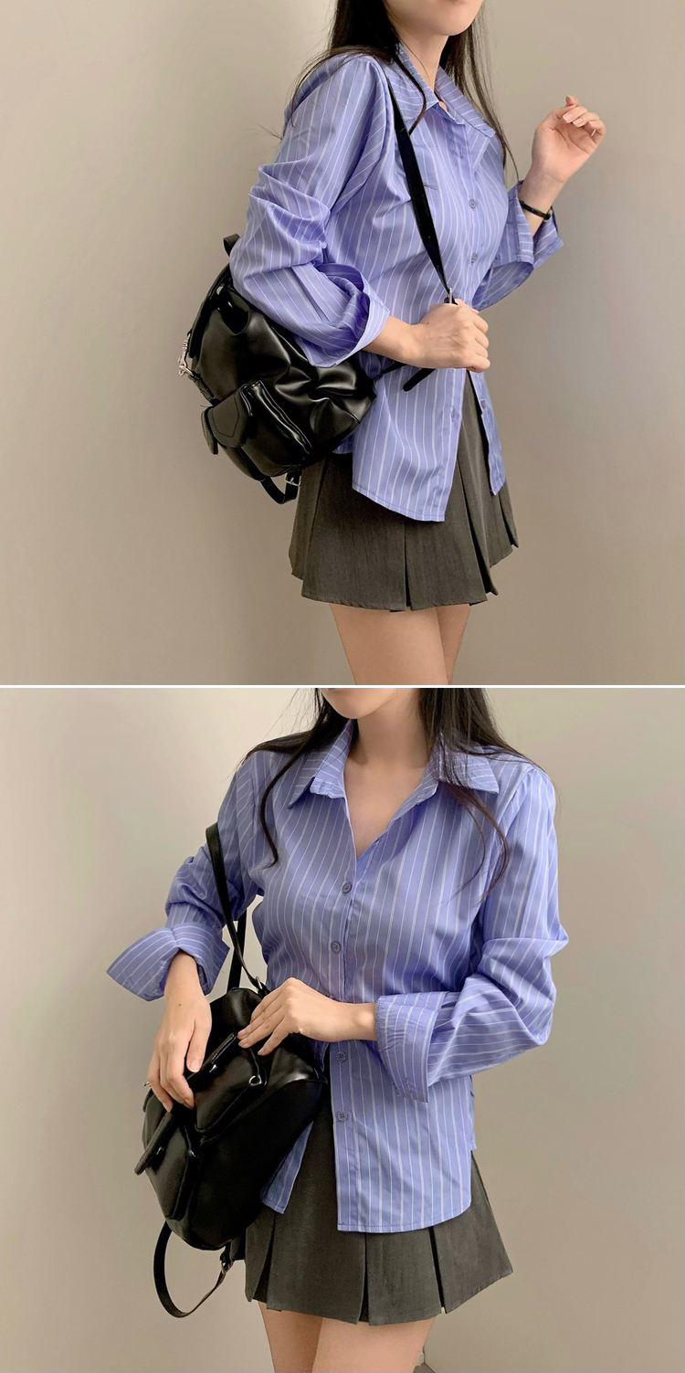 SBS23409 스트라이프 허리 단추 봄 가을 긴팔 셔츠