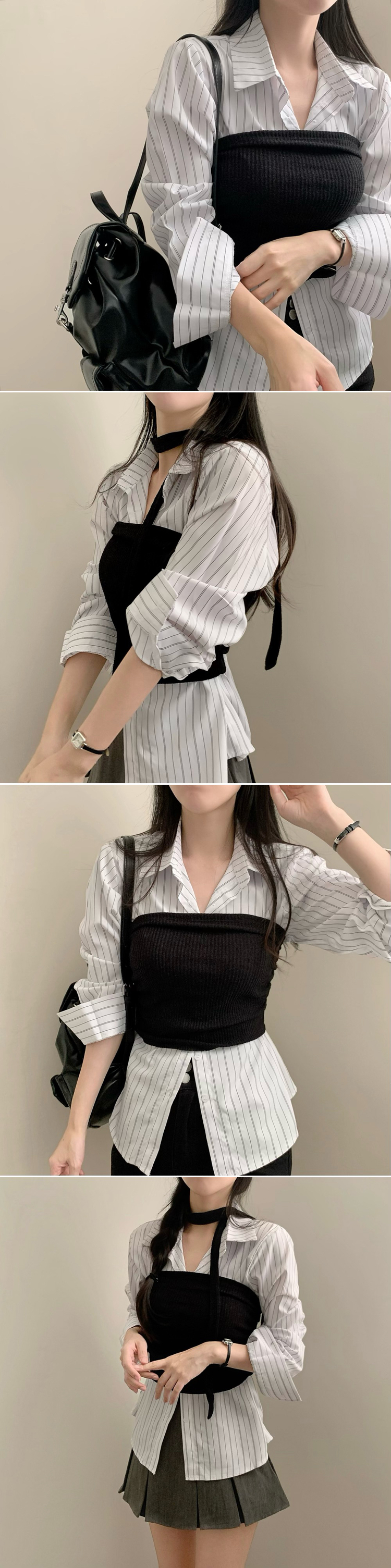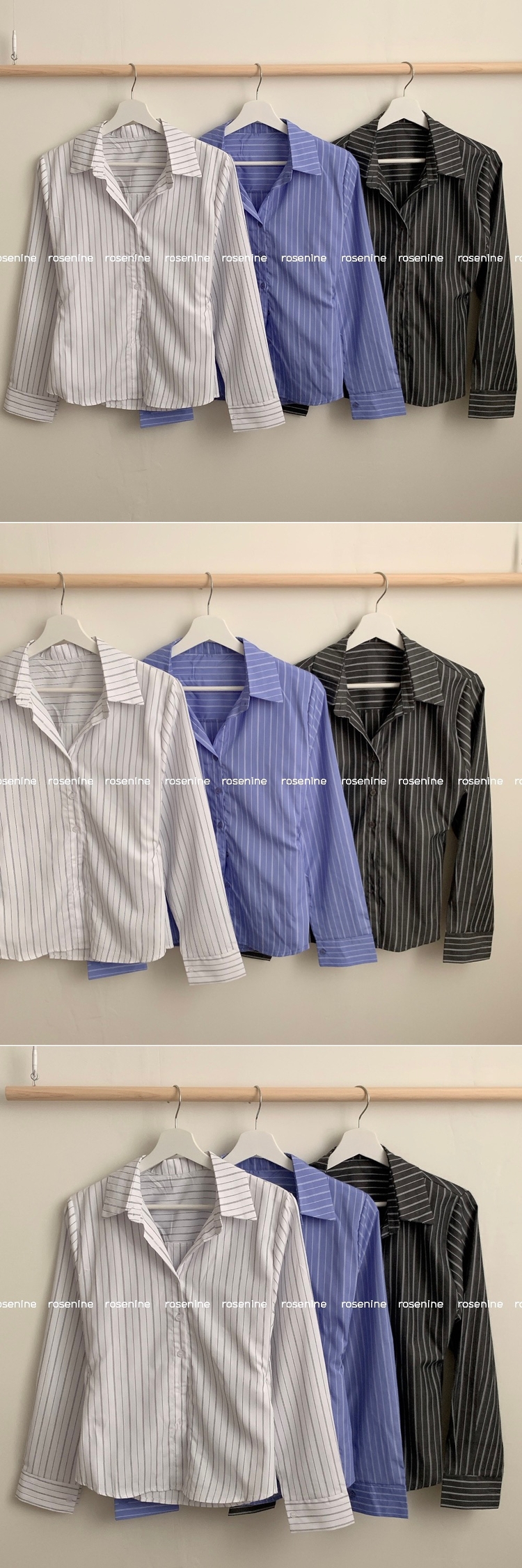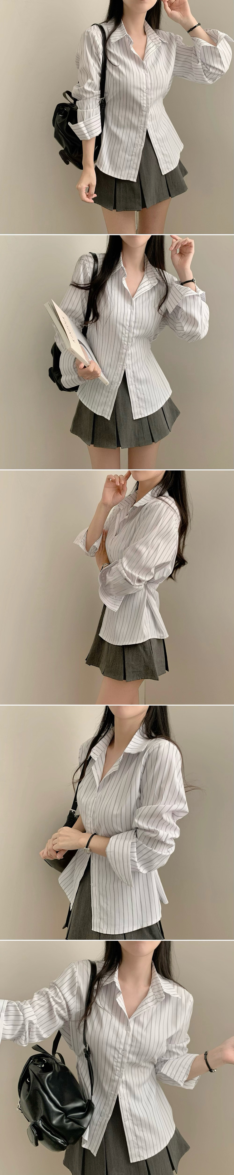 SBS23409 스트라이프 허리 단추 봄 가을 긴팔 셔츠