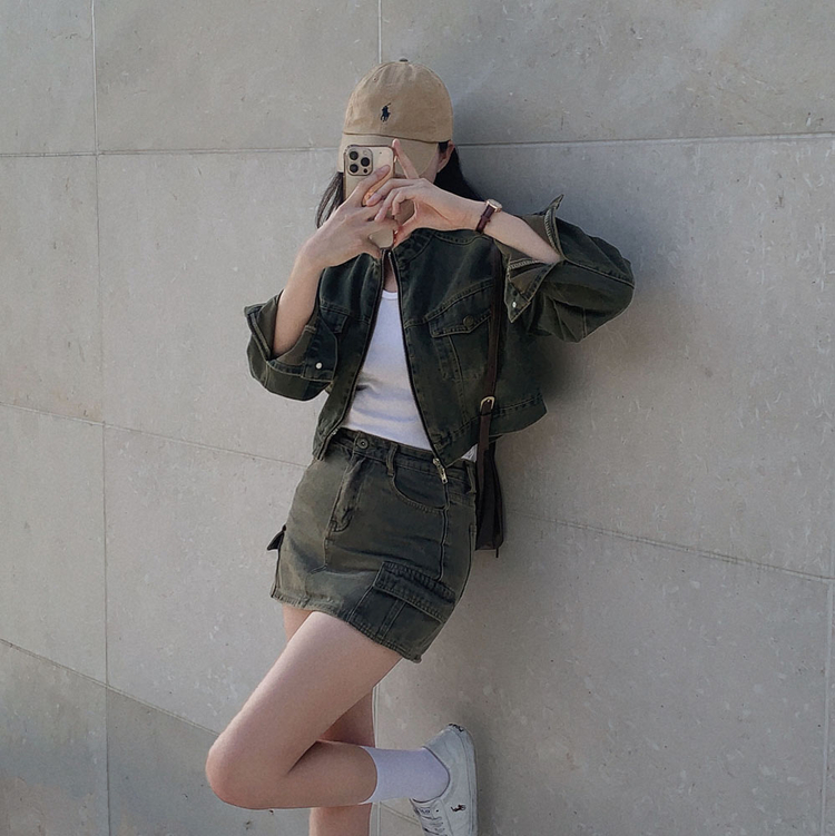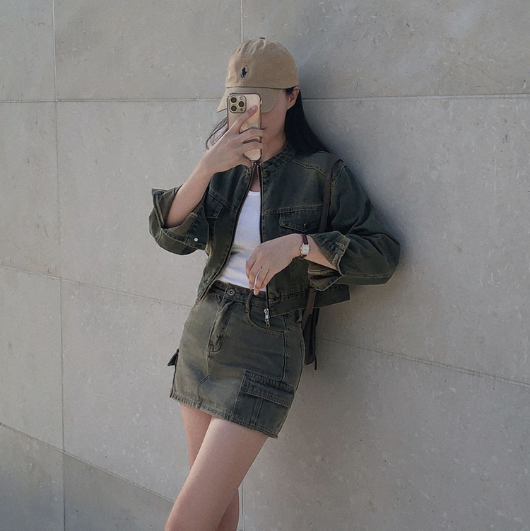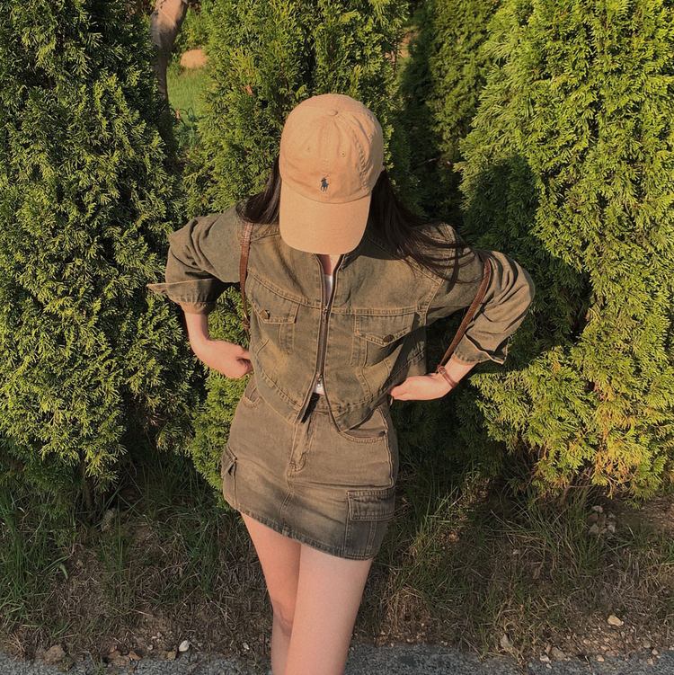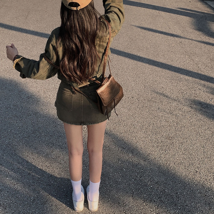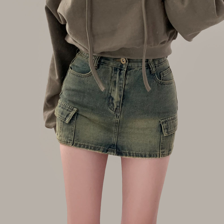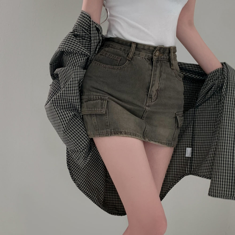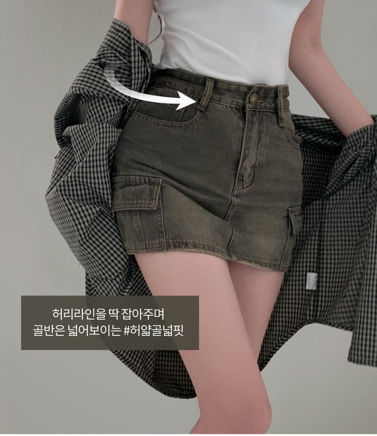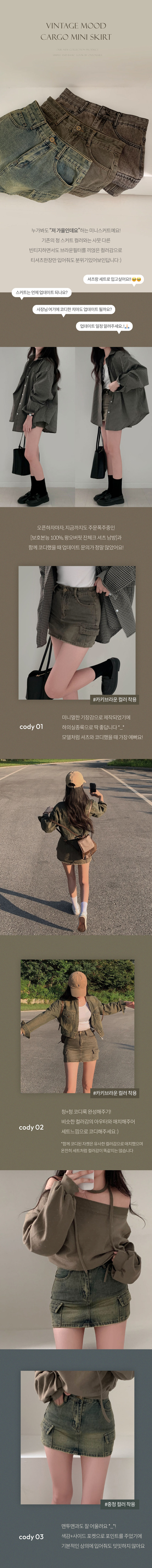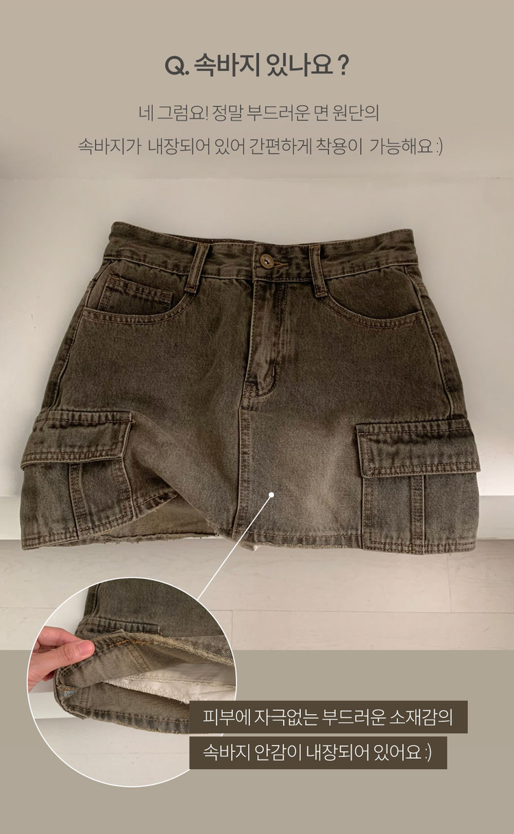 SSK19408 브라운 필터낀 듯한 색감 빈티지 카고 미니멀 데님 스커트 3color