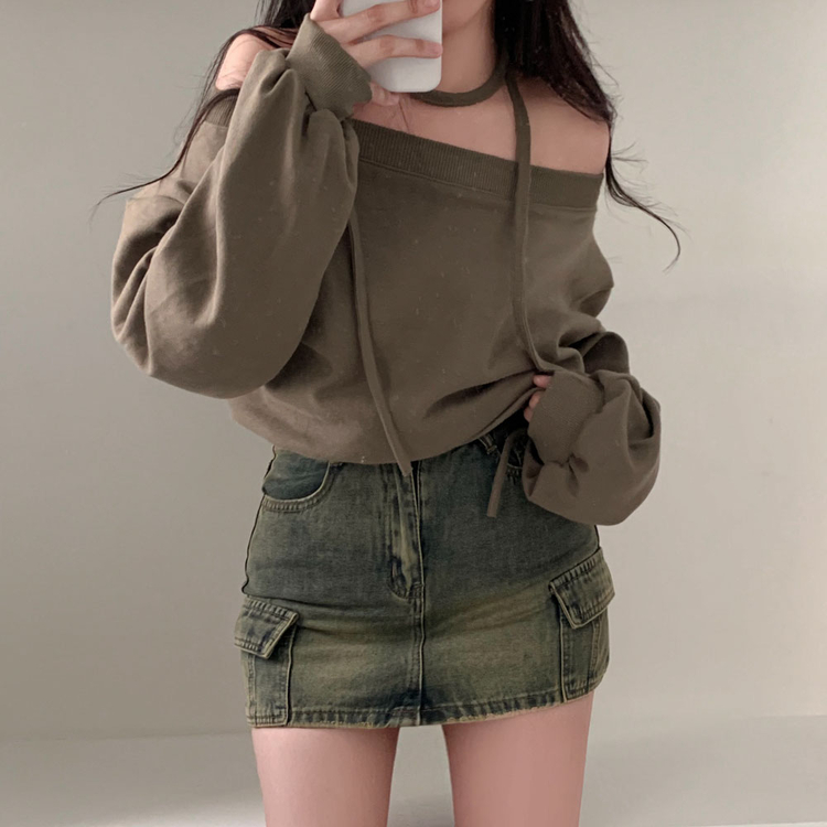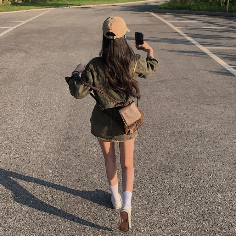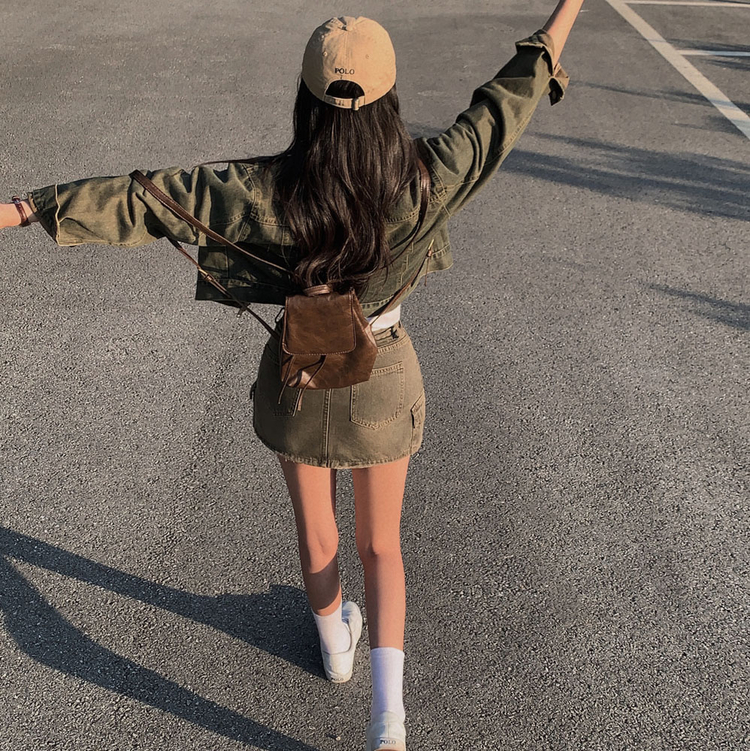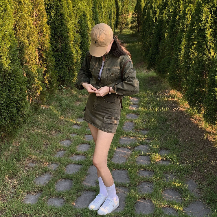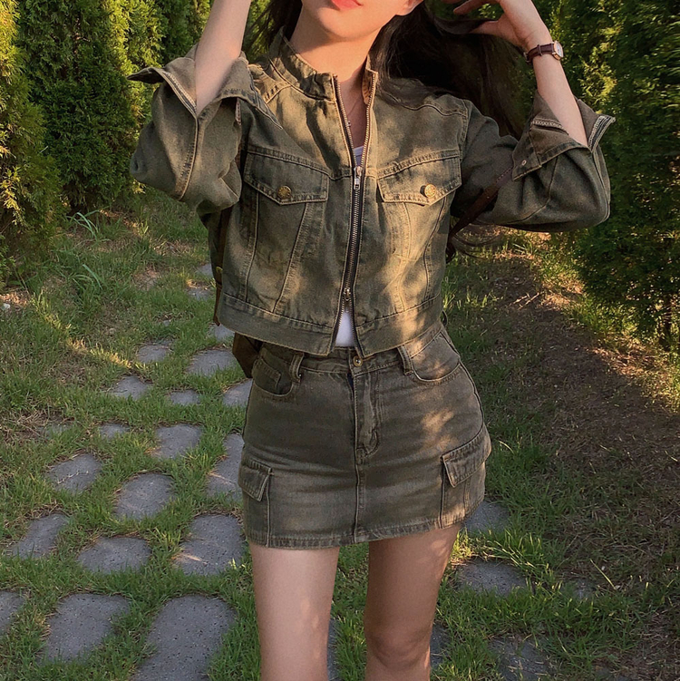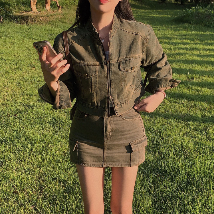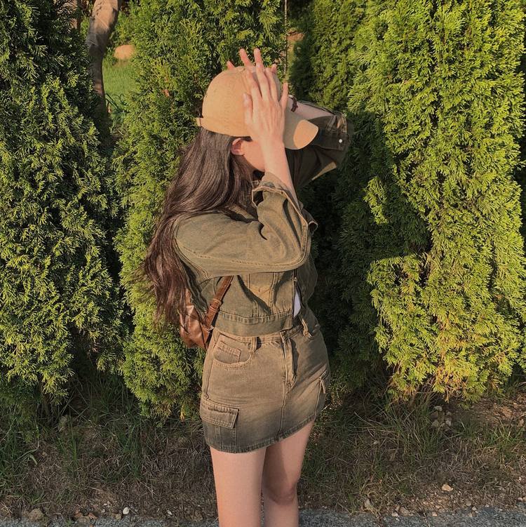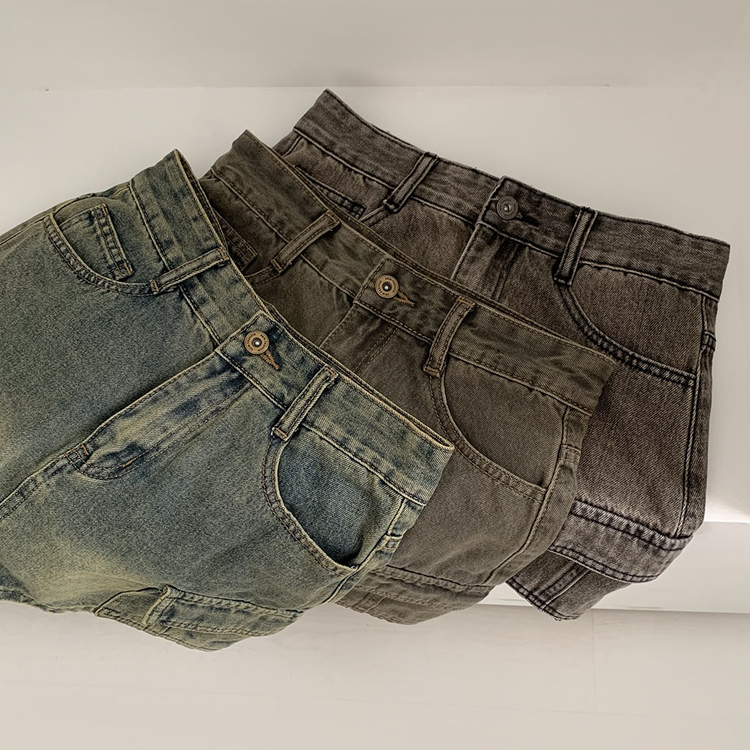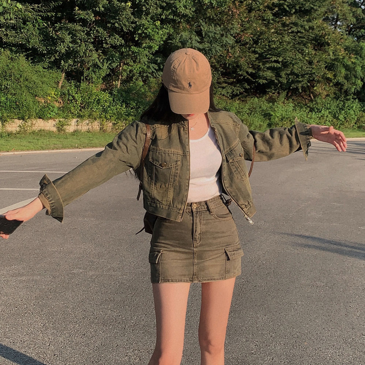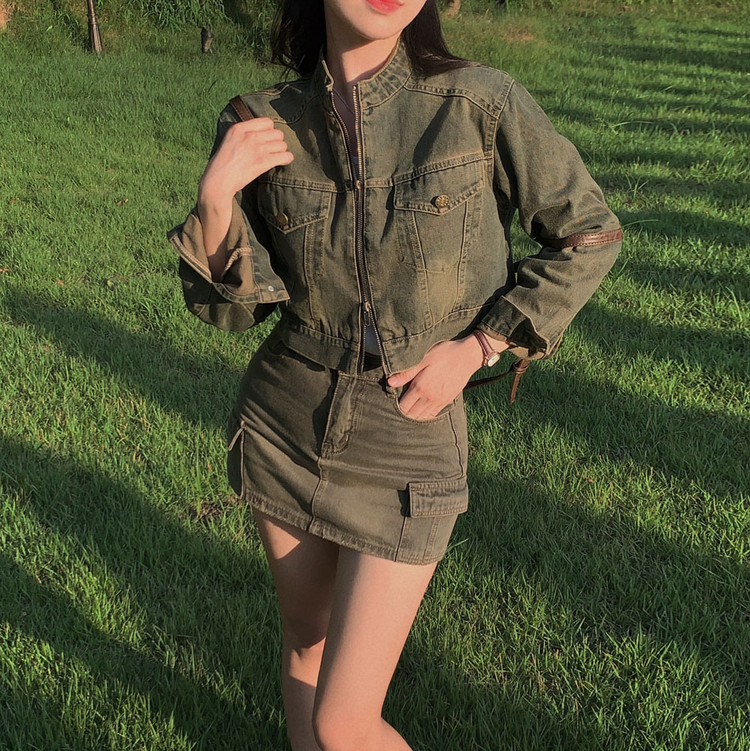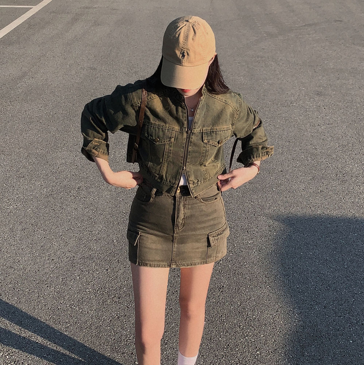 SSK19408 브라운 필터낀 듯한 색감 빈티지 카고 미니멀 데님 스커트 3color