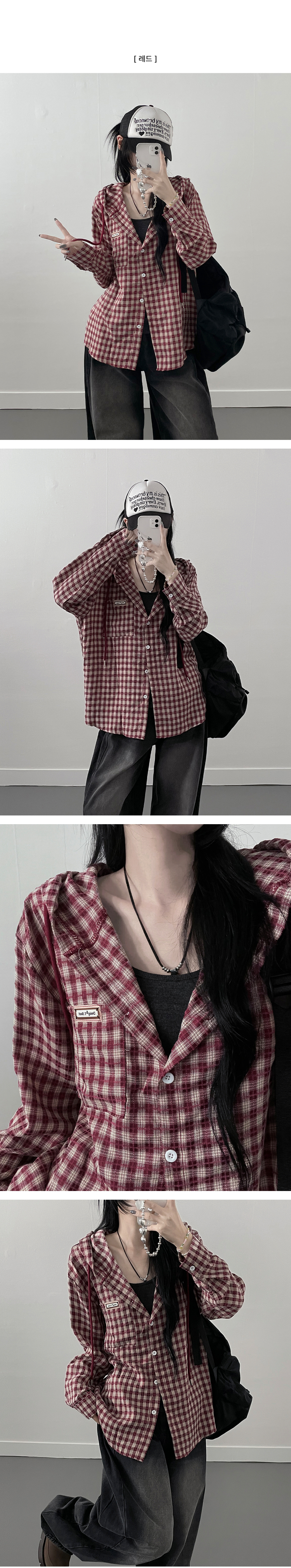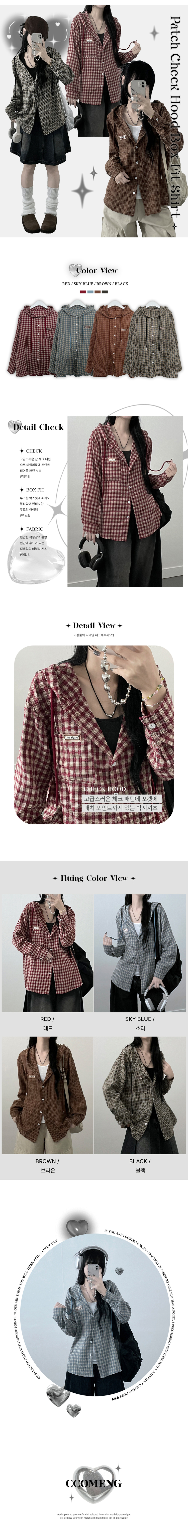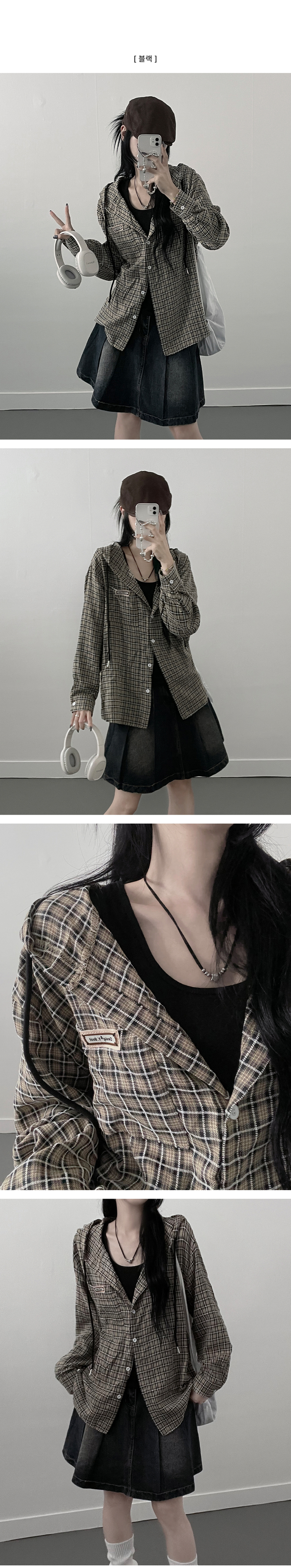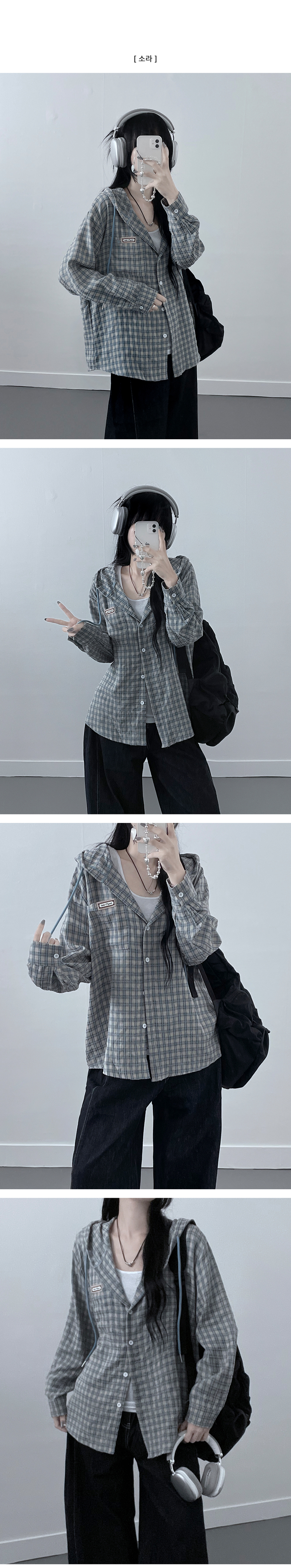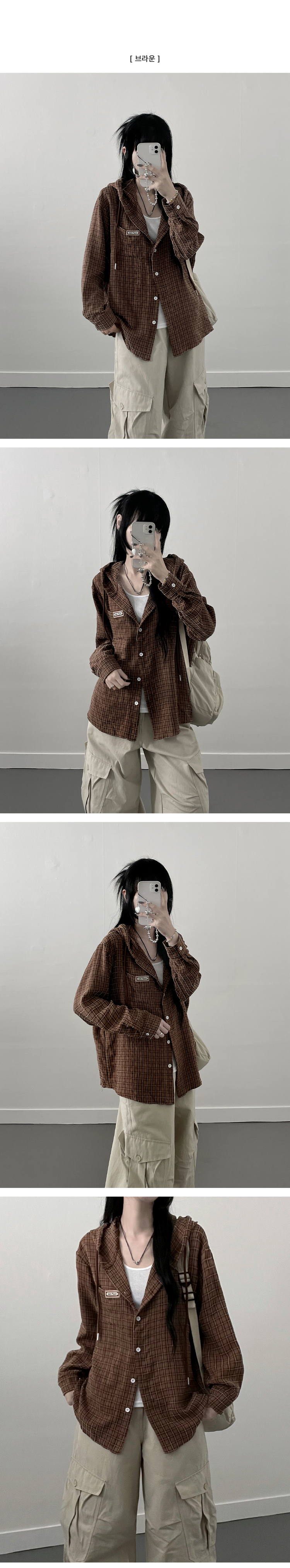 SBS23518 어텀패치잔체크후드박스핏셔츠남방