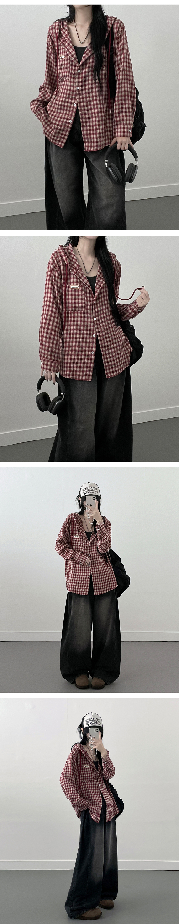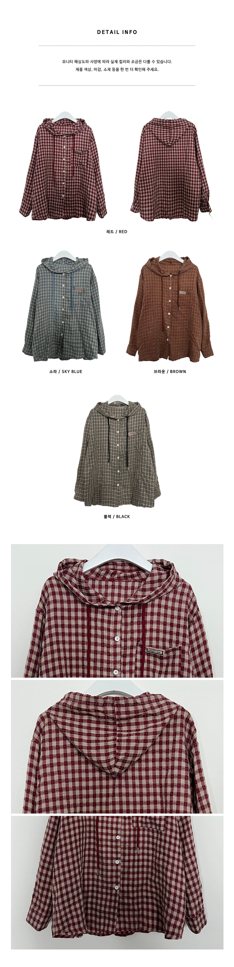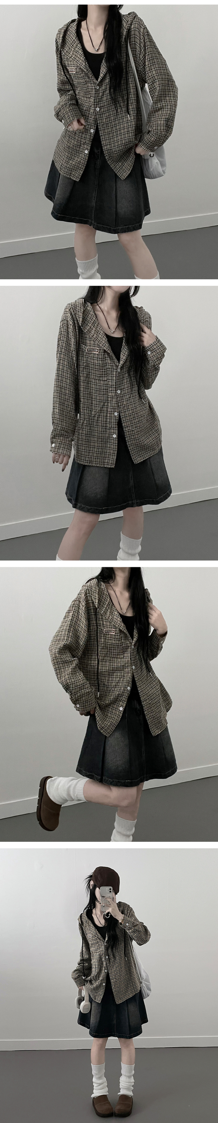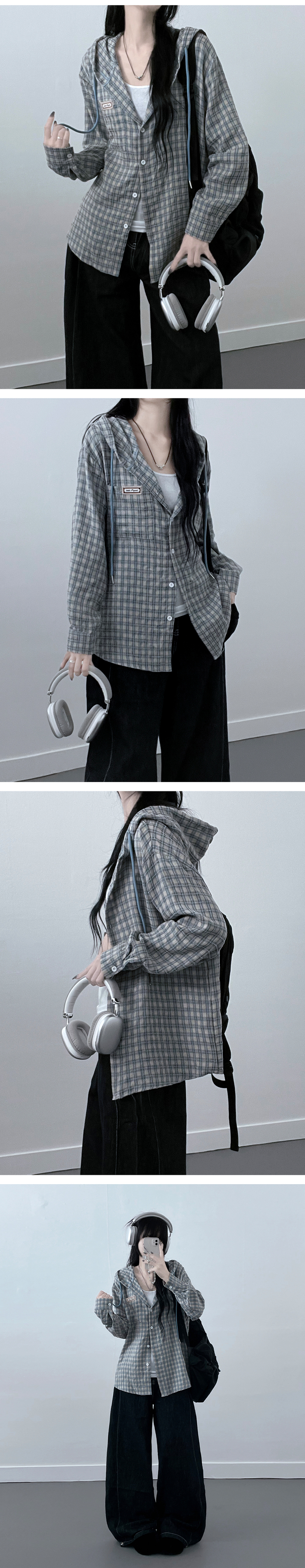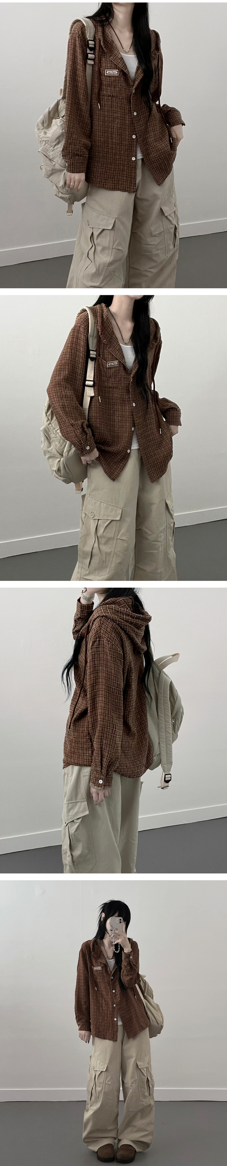 SBS23518 어텀패치잔체크후드박스핏셔츠남방