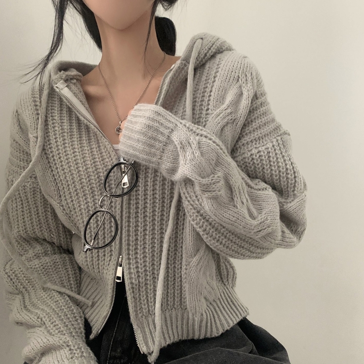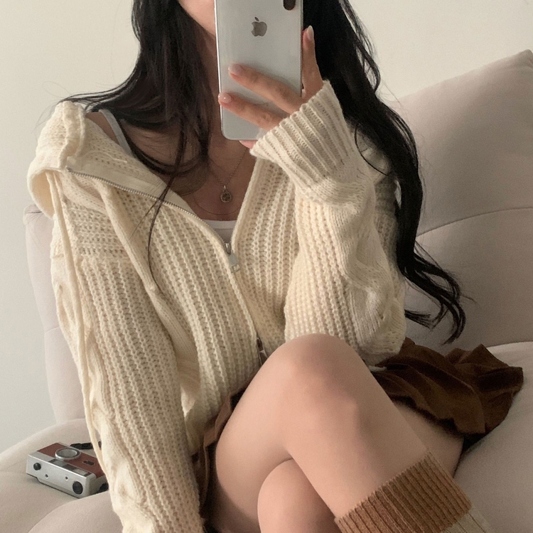 SJP13015 [첫구매 100원] 니모 꽈배기 후드 투웨이 니트집업 - 3color