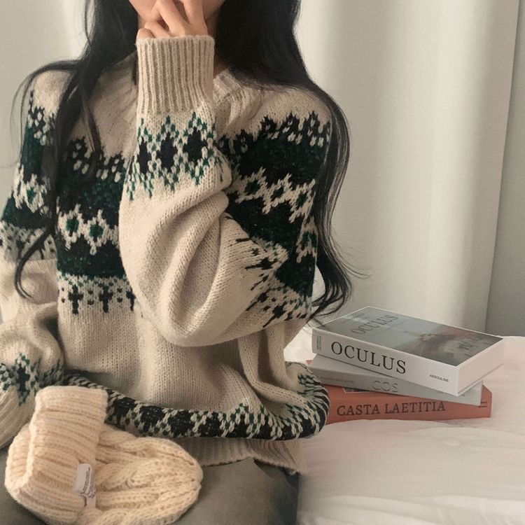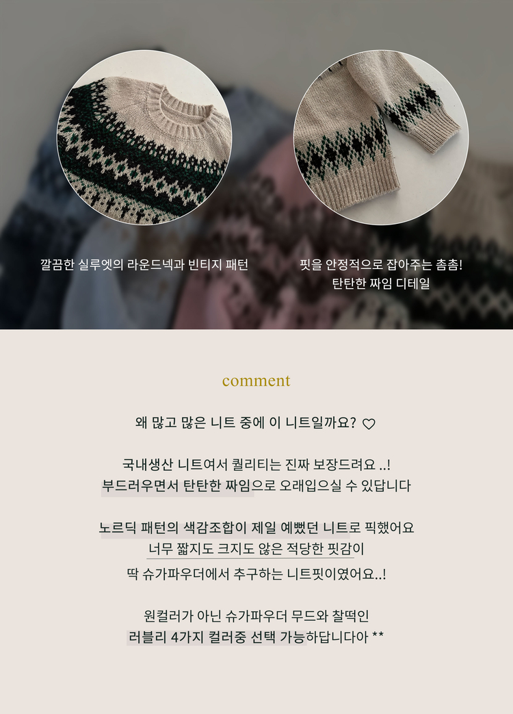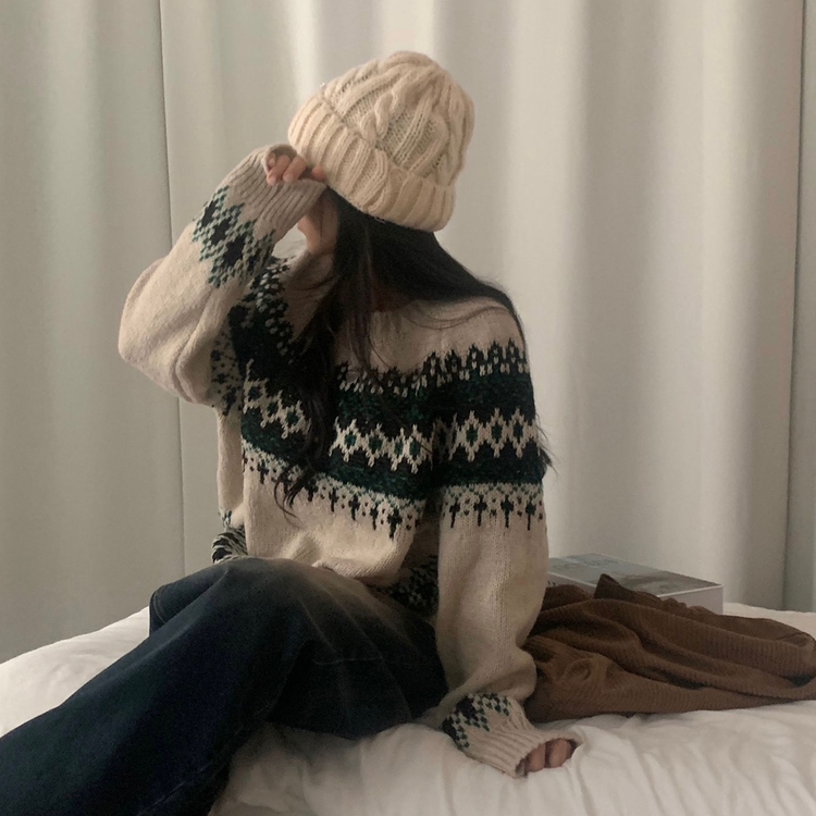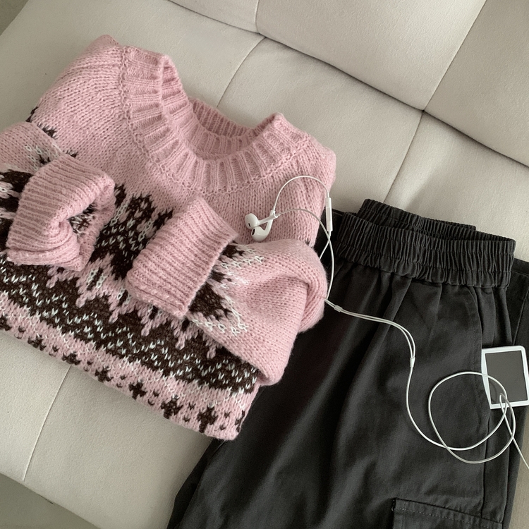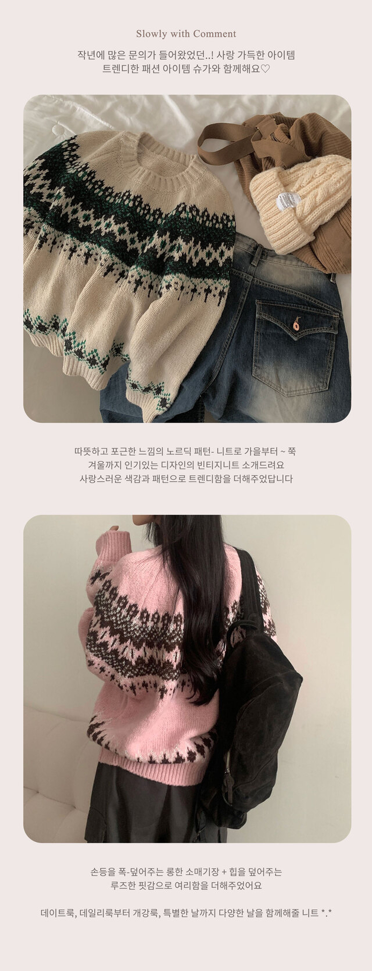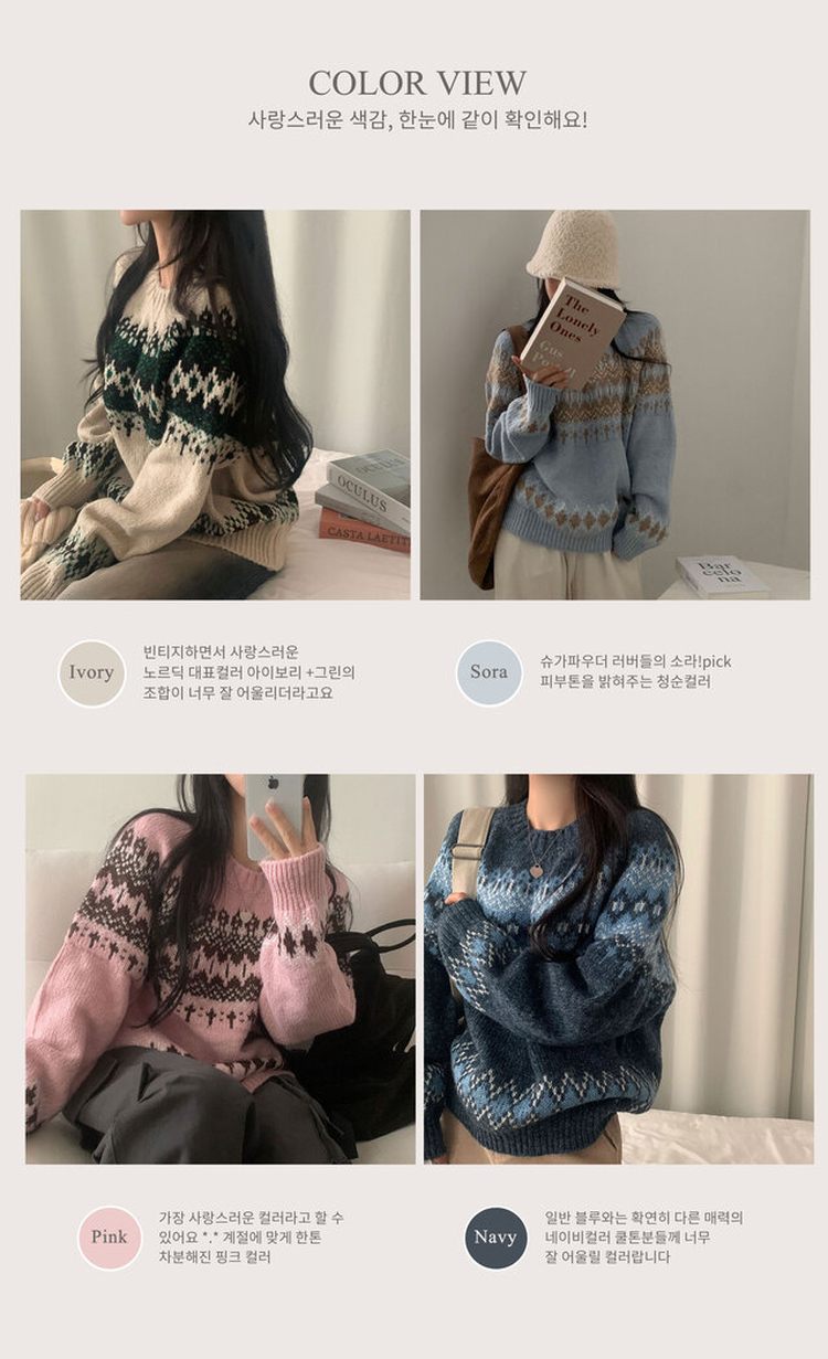 SNT25976 뉴트 노르딕 아가일 눈꽃 라운드 니트 4color