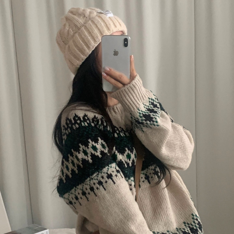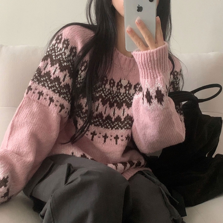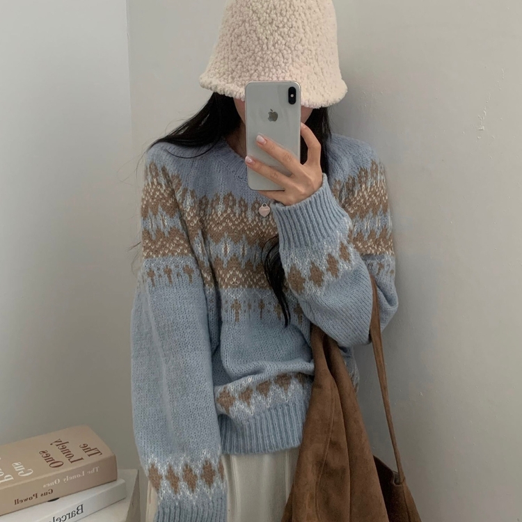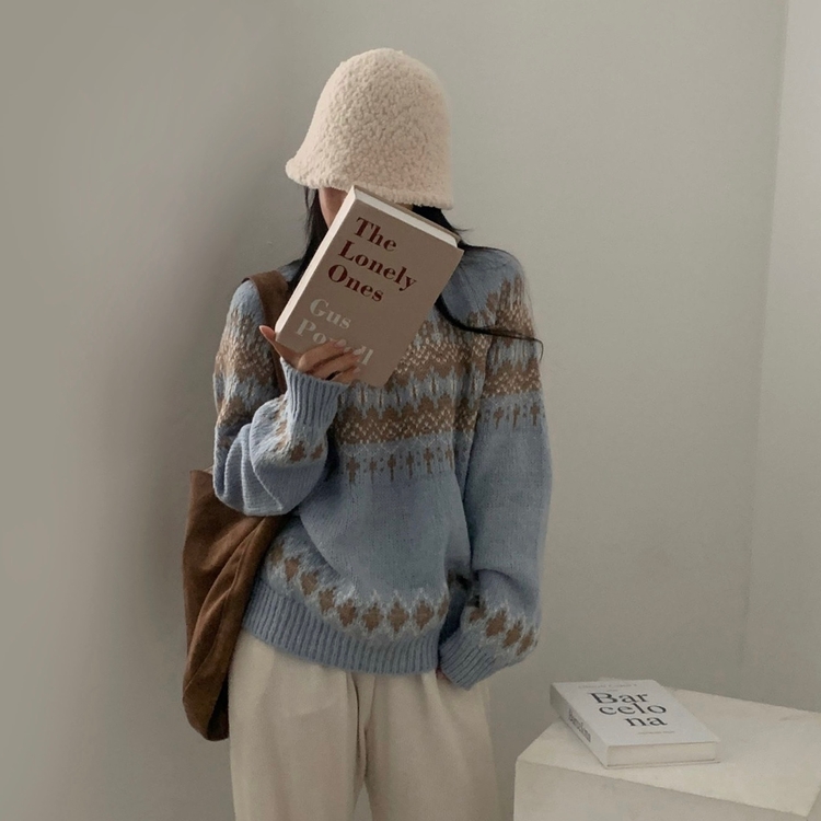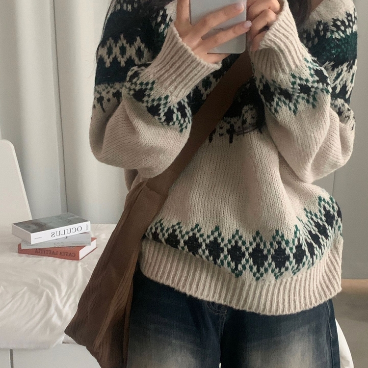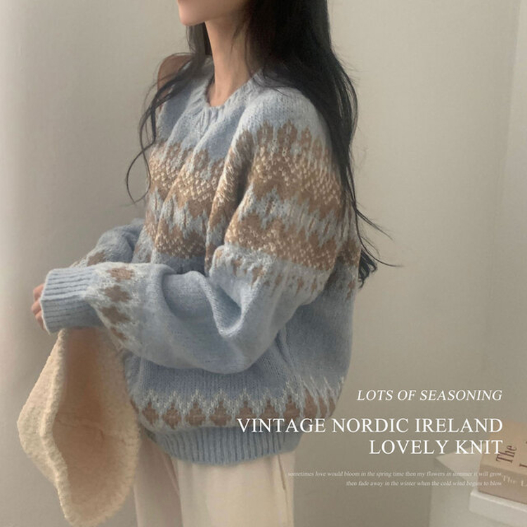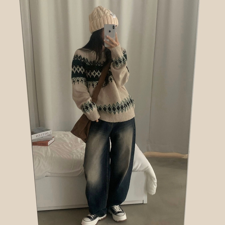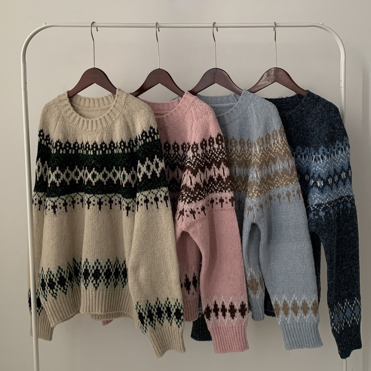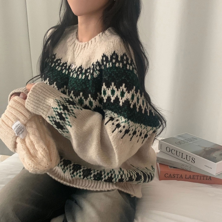 SNT25976 뉴트 노르딕 아가일 눈꽃 라운드 니트 4color