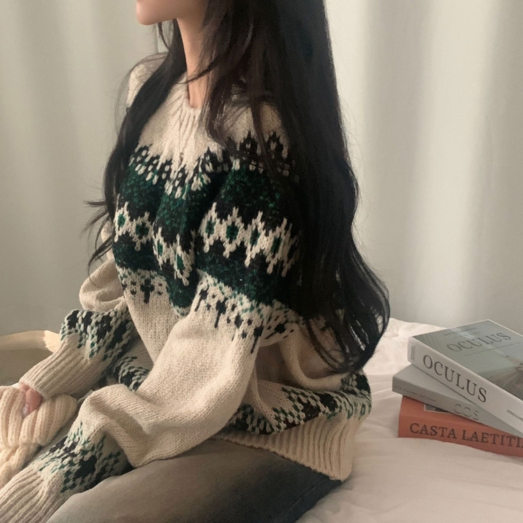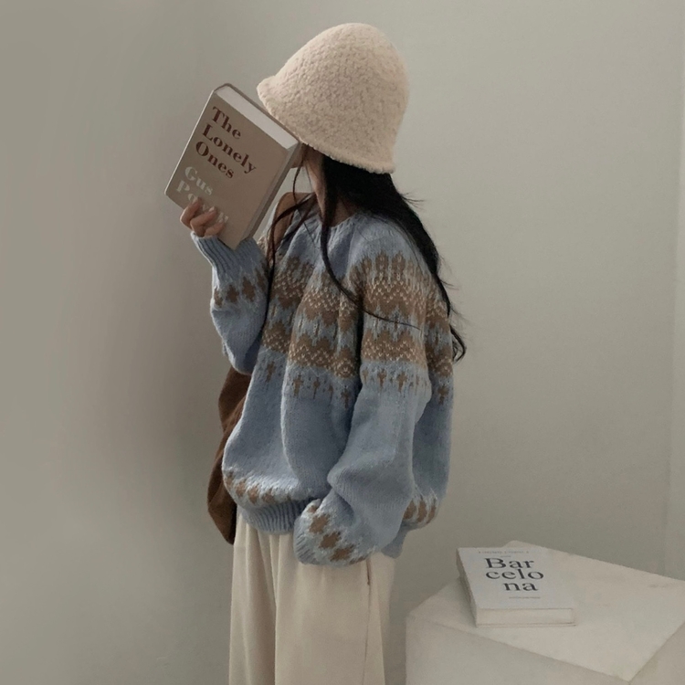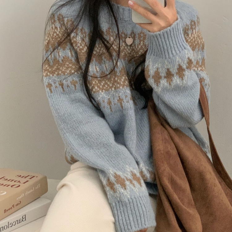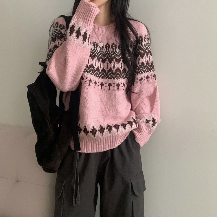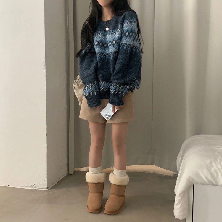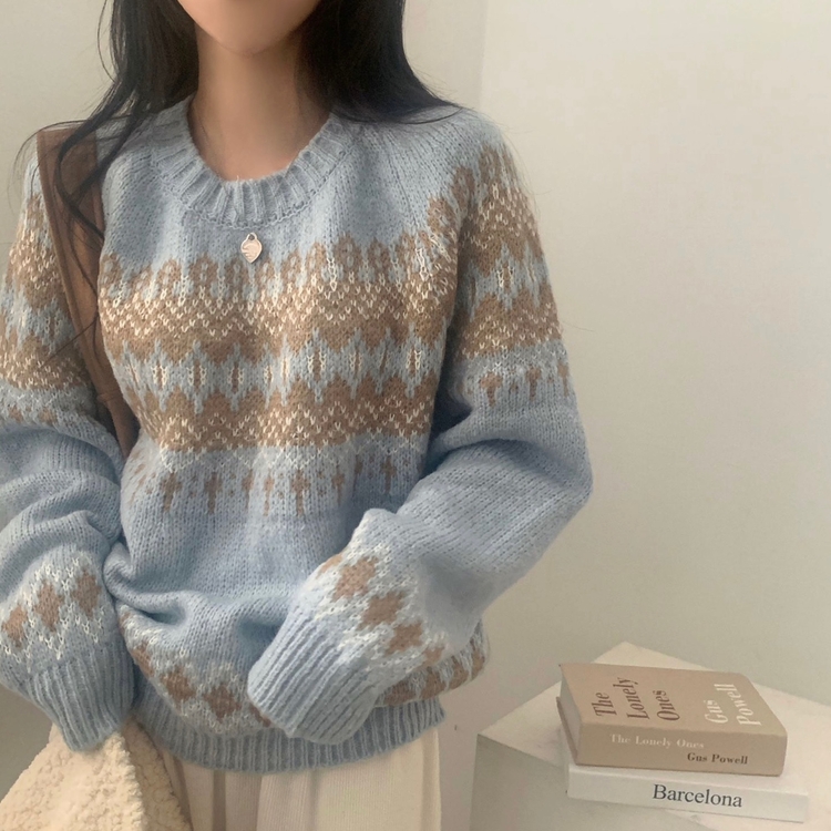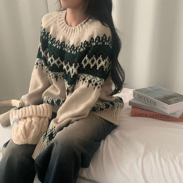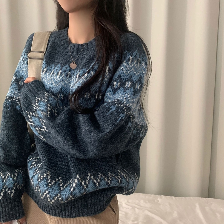 SNT25976 뉴트 노르딕 아가일 눈꽃 라운드 니트 4color