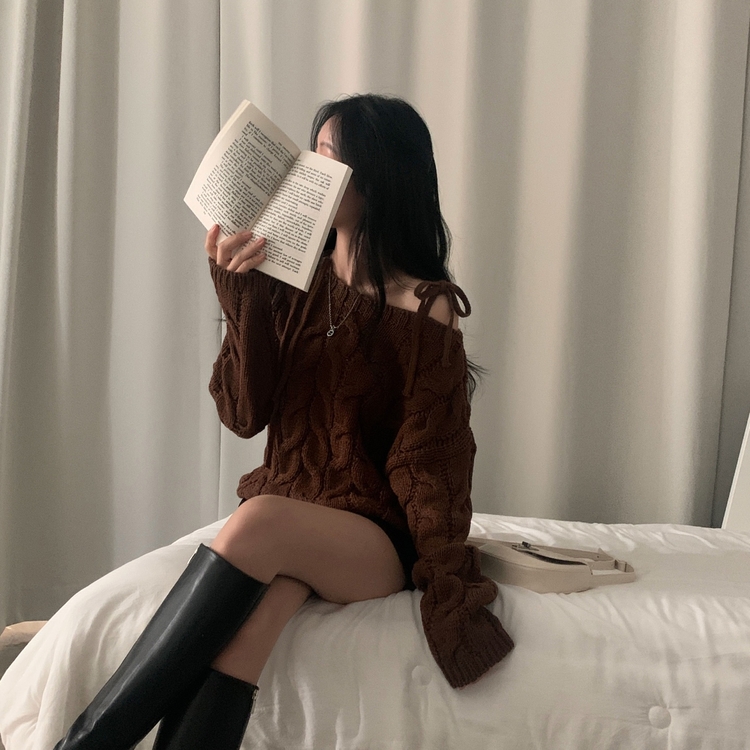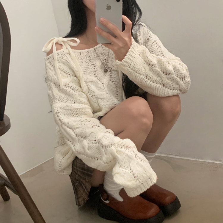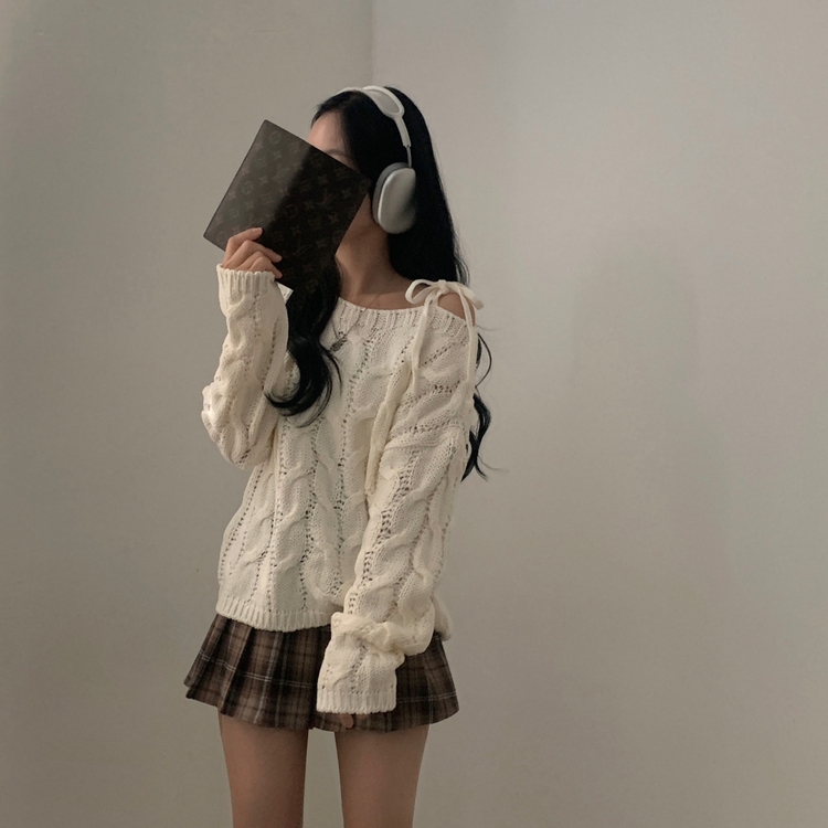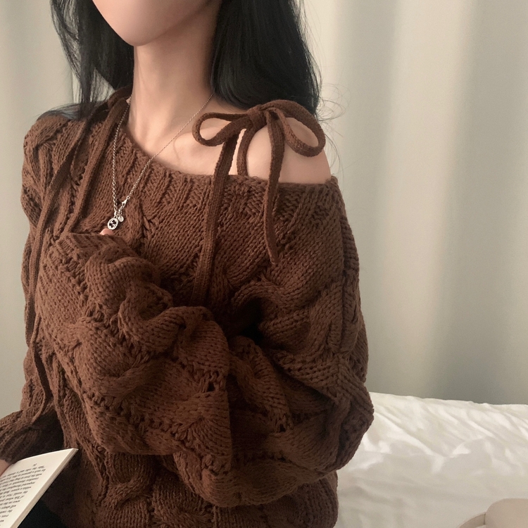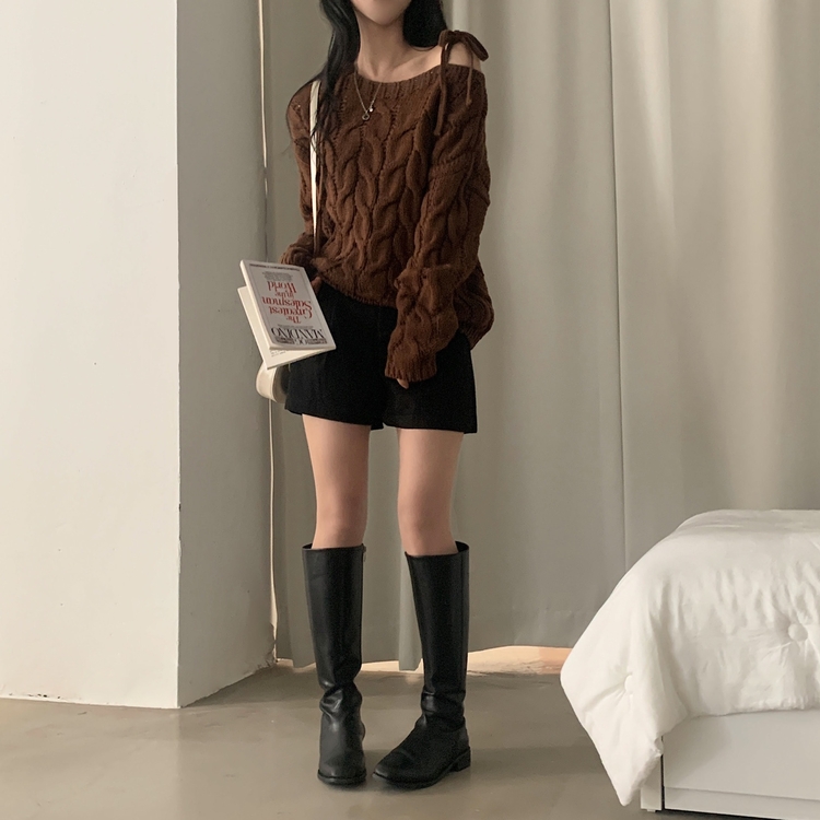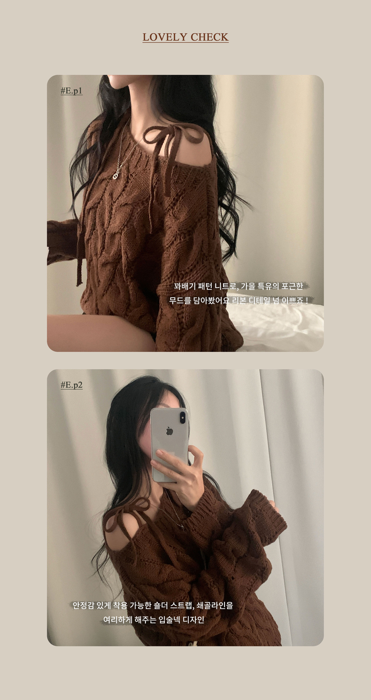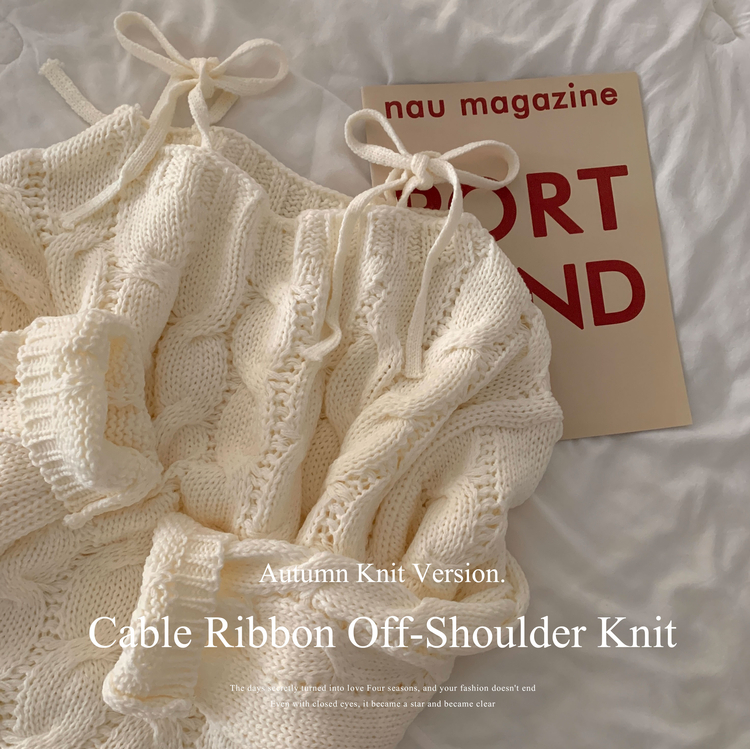 SNT25998 가을의 이분의 일 꽈배기 리본 트임 니트 오프숄더 4color
