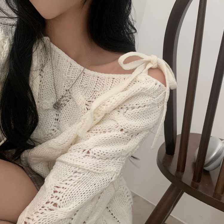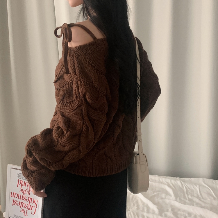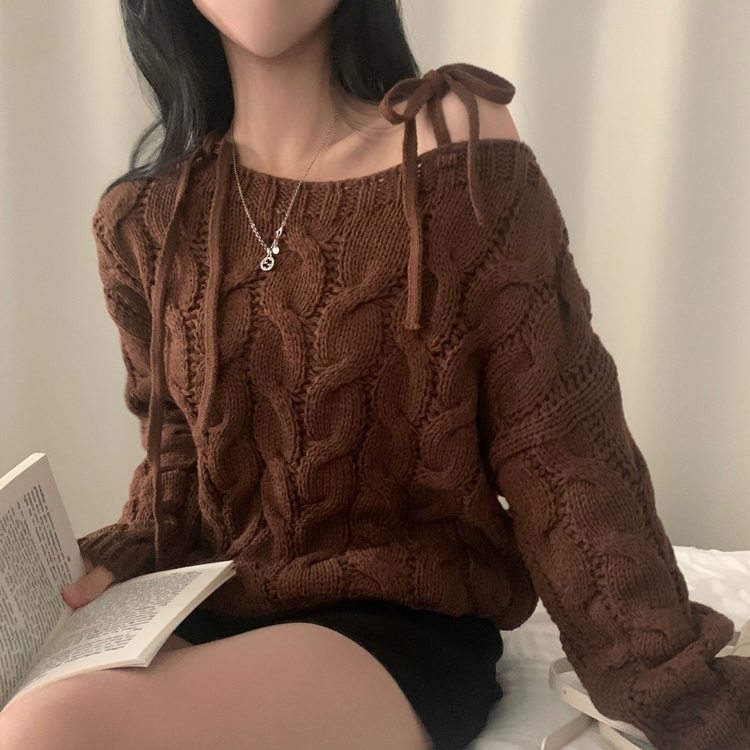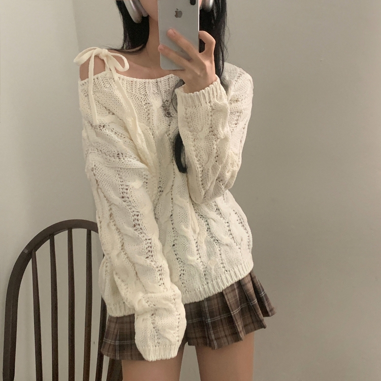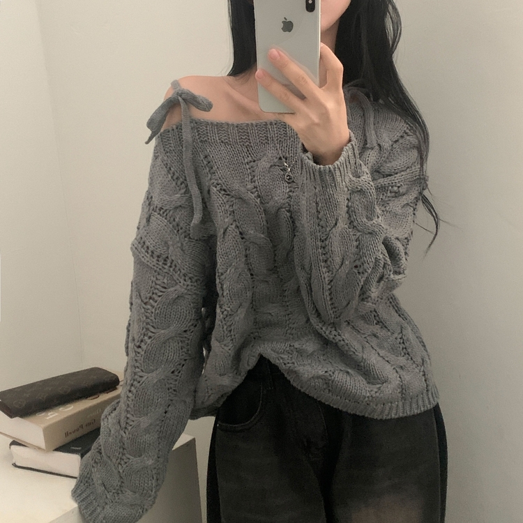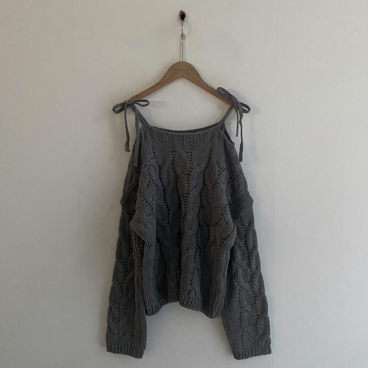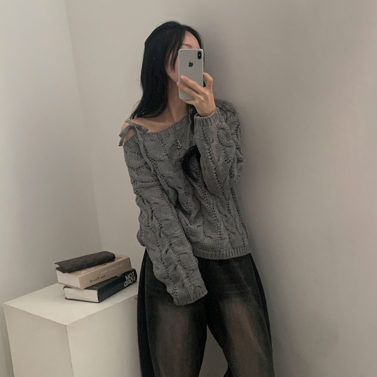 SNT25998 가을의 이분의 일 꽈배기 리본 트임 니트 오프숄더 4color