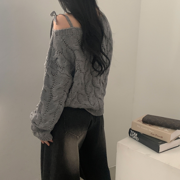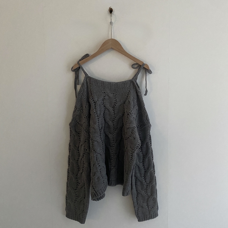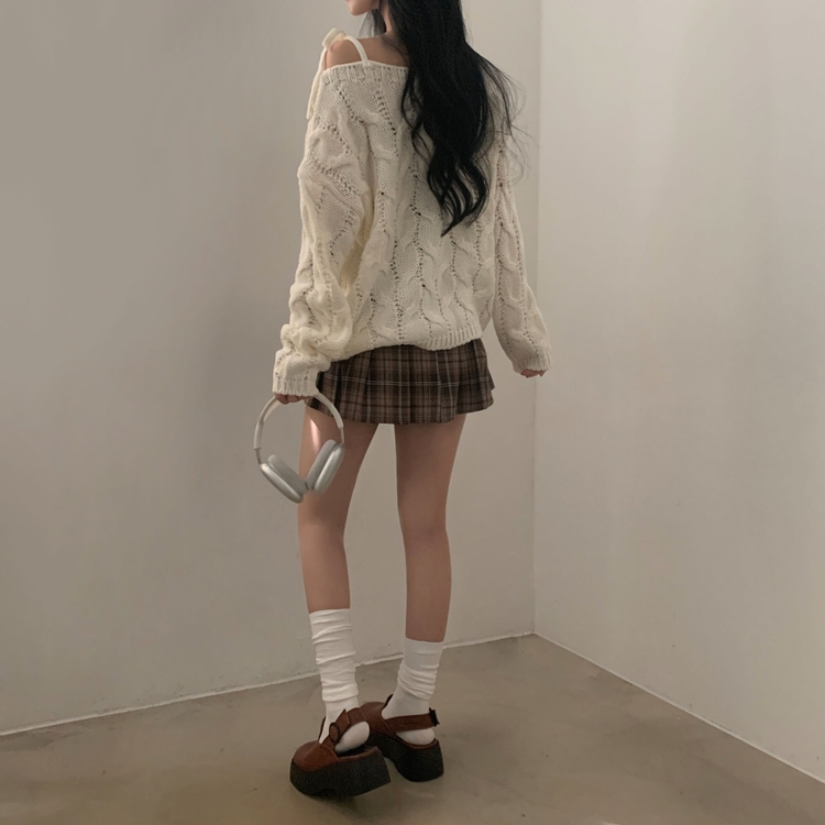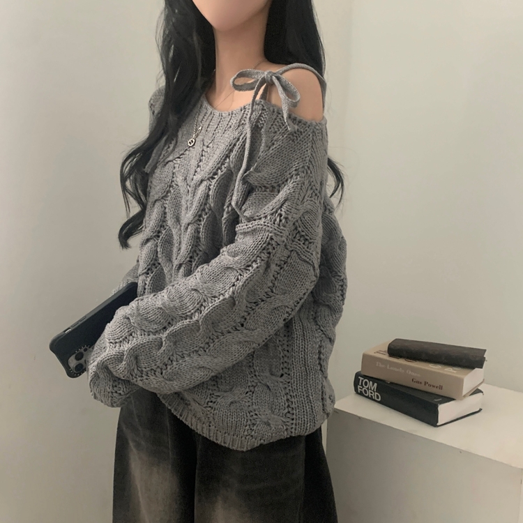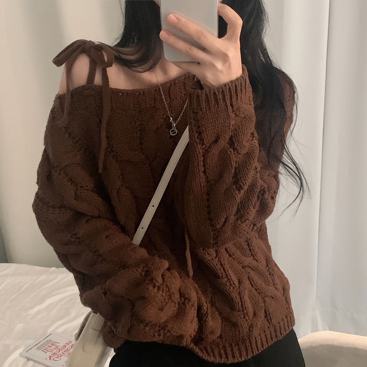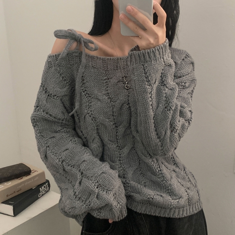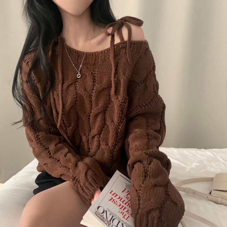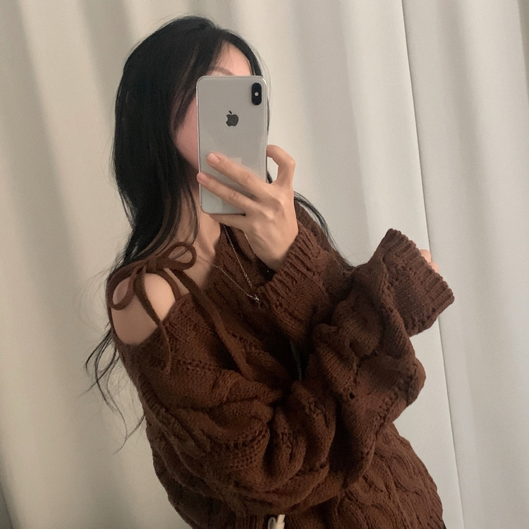SNT25998 가을의 이분의 일 꽈배기 리본 트임 니트 오프숄더 4color