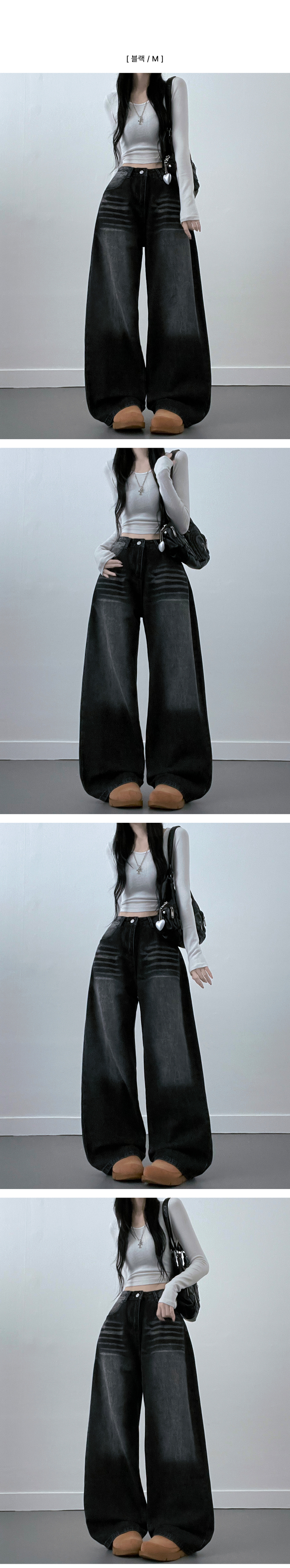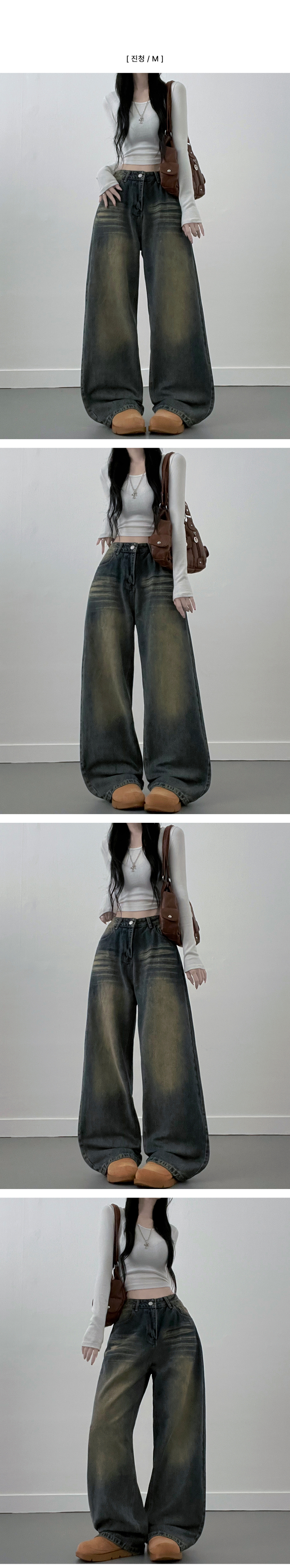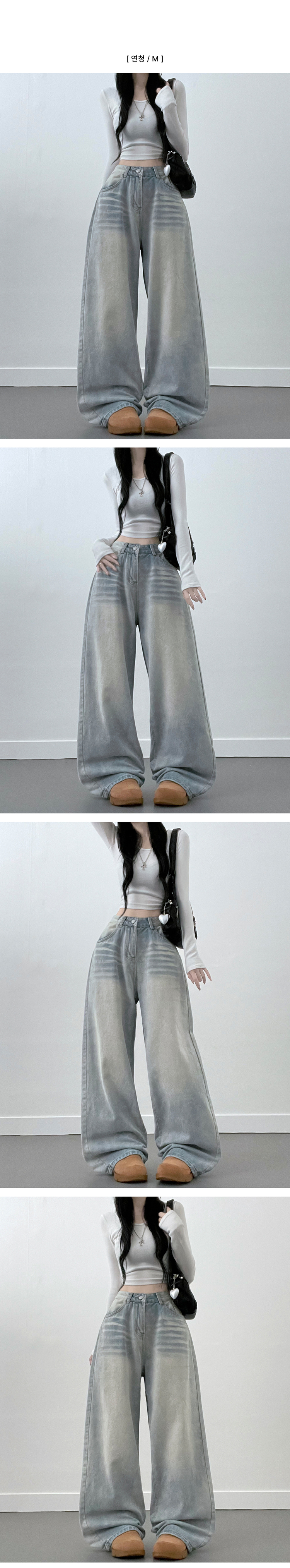 SPS29649 테일캣브러쉬워싱데님와이드롱팬츠