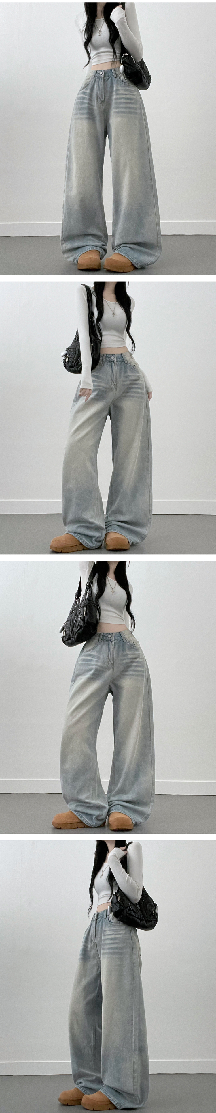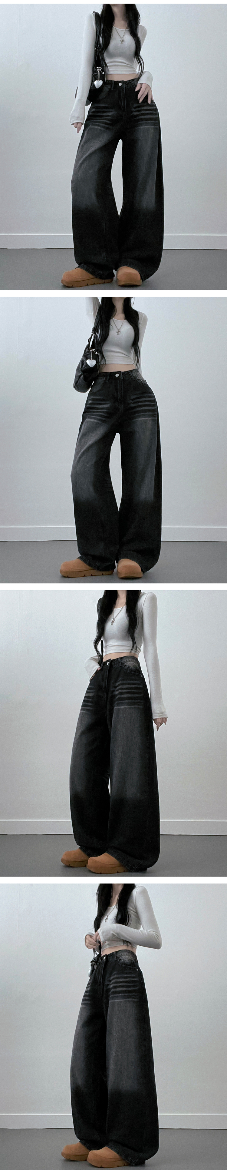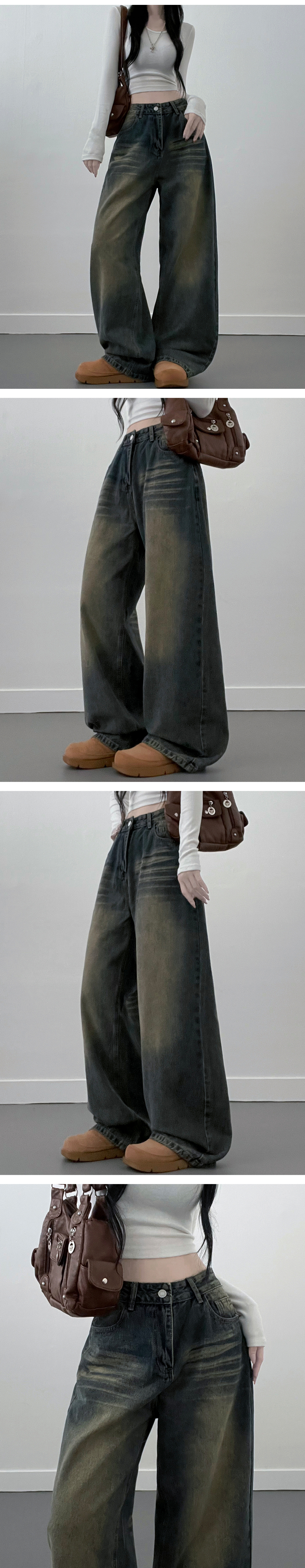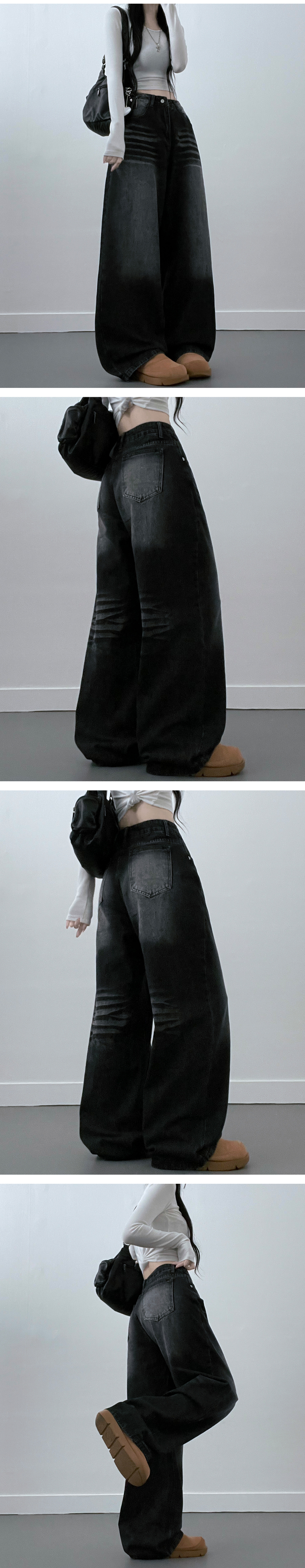 SPS29649 테일캣브러쉬워싱데님와이드롱팬츠