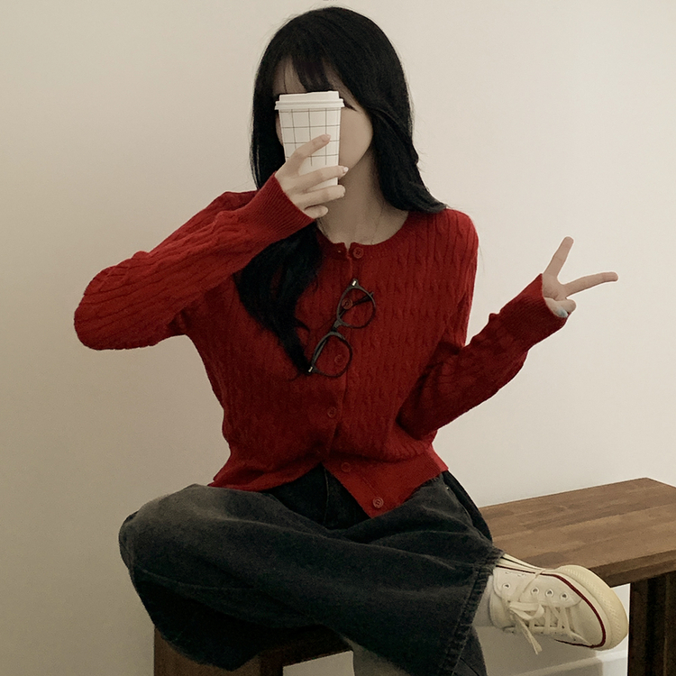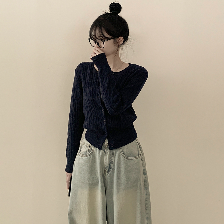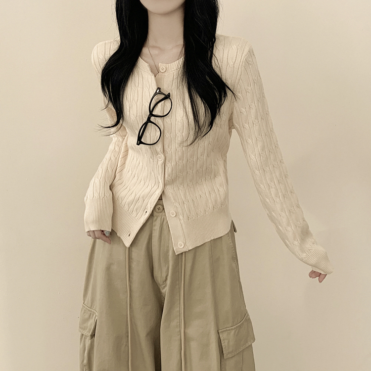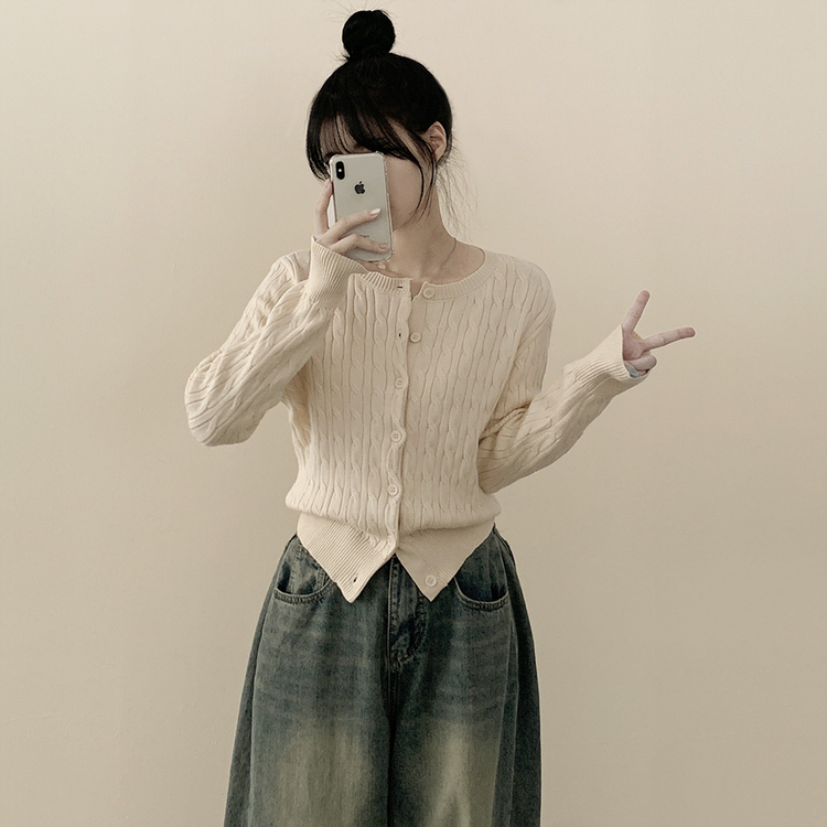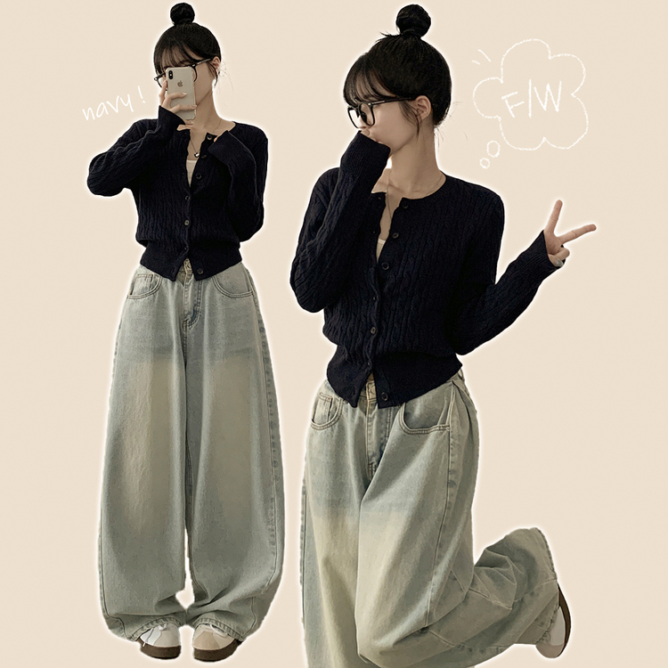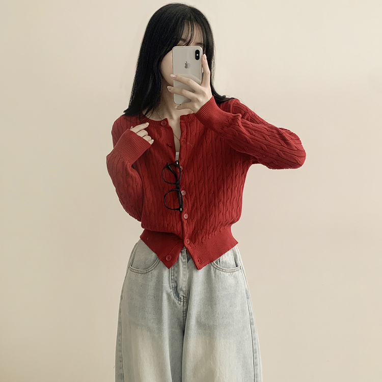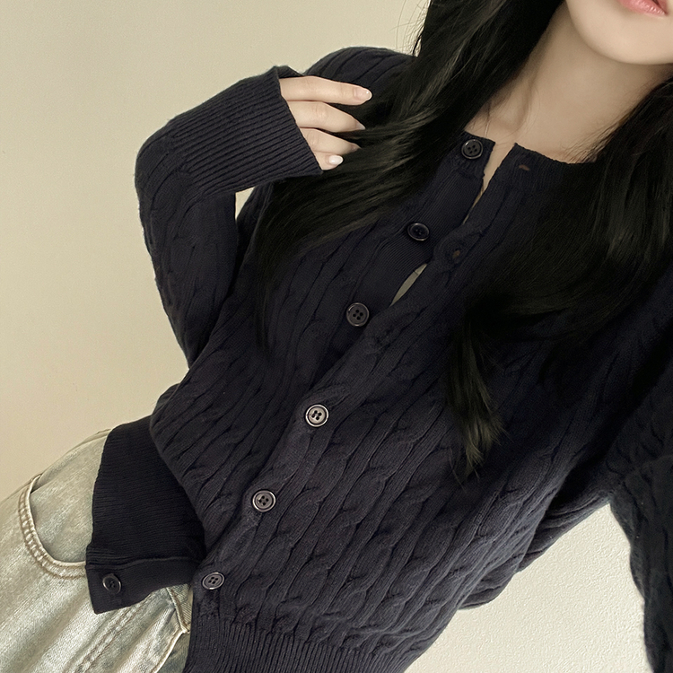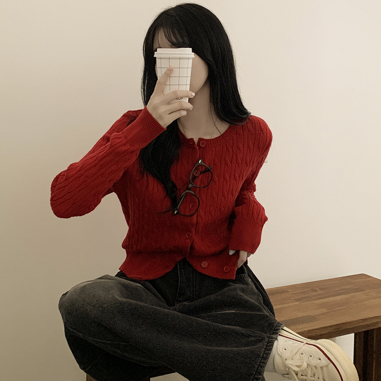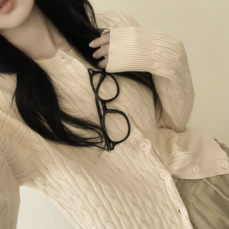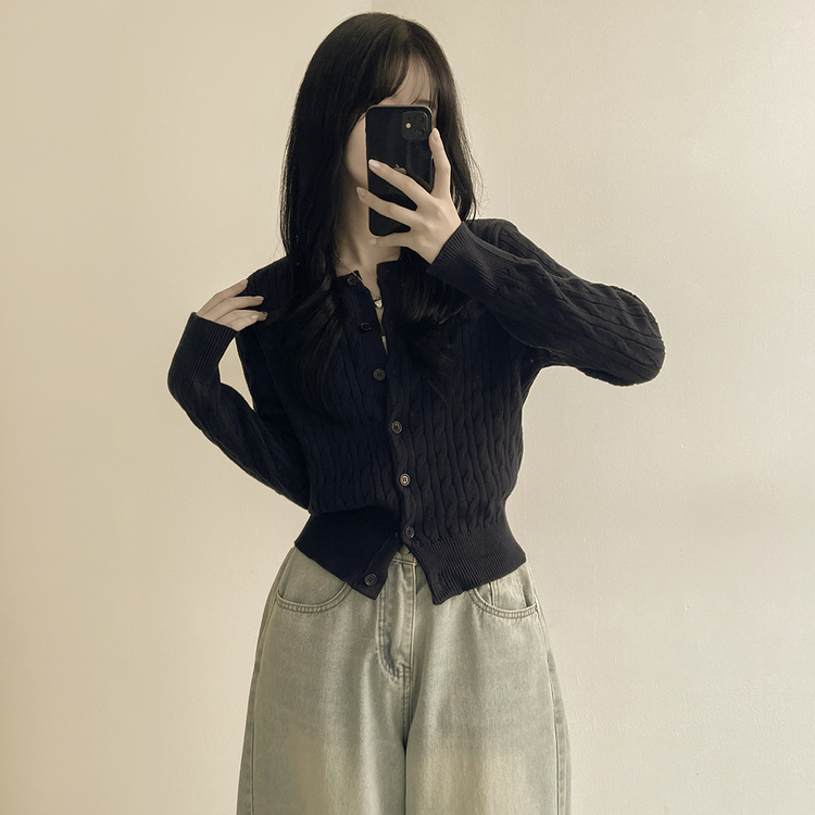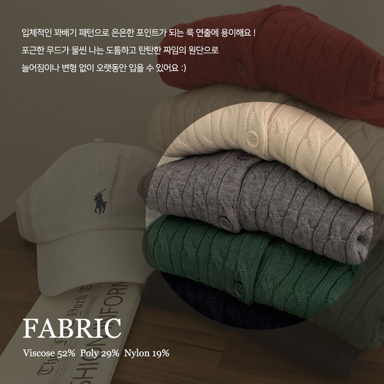 SGD23579 꽈배기 라운드 케이블 기본 세미크롭 긴팔 겨울가디건