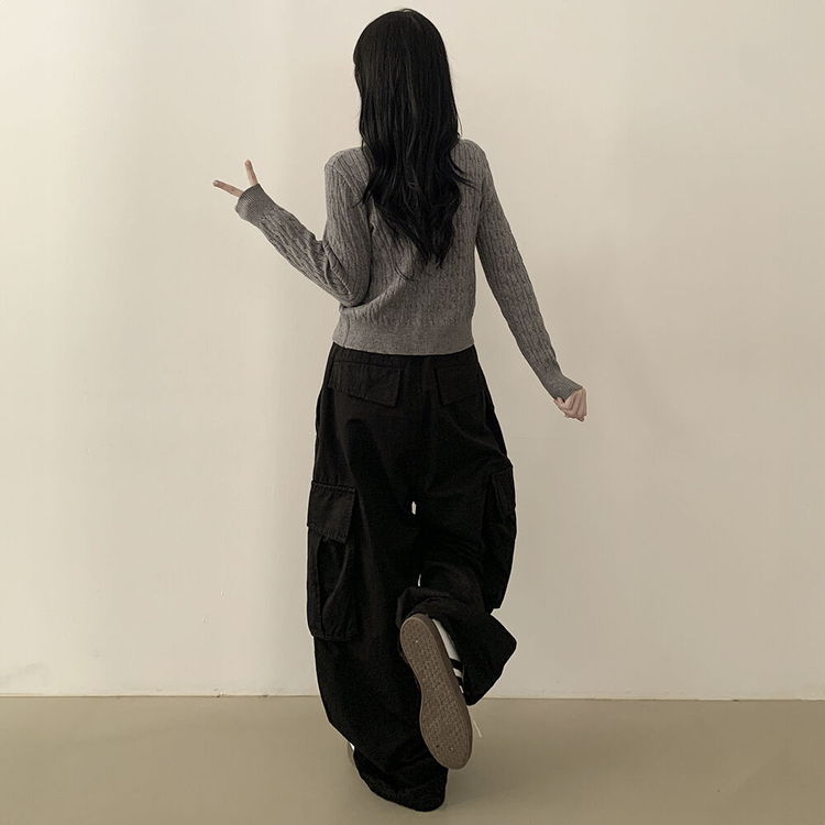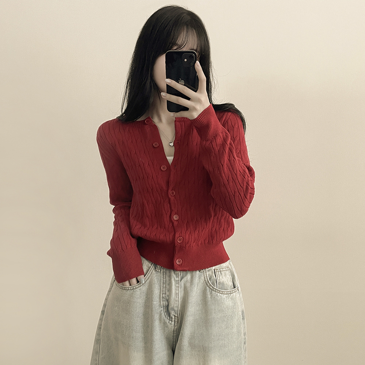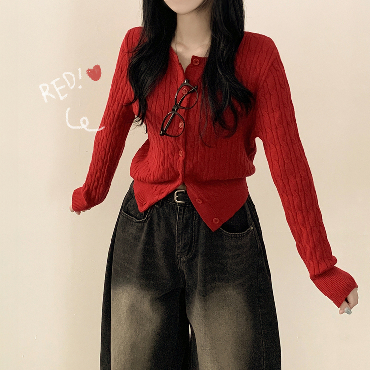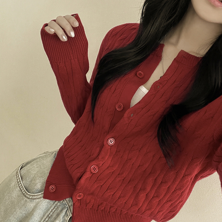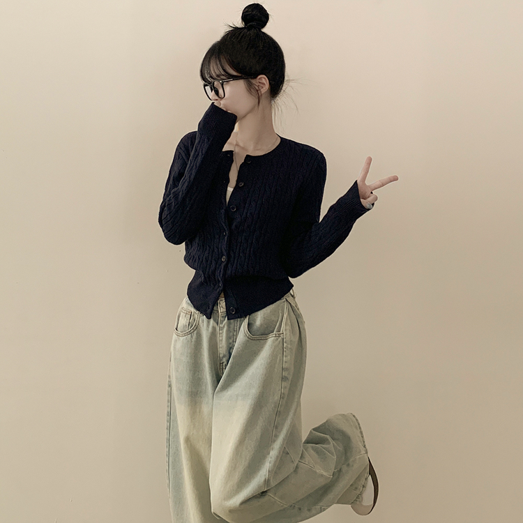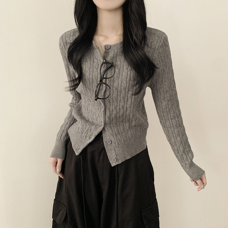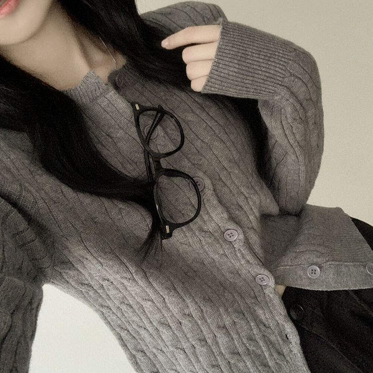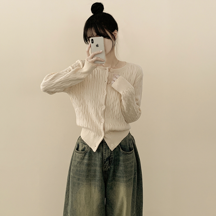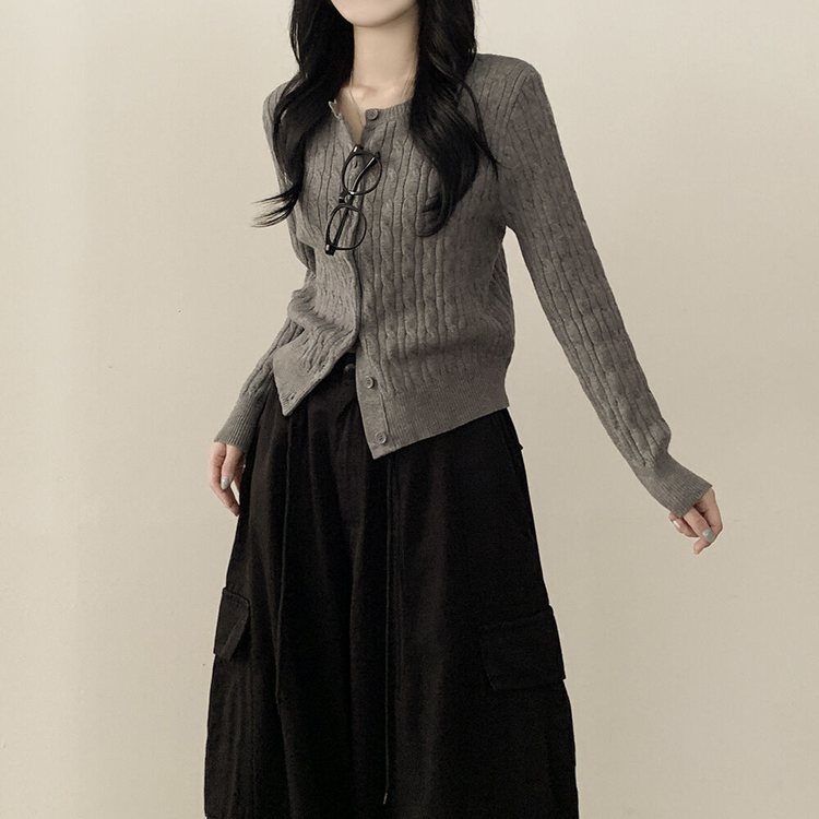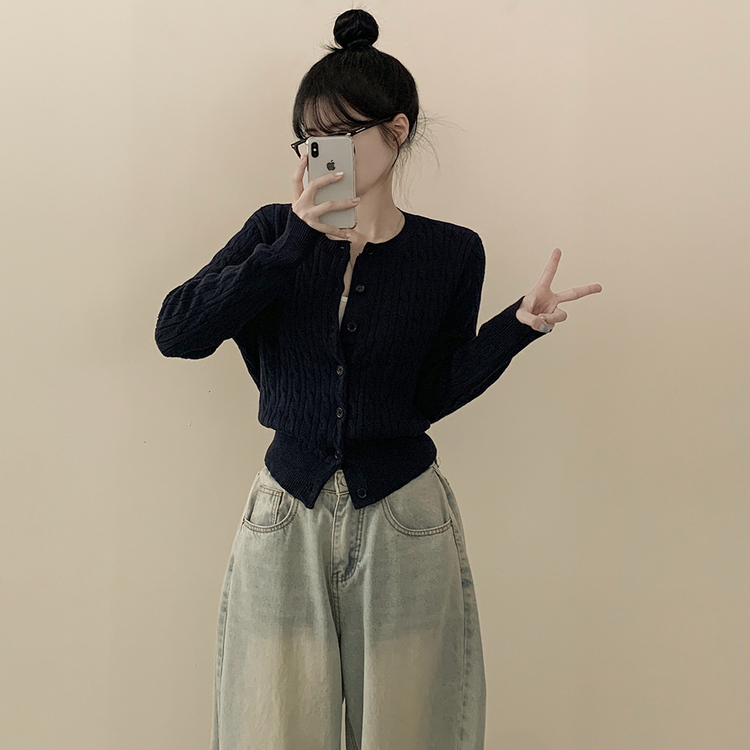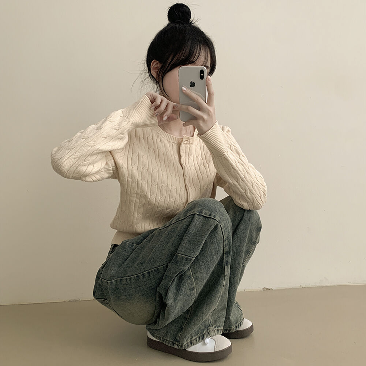 SGD23579 꽈배기 라운드 케이블 기본 세미크롭 긴팔 겨울가디건
