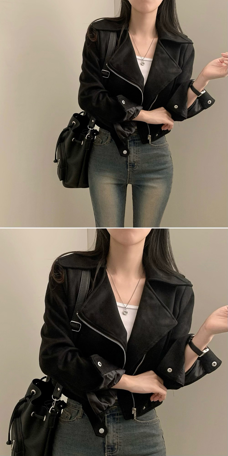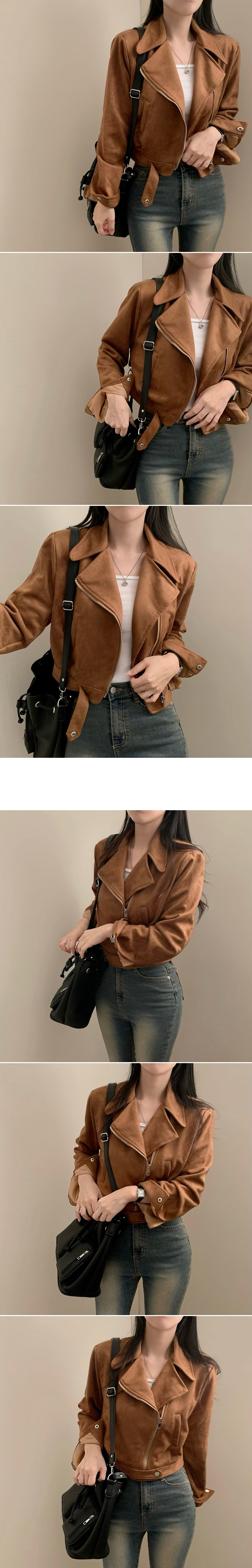 SJK12222 소프트 크롭 스웨이드 라이더 자켓