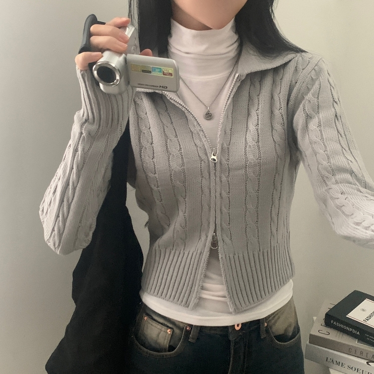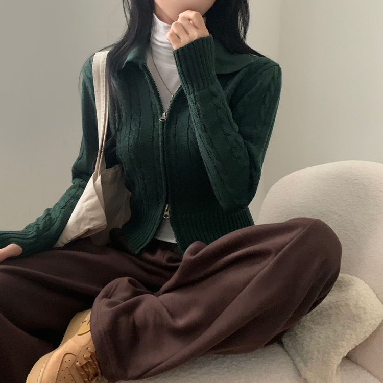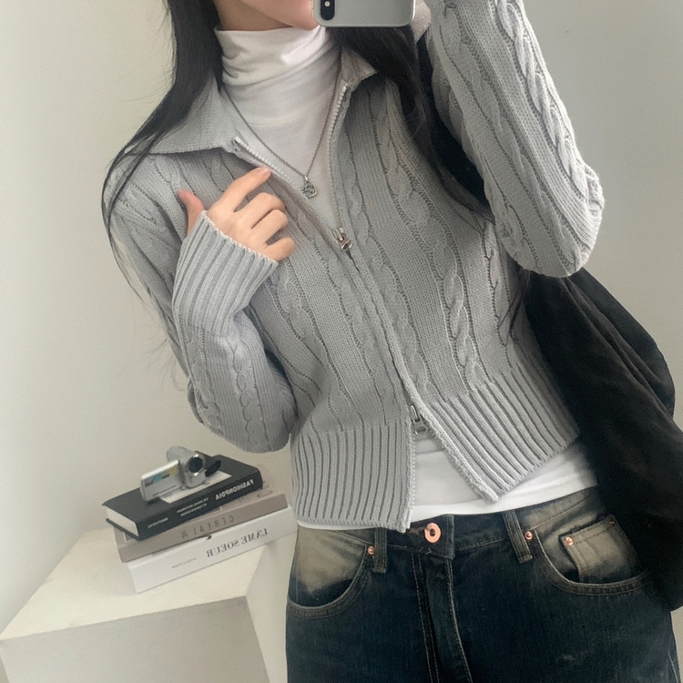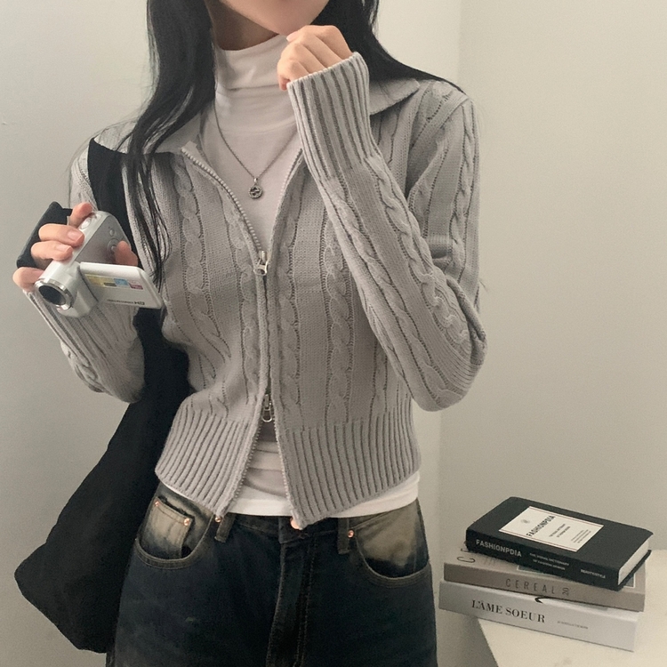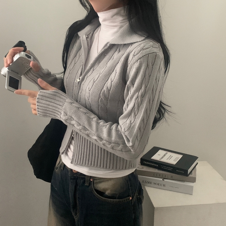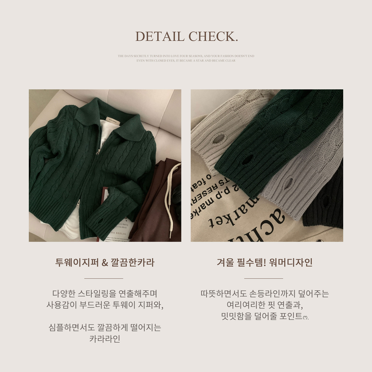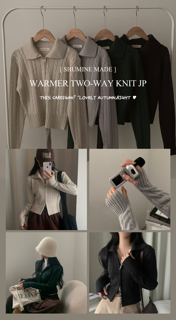 SJP13468 워머 케이블 어텀 투웨이 카라 니트집업점퍼 4color