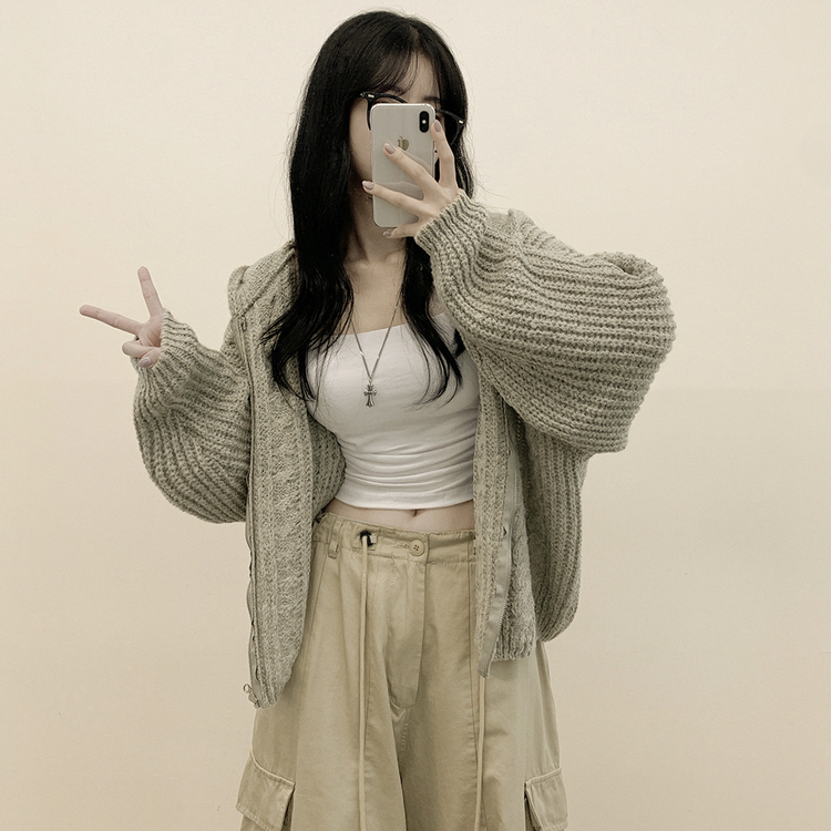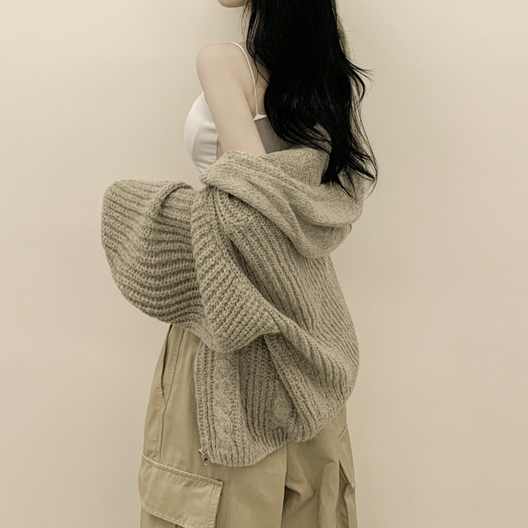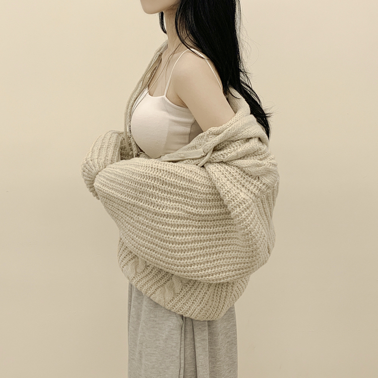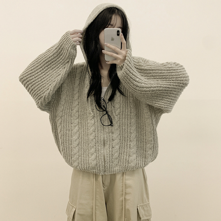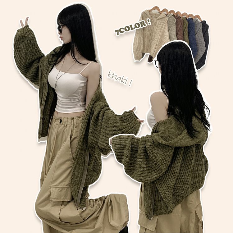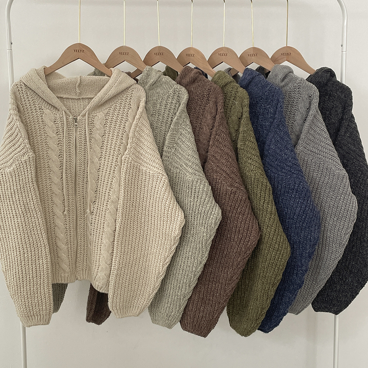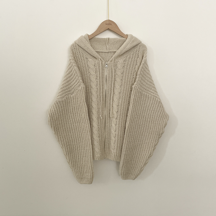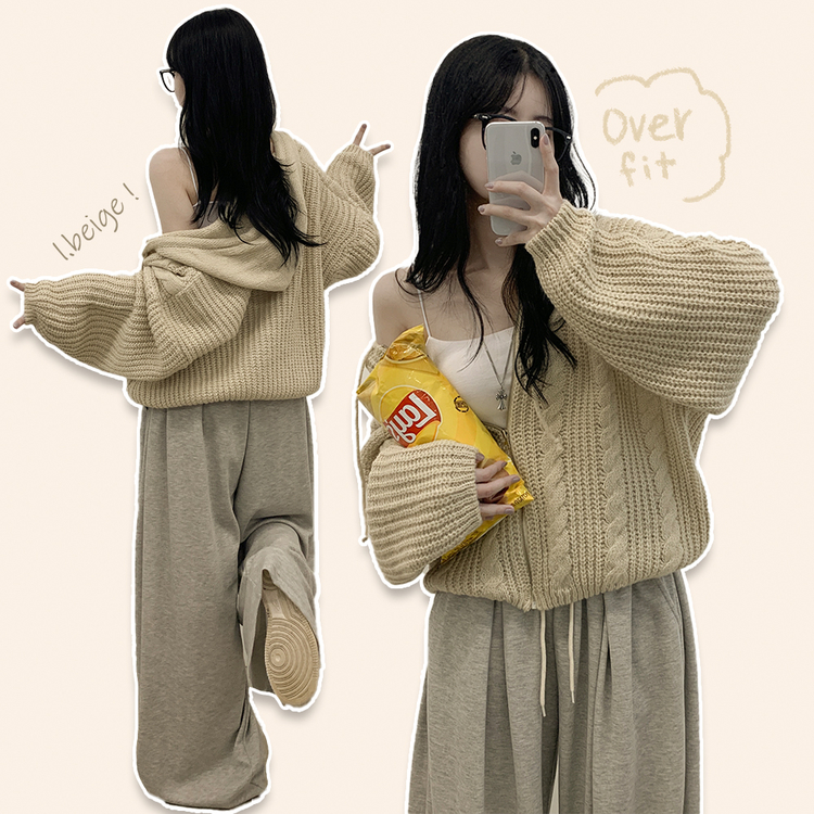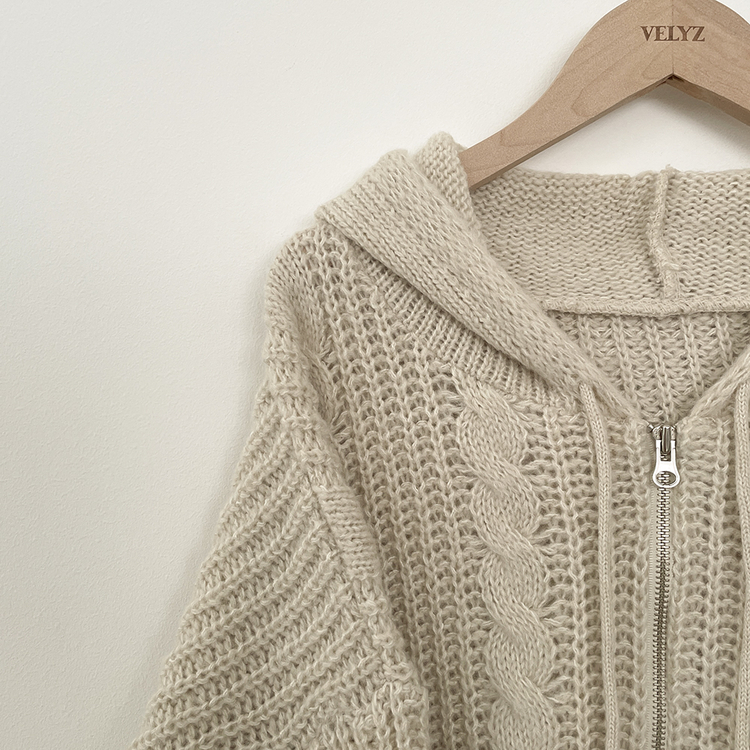 SJP13479 도톰 따뜻 아방핏 꽈배기 케이블 오버핏 니트 벌룬 후드집업 겨울가디건