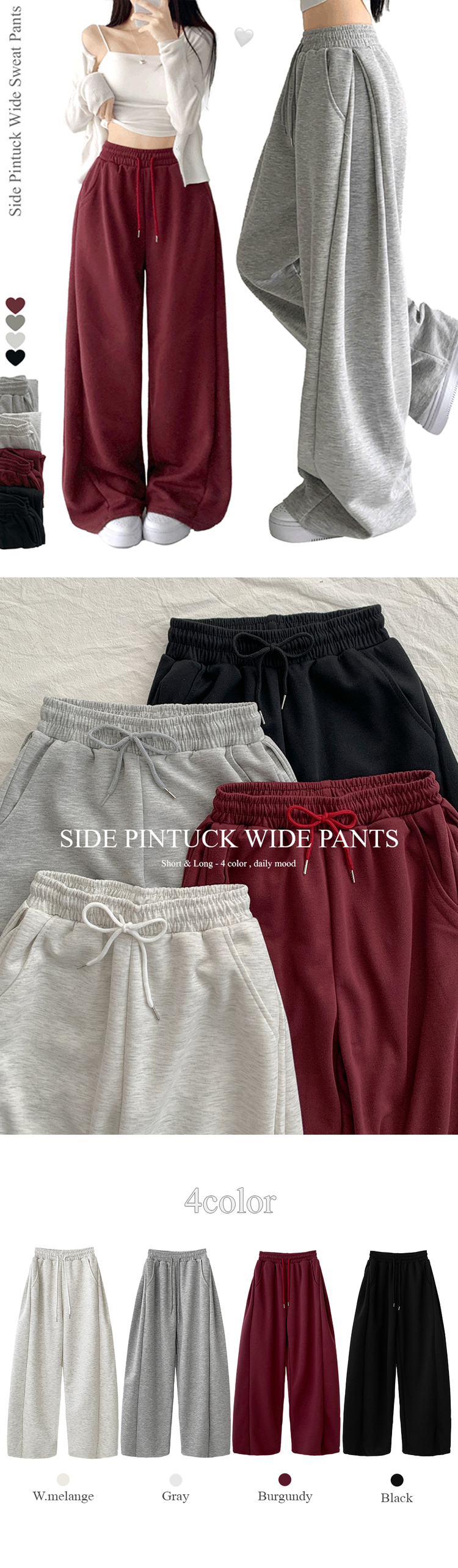 STR4180 쏘야 밴딩 사이드 핀턱 롱와이드 팬츠 코튼 트레이닝 바지 기장선택 키작녀 키큰녀 남녀공용 빅사이즈 사계절팬츠