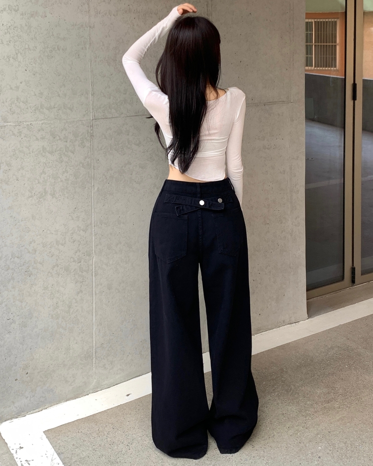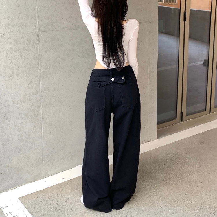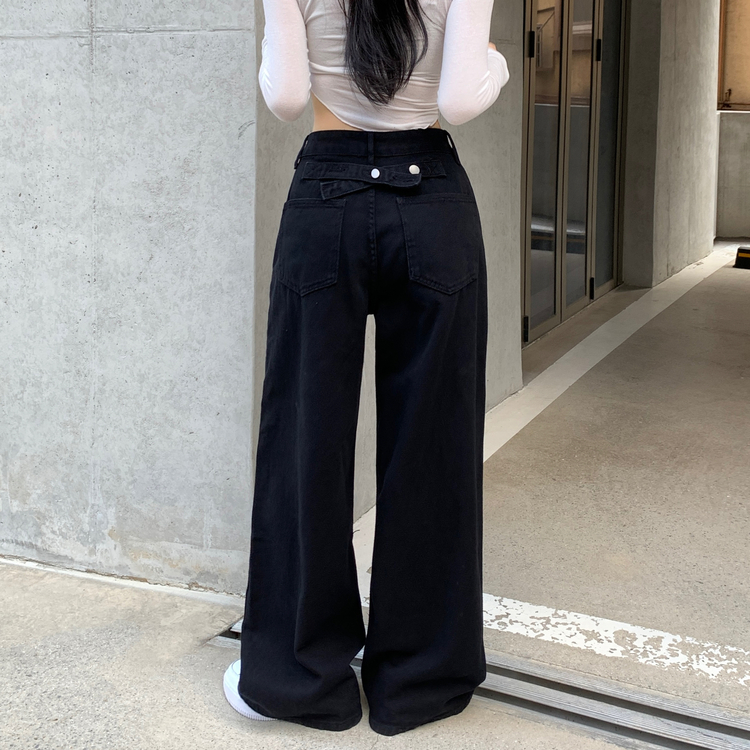 SPS30016 프레즐 비조 백포인트 허리 3버튼 비죠 하이웨스트 로우 코튼 면 와이드 팬츠 바지 사계절템 데일리룩 남녀공용 유니섹스 블랙 바지 3color