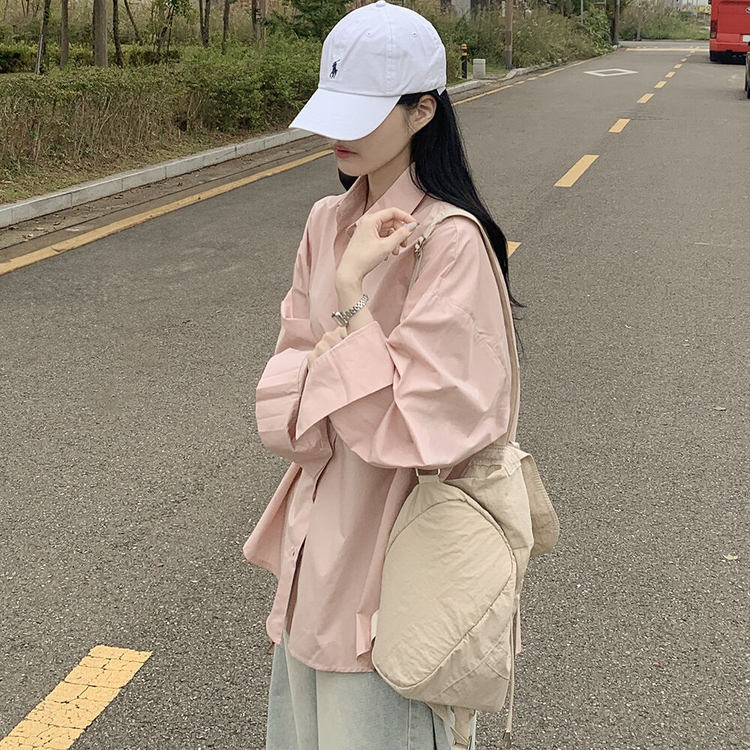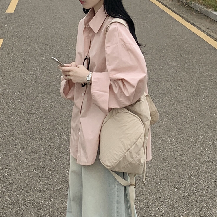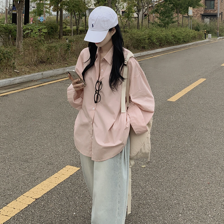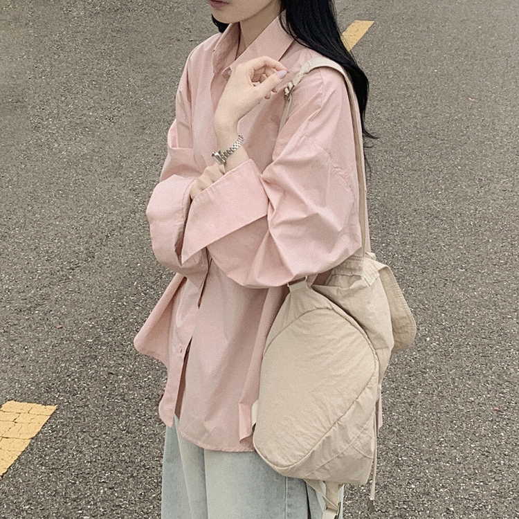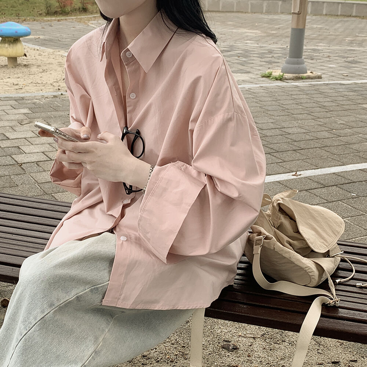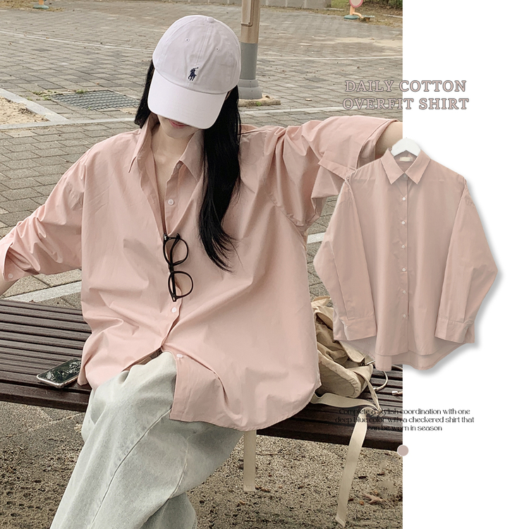 SBS23898 딸기크림 바스락 코튼 베이직 기본 긴팔셔츠 빅사이즈 레이어드템