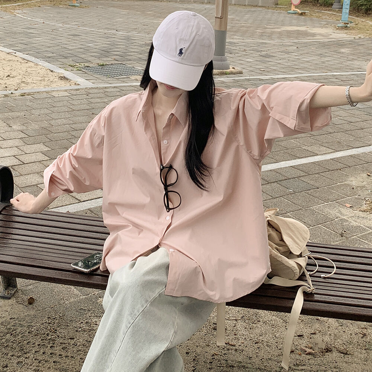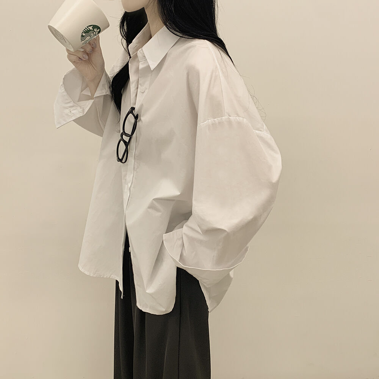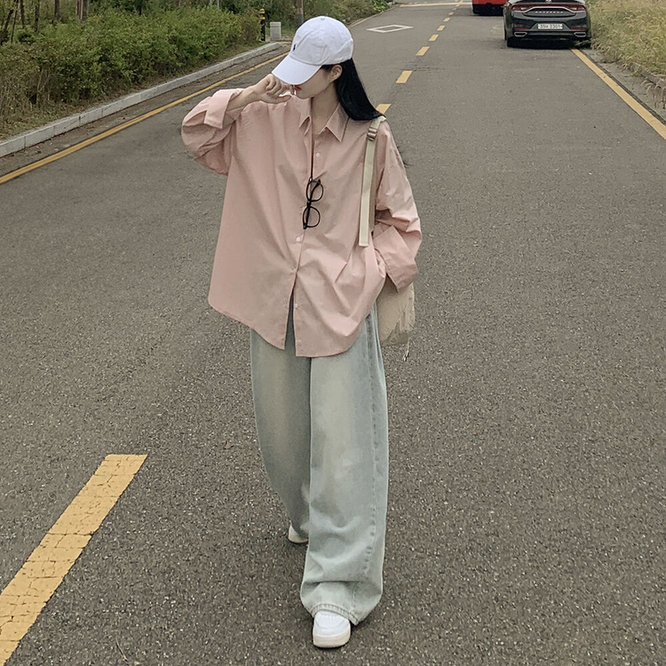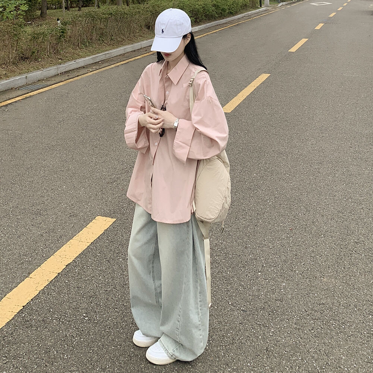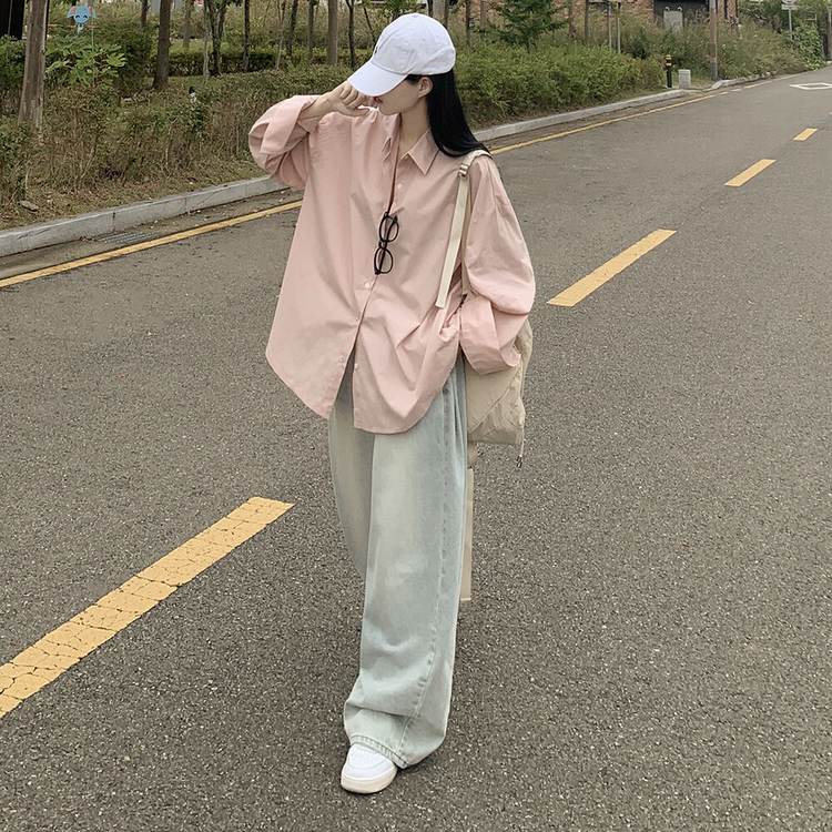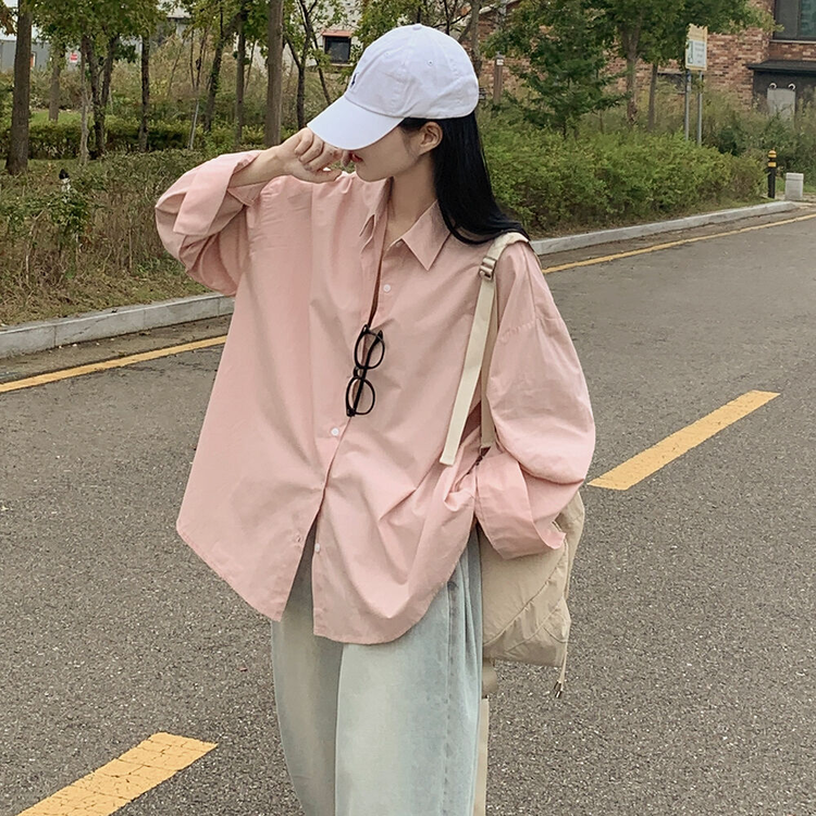 SBS23898 딸기크림 바스락 코튼 베이직 기본 긴팔셔츠 빅사이즈 레이어드템