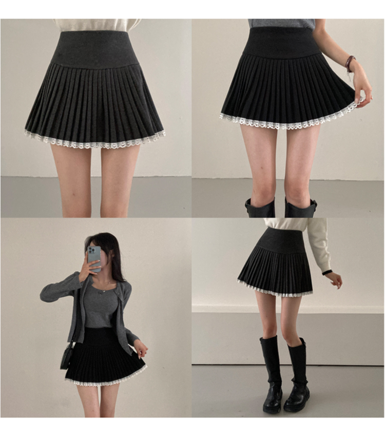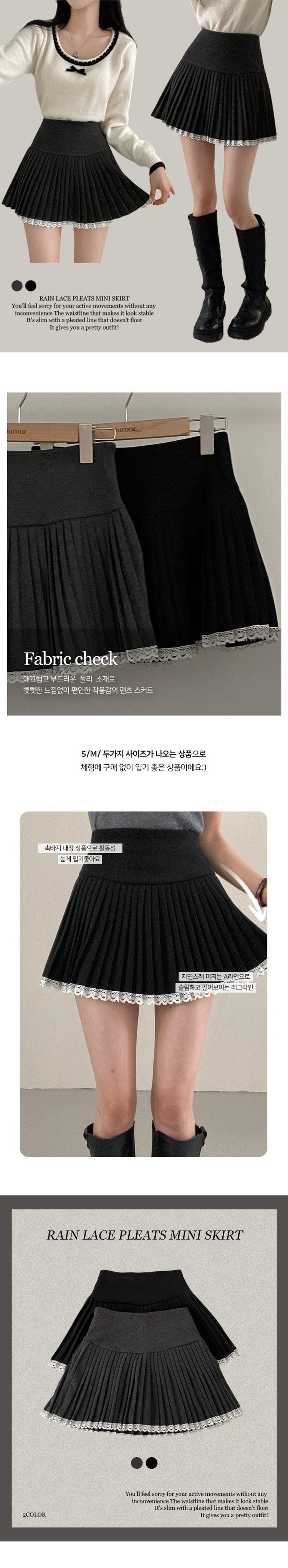 SSK19818 레인 레이스 플리츠 미니 스커트