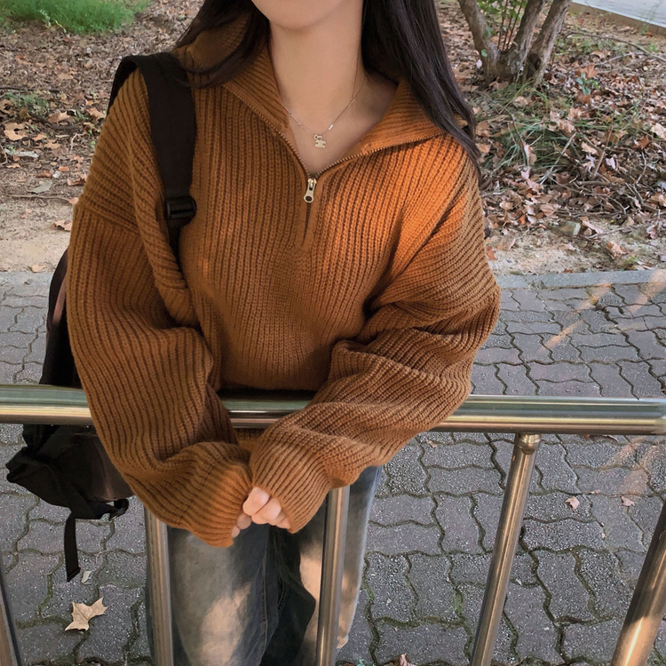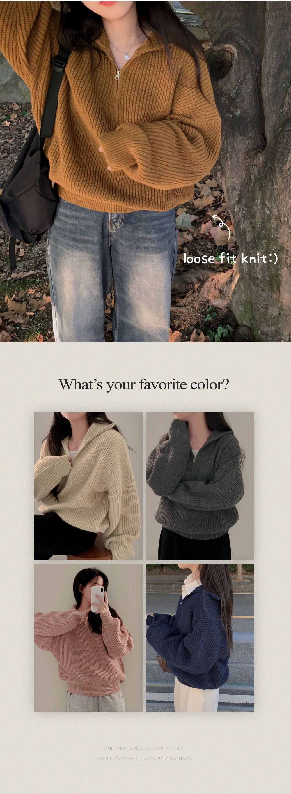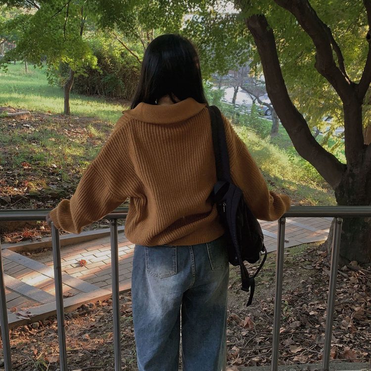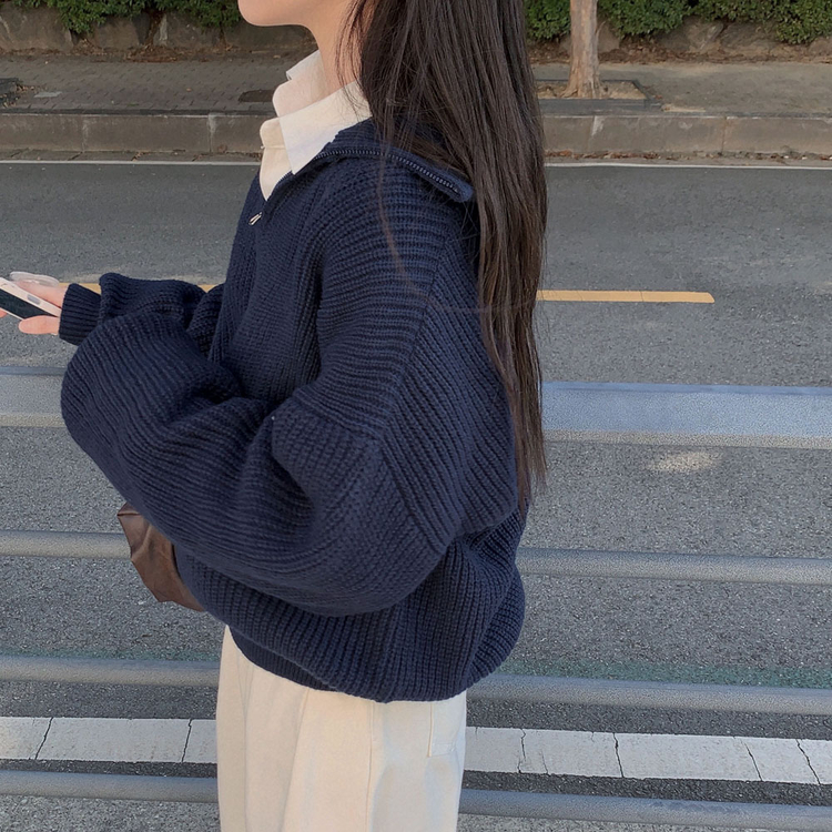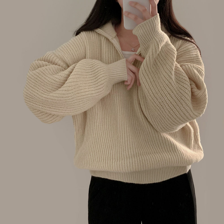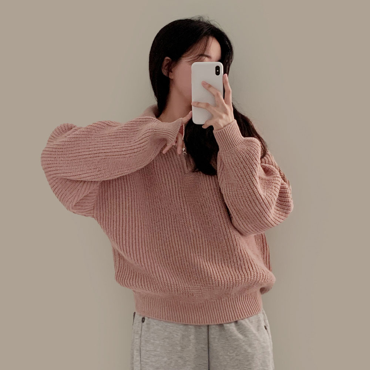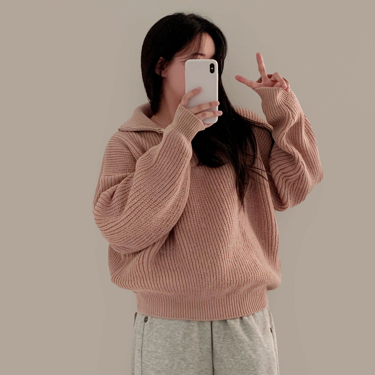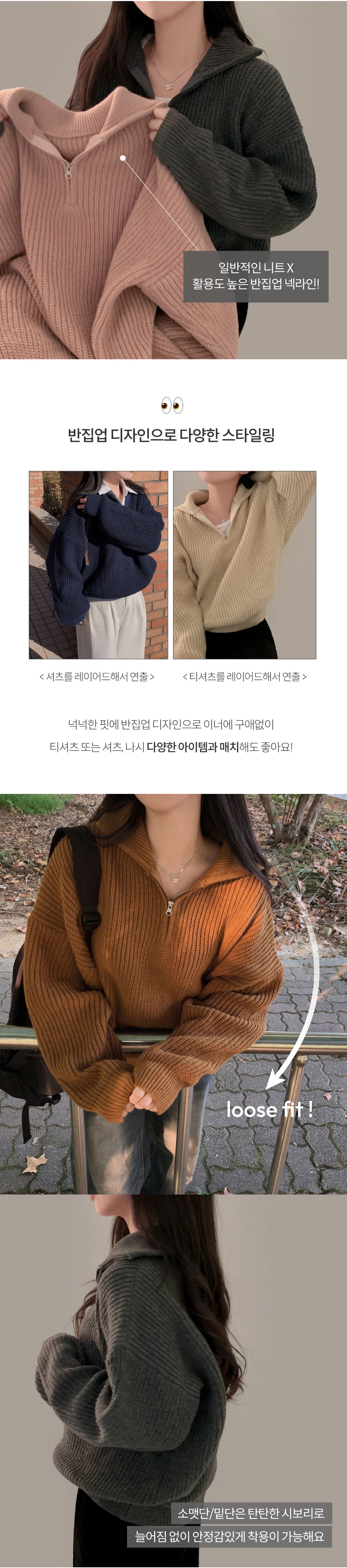 SNT26554 어라운드 하찌반집업 루즈핏 카라 니트 5color