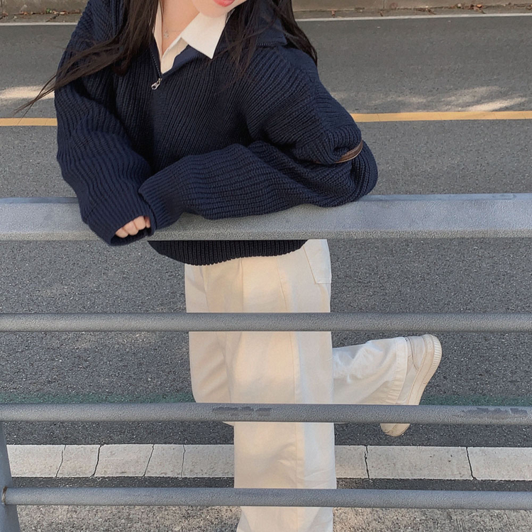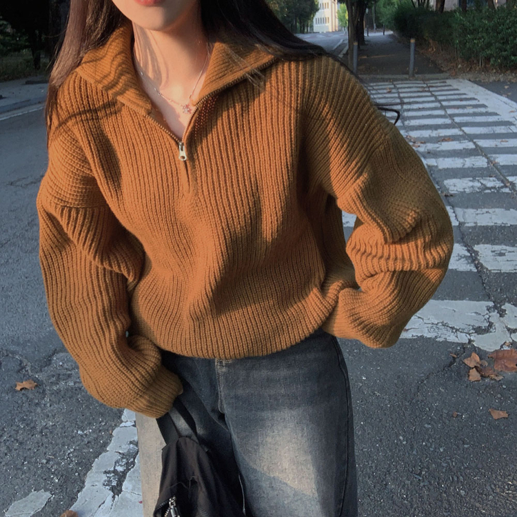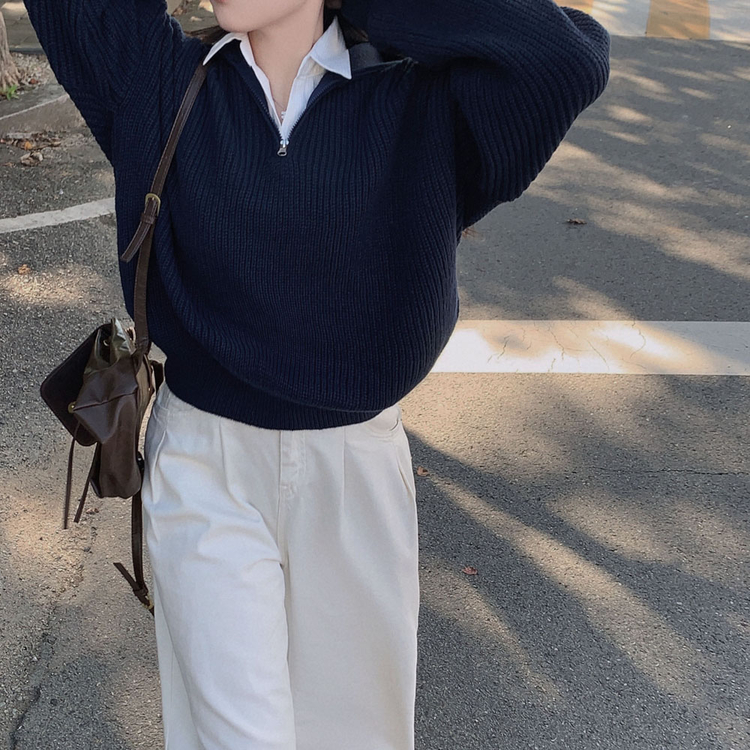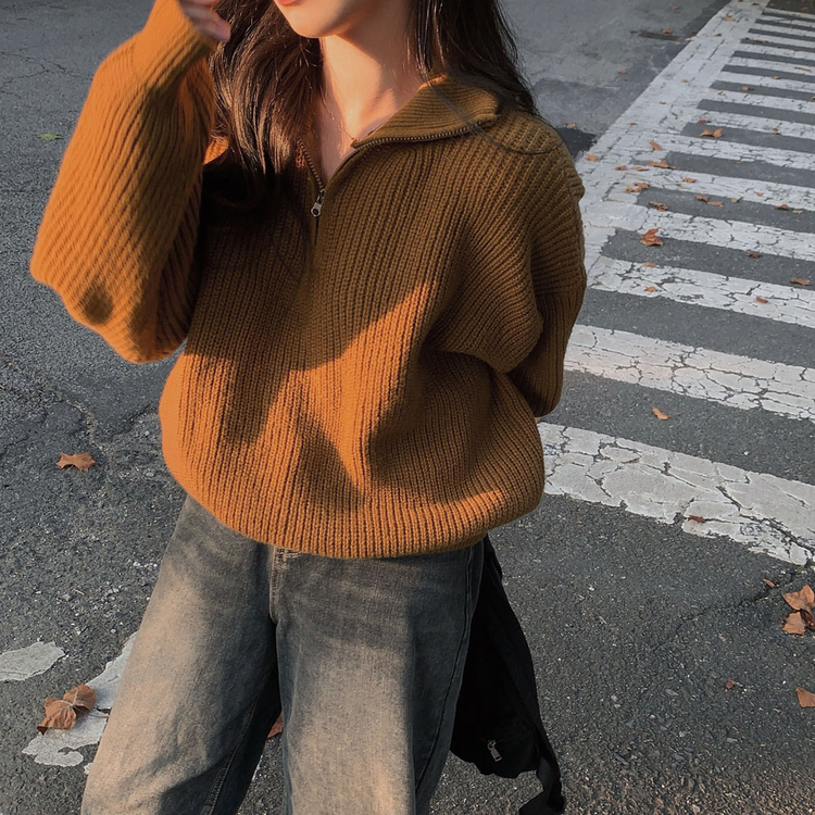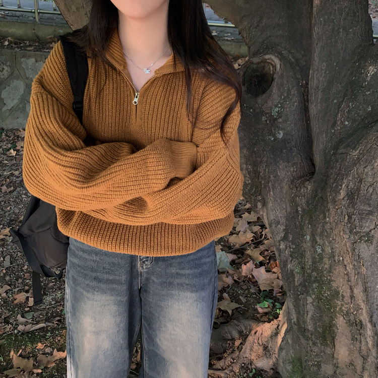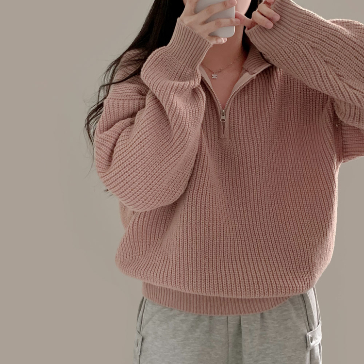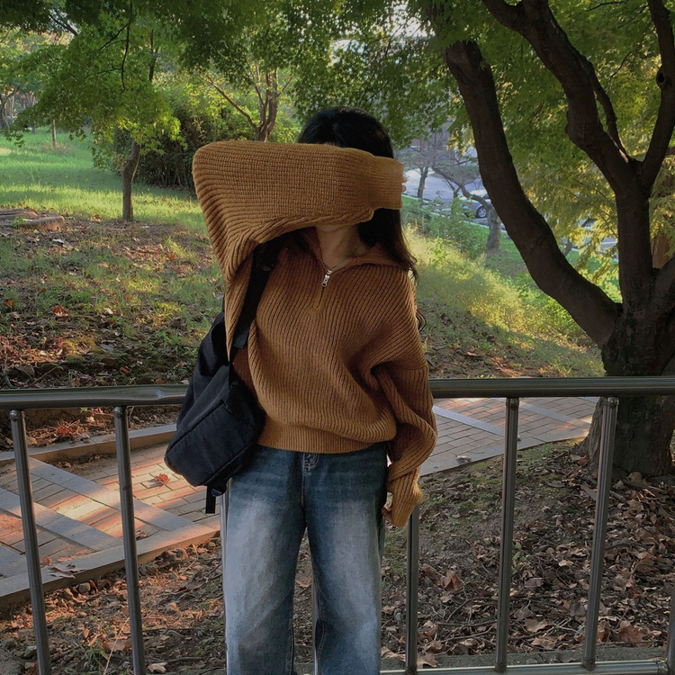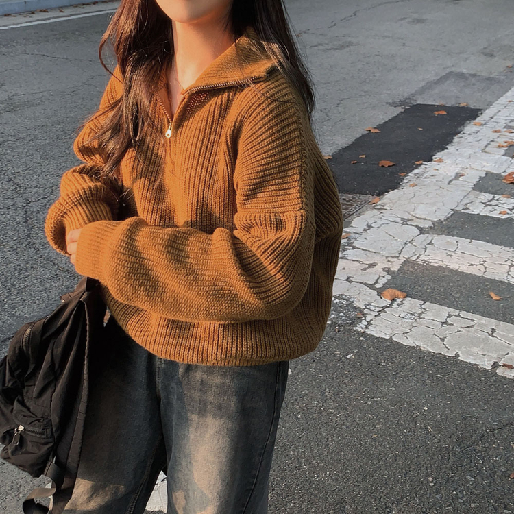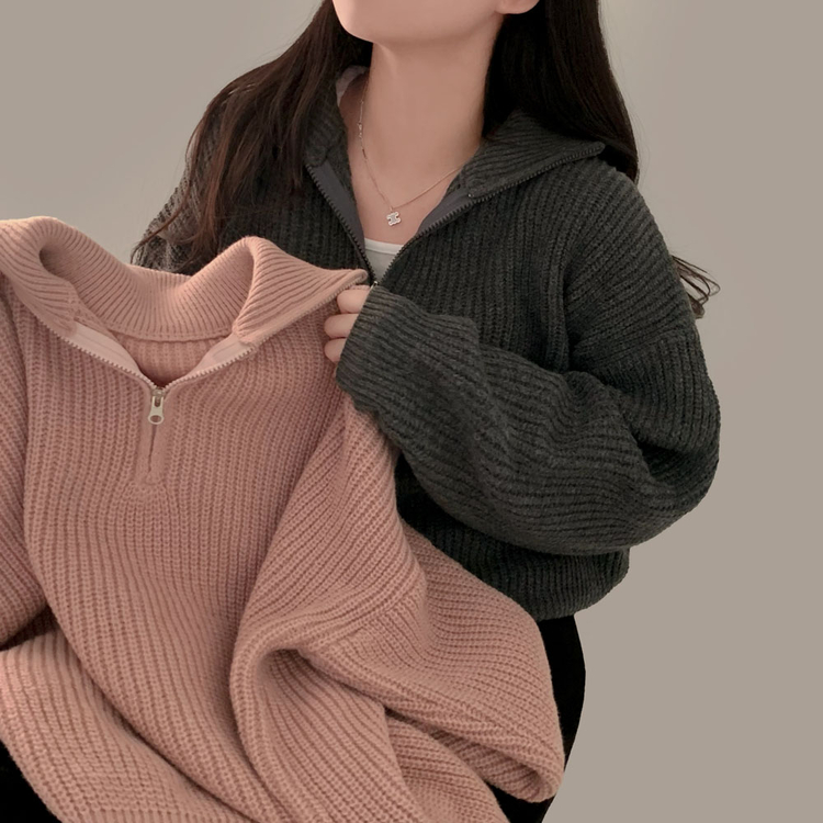 SNT26554 어라운드 하찌반집업 루즈핏 카라 니트 5color