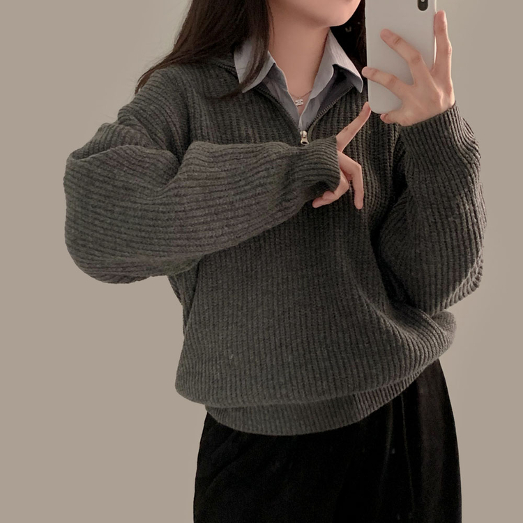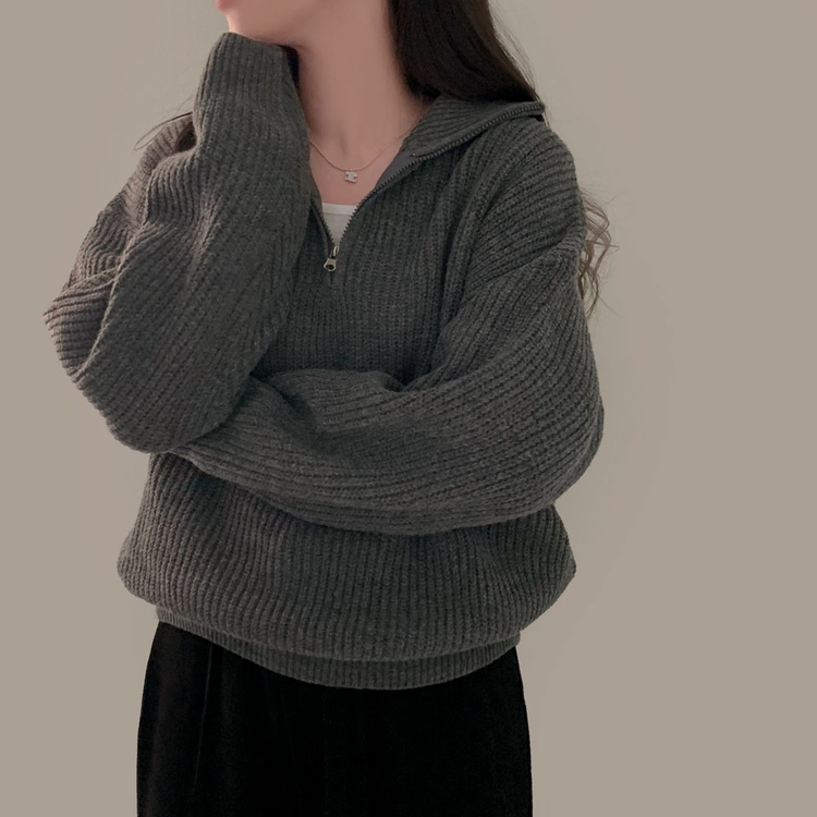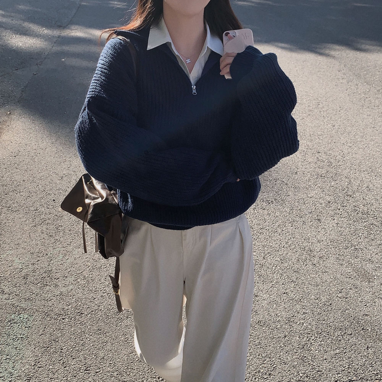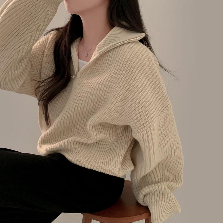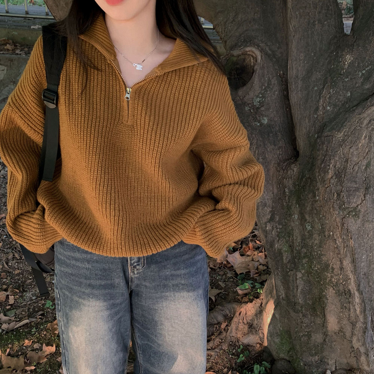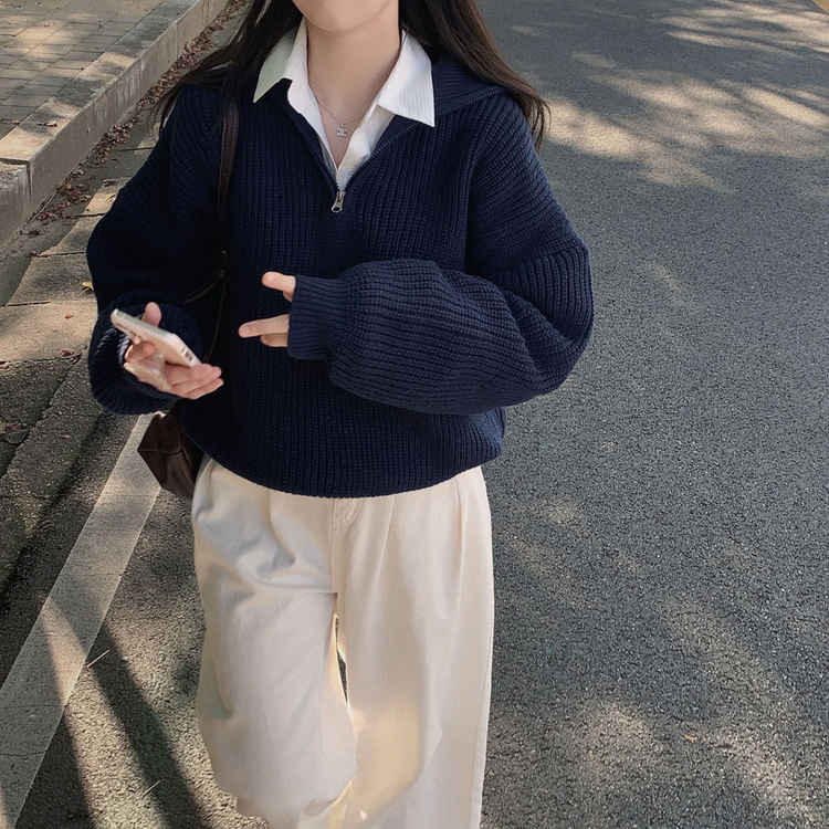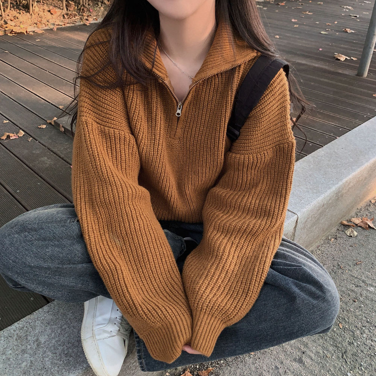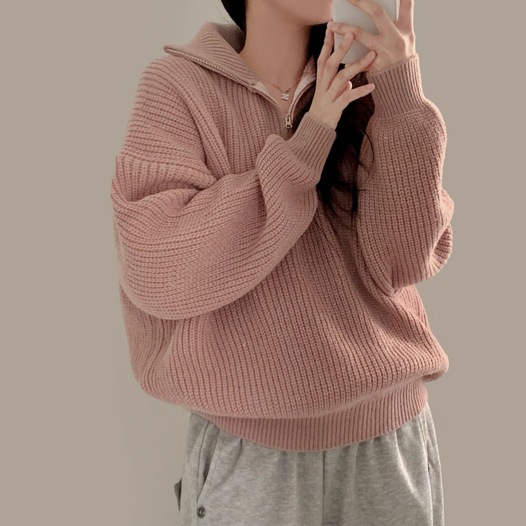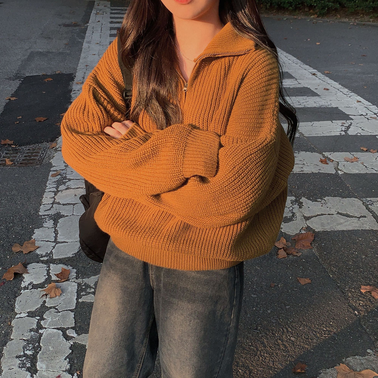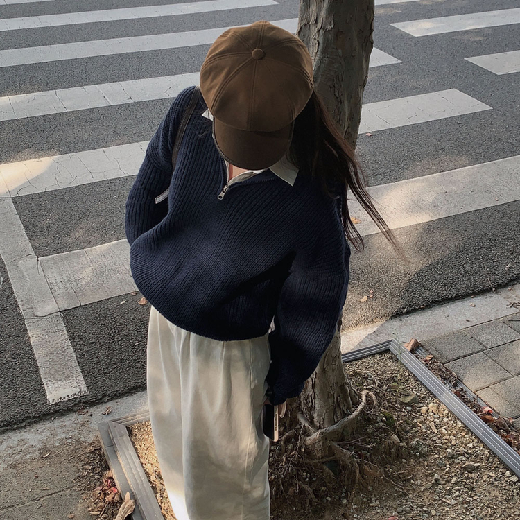 SNT26554 어라운드 하찌반집업 루즈핏 카라 니트 5color