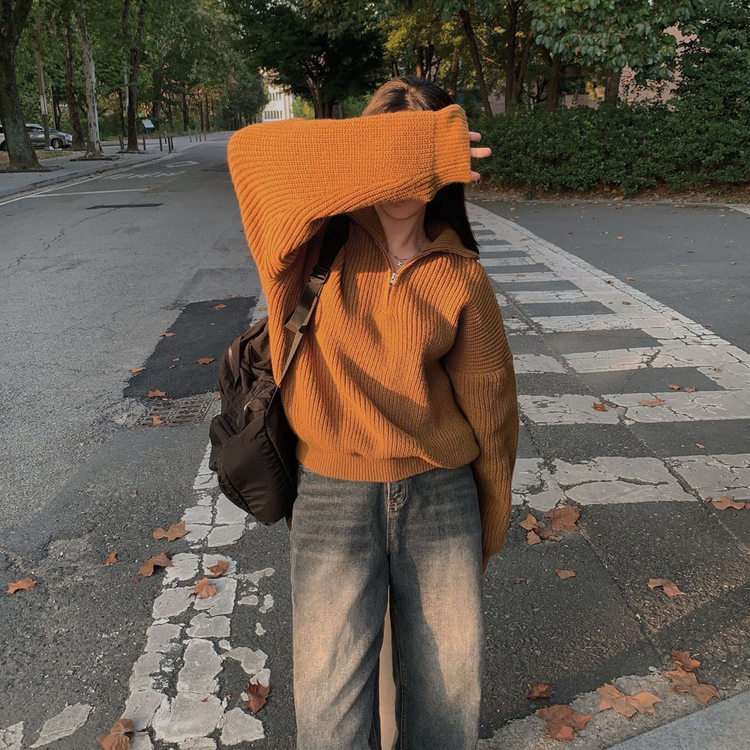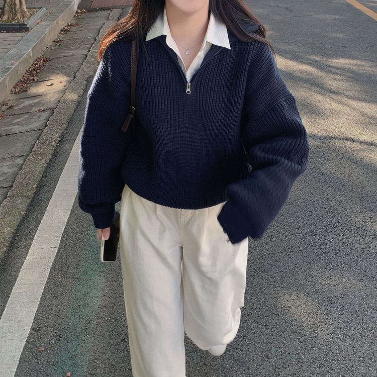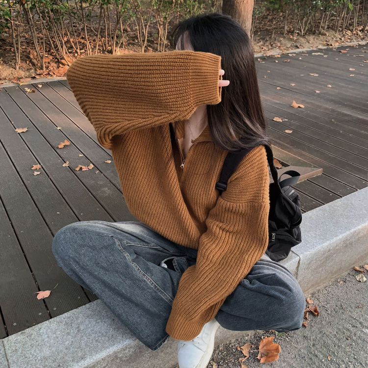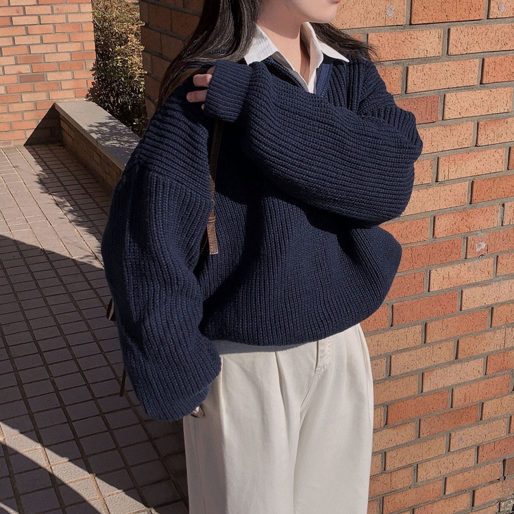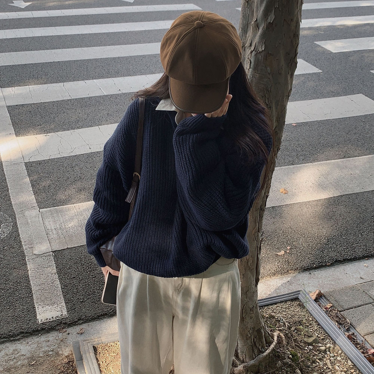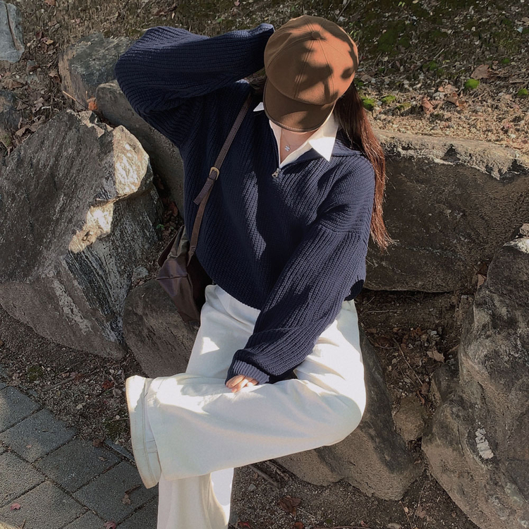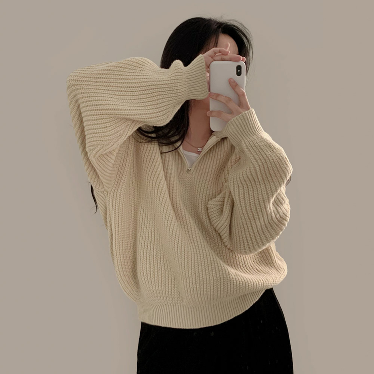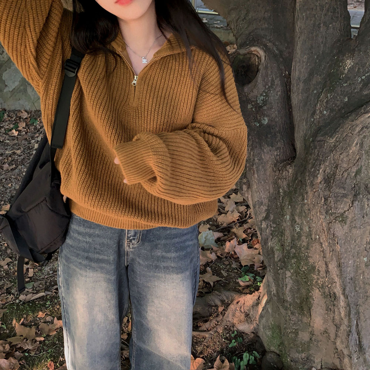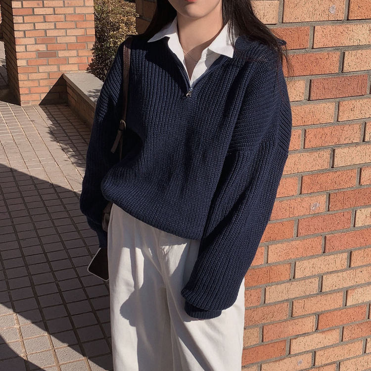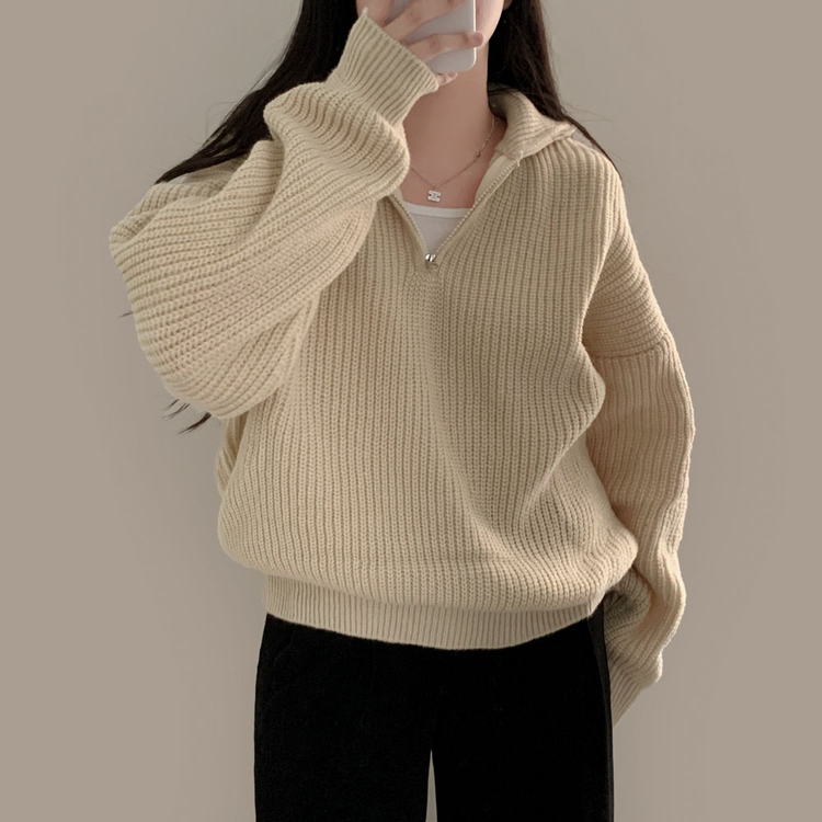 SNT26554 어라운드 하찌반집업 루즈핏 카라 니트 5color