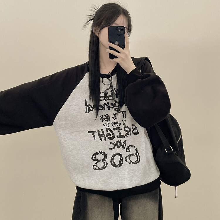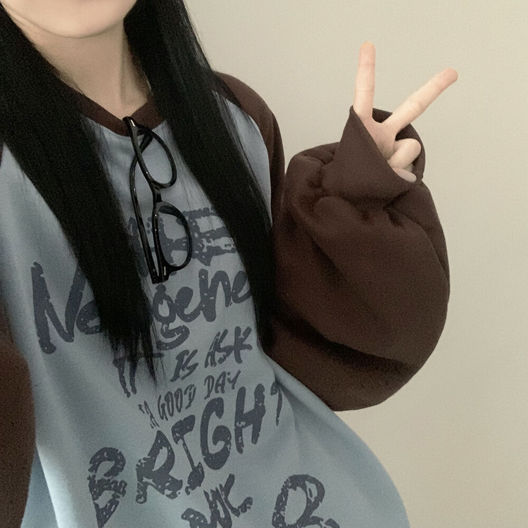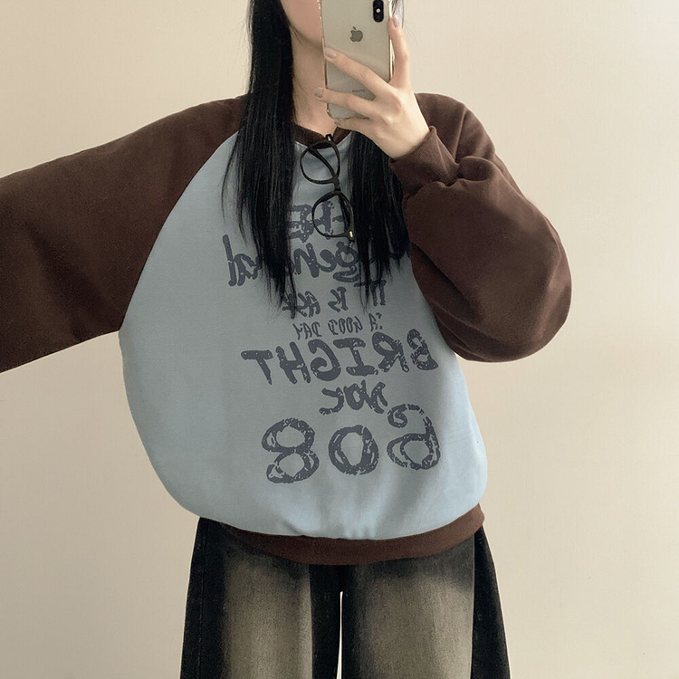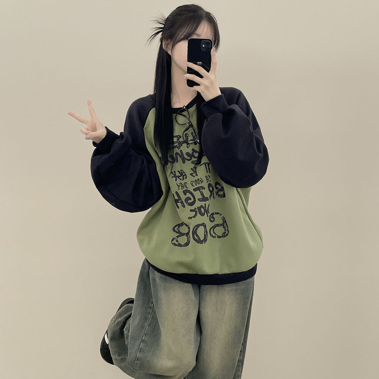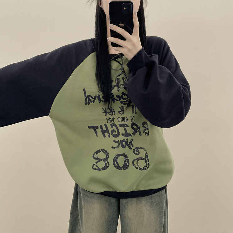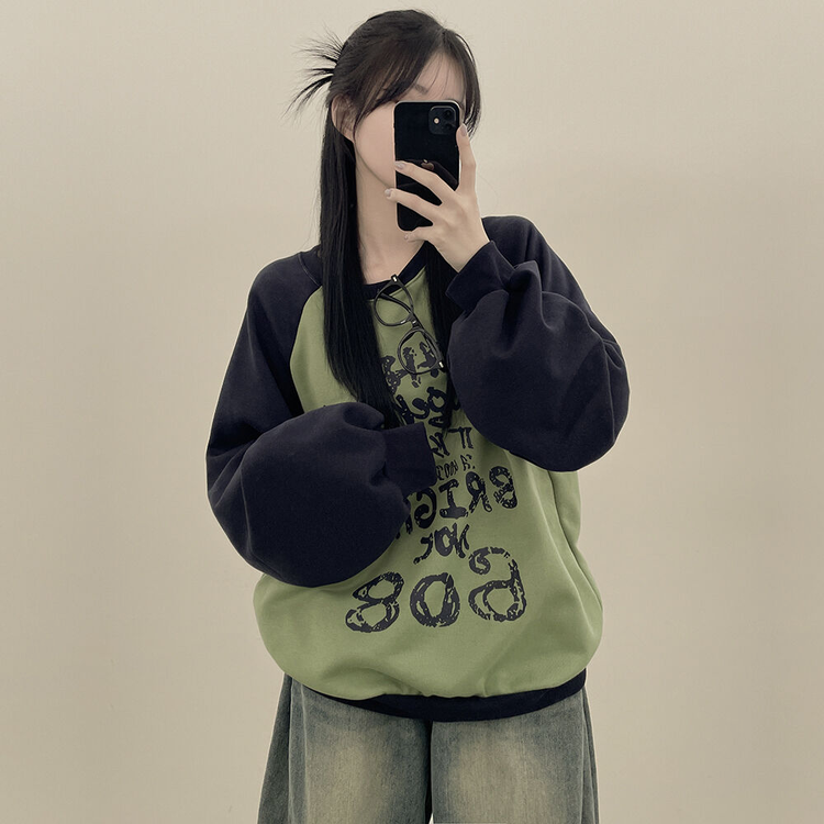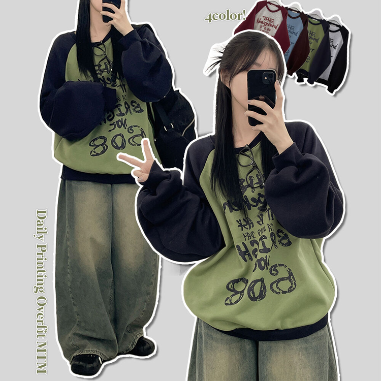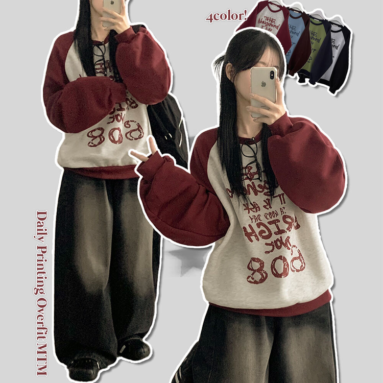 STS59656 아트 빈티지 나그랑 배색 아방핏 맨투맨 빅사이즈