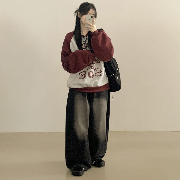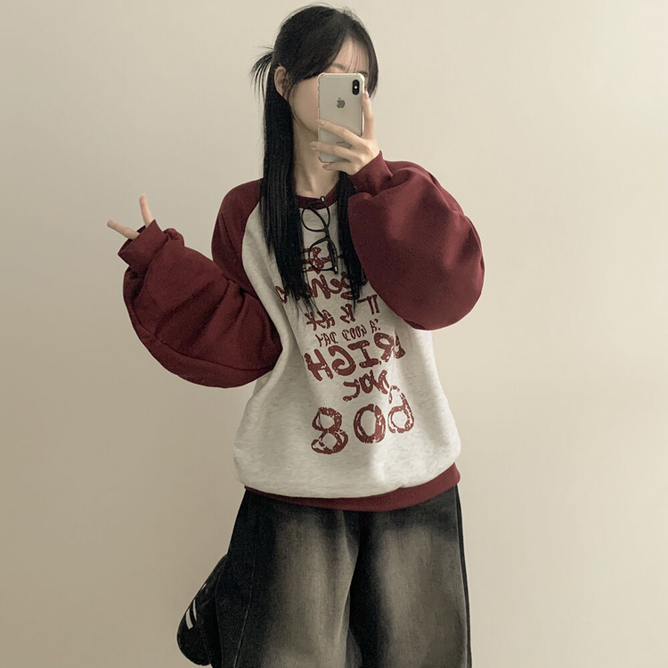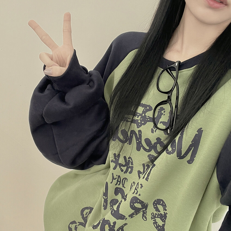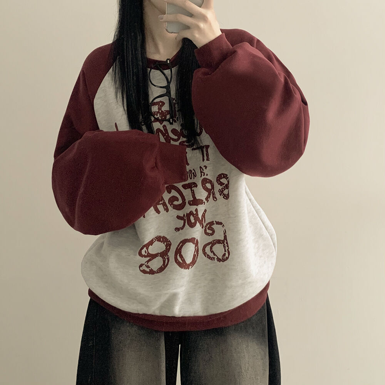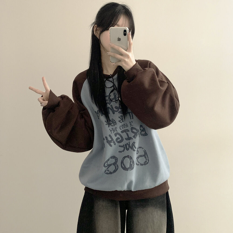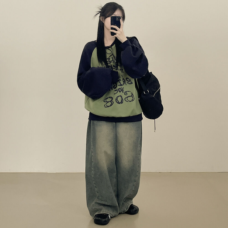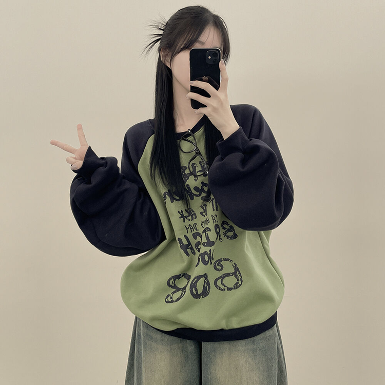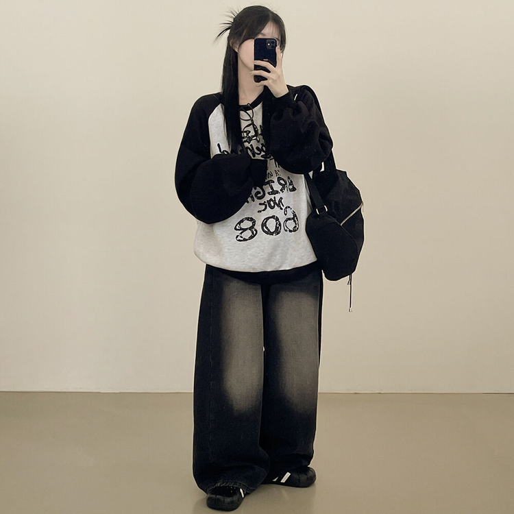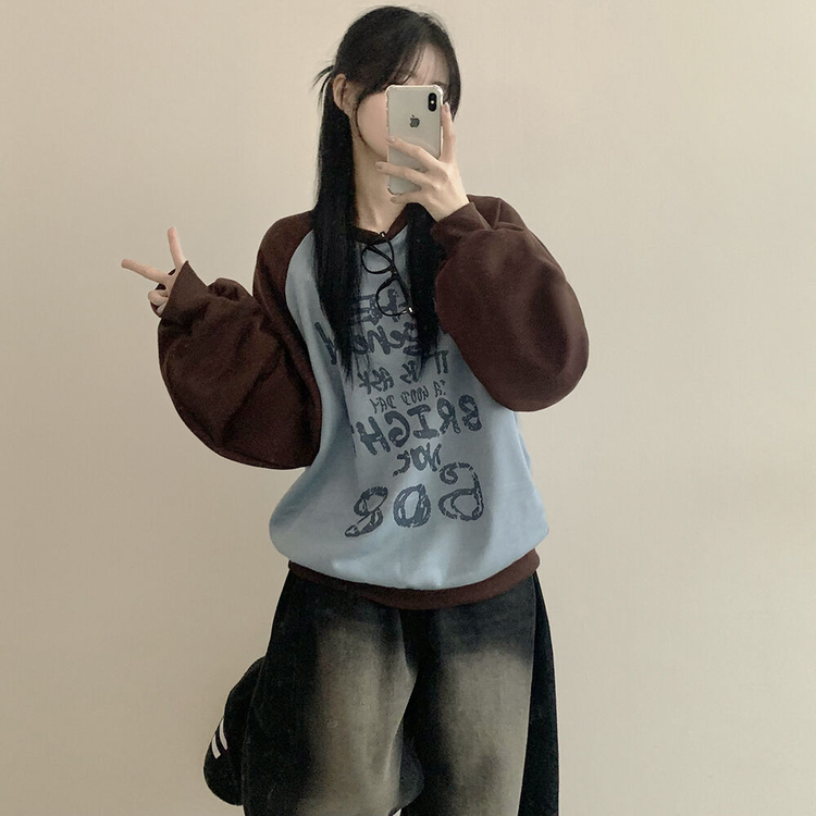 STS59656 아트 빈티지 나그랑 배색 아방핏 맨투맨 빅사이즈